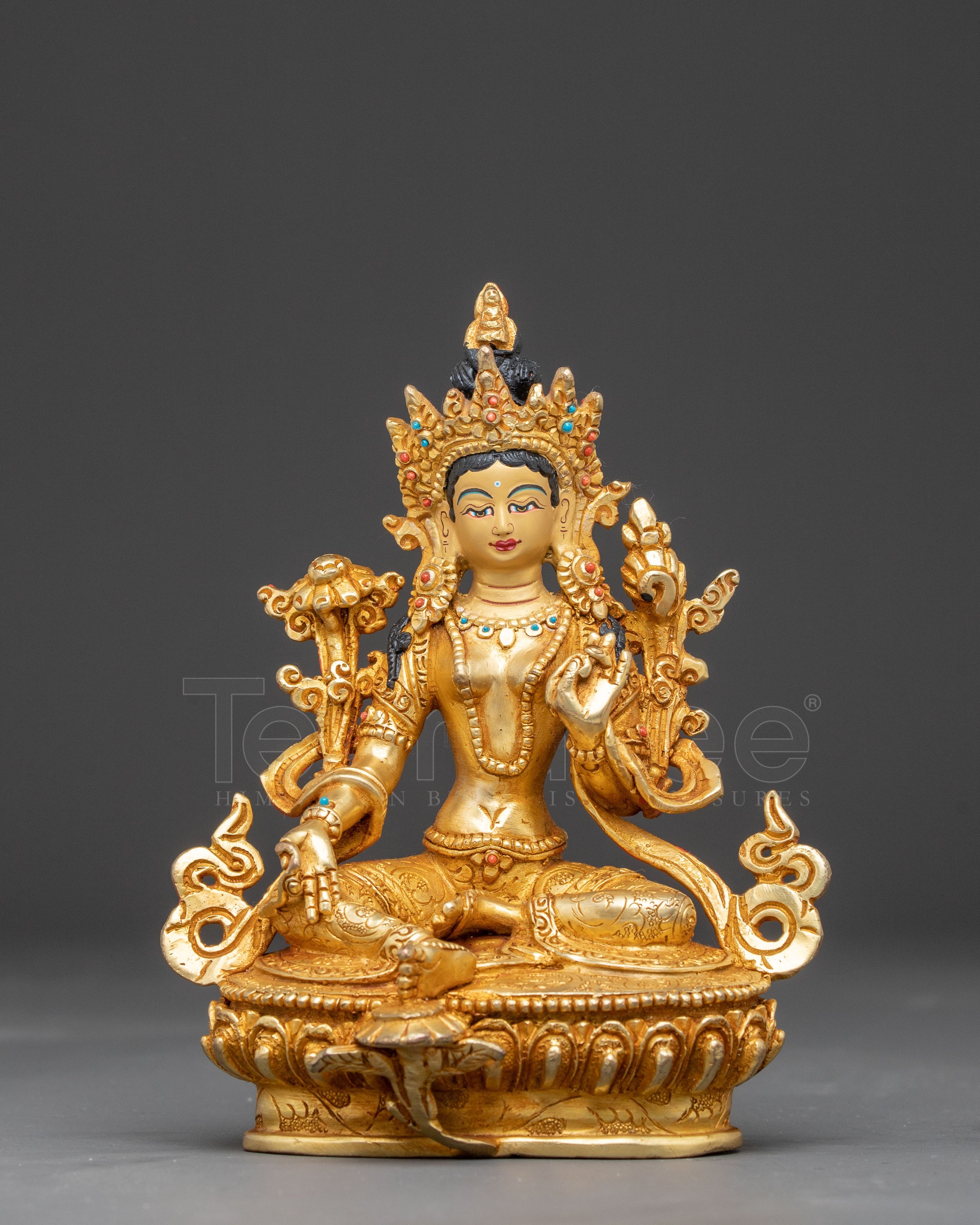 Handmade Serene Copper Sculpture of Mother Green Tara