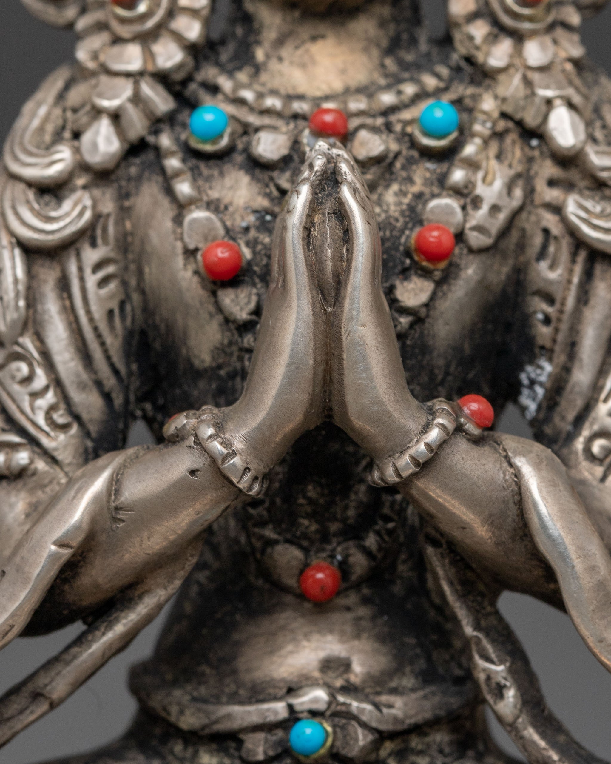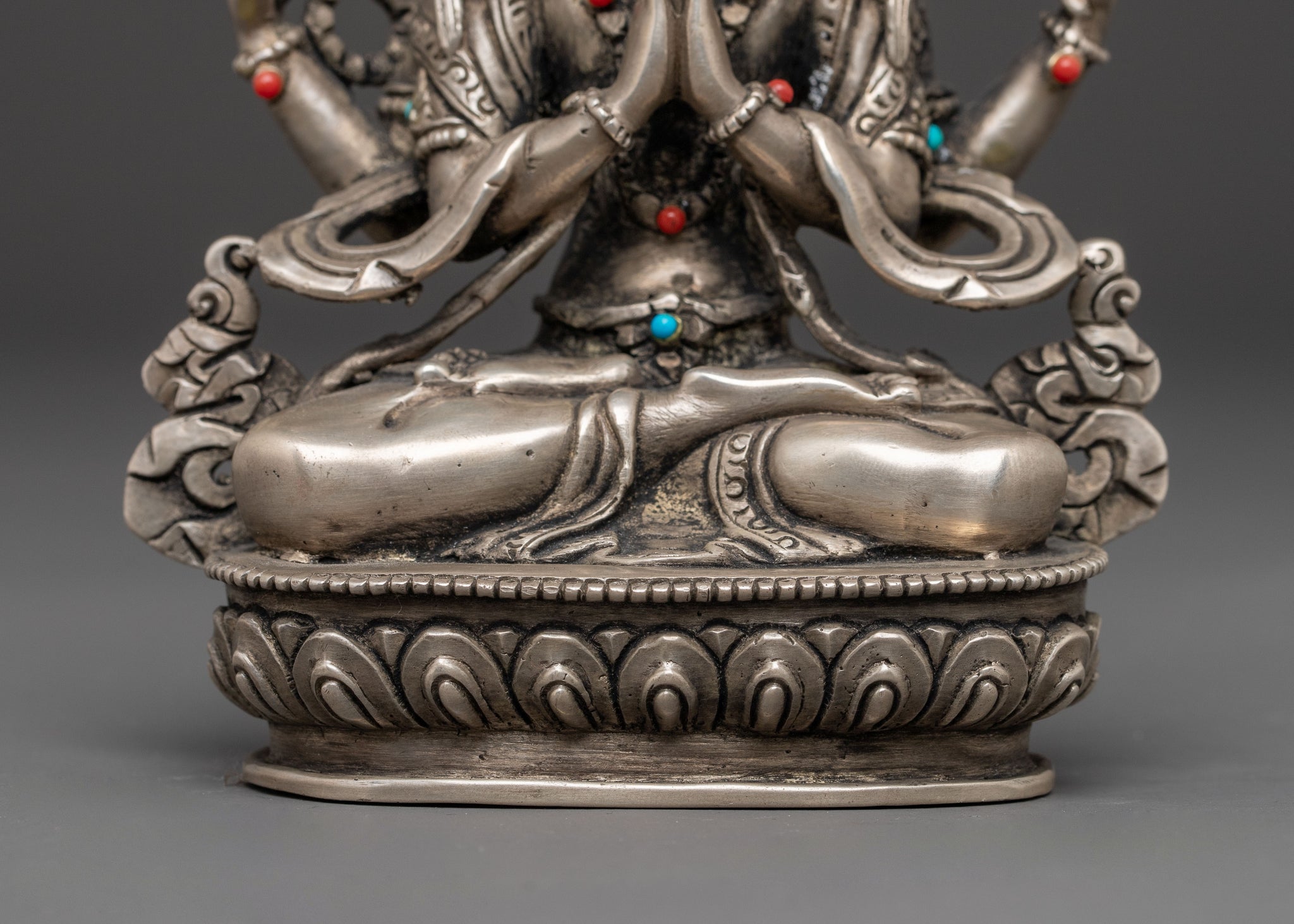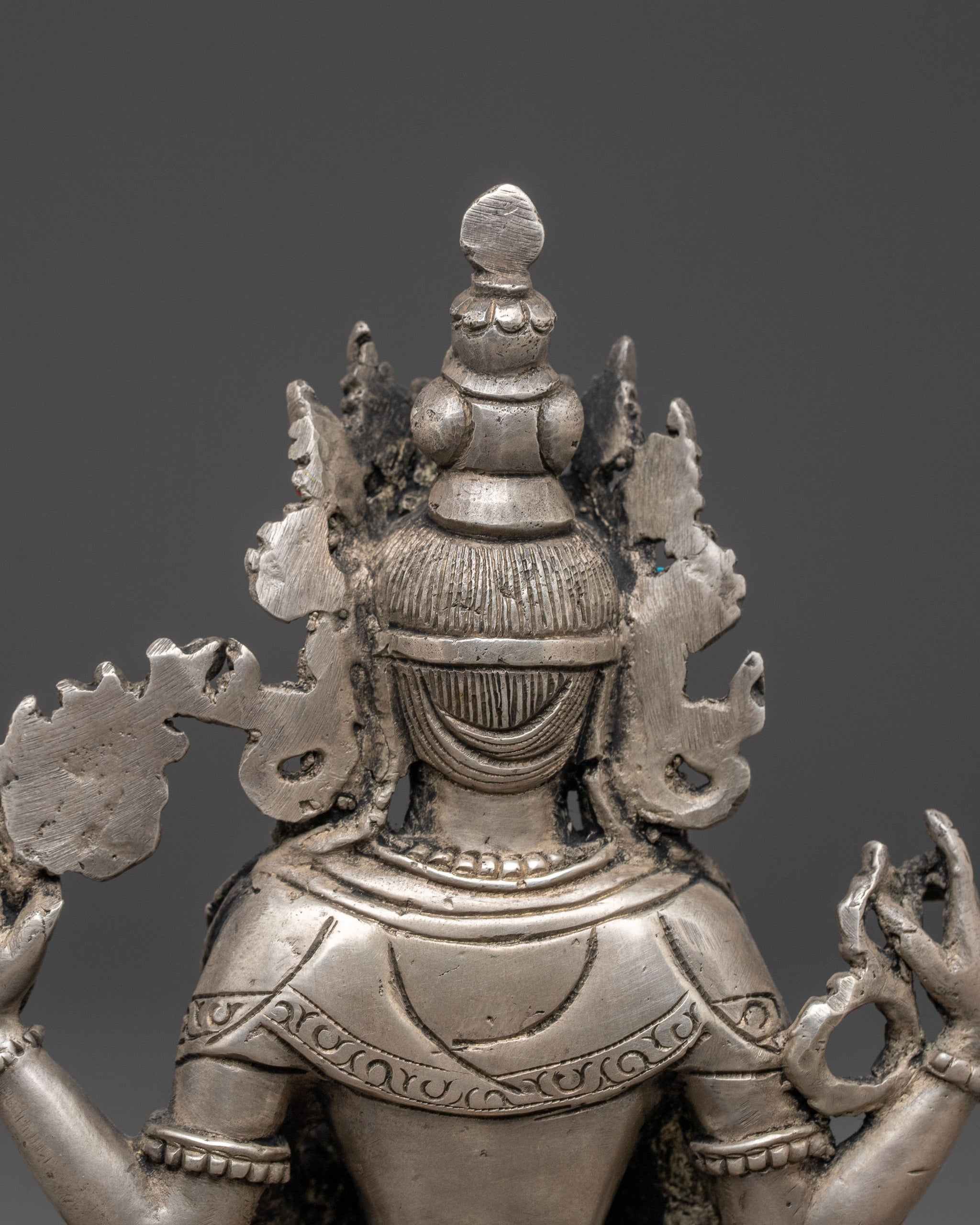 Himalayan Silver Statue of Bodhisattva Chenrezig