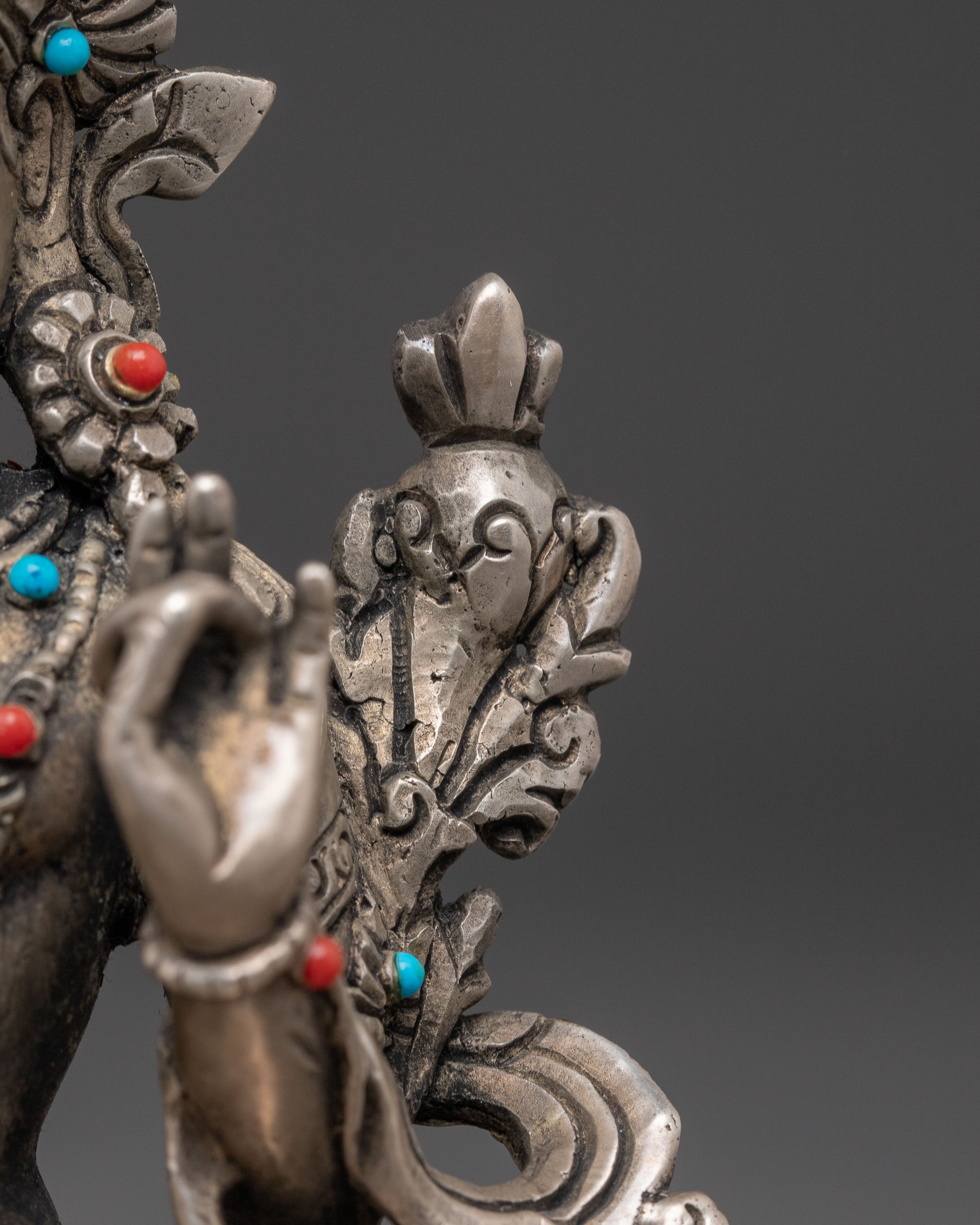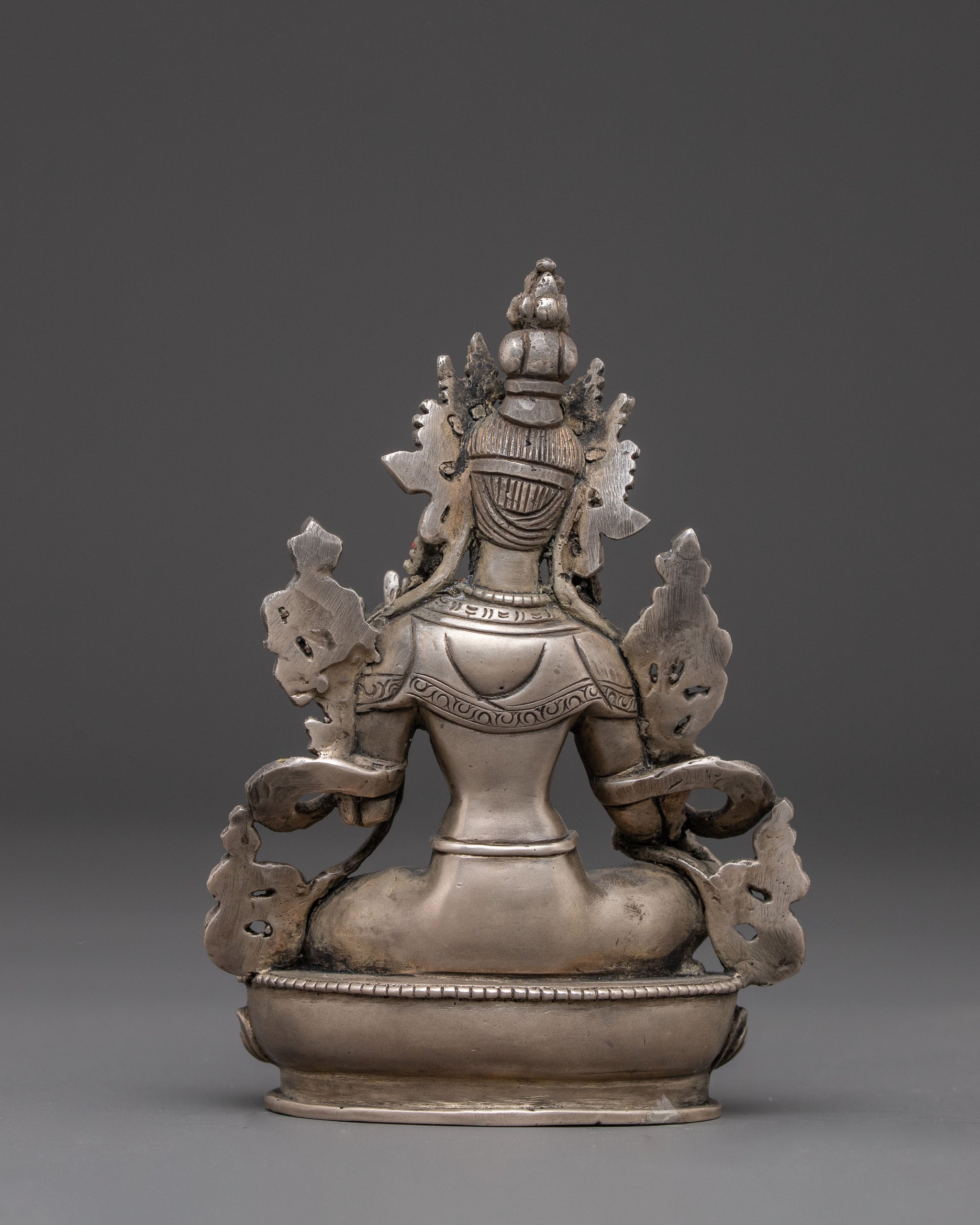Himalayan Handmade Silver Statue of Green Tara | Mother of Liberation