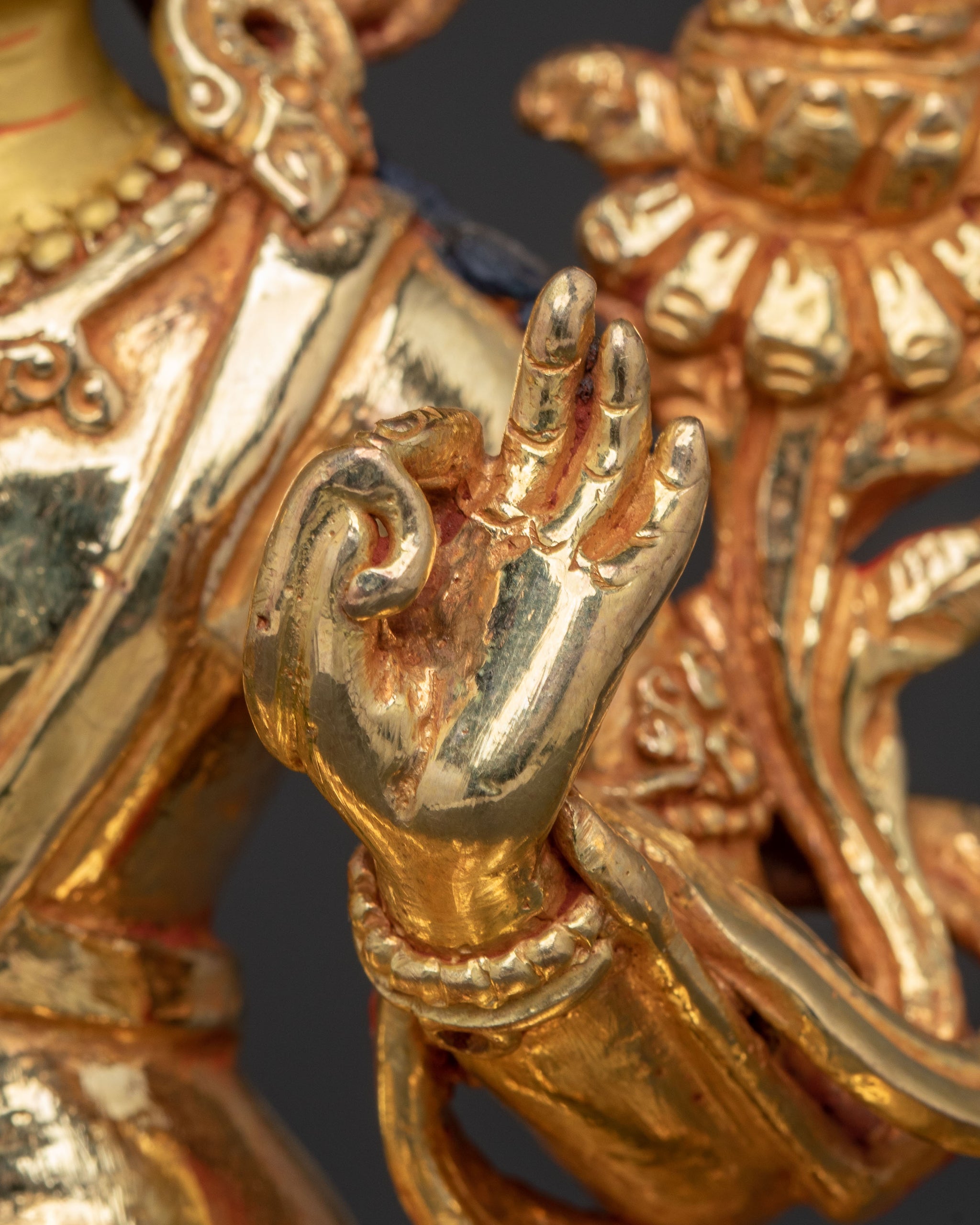 Handmade Simhanada Manjushri Golden Statue - Radiant Wisdom Art