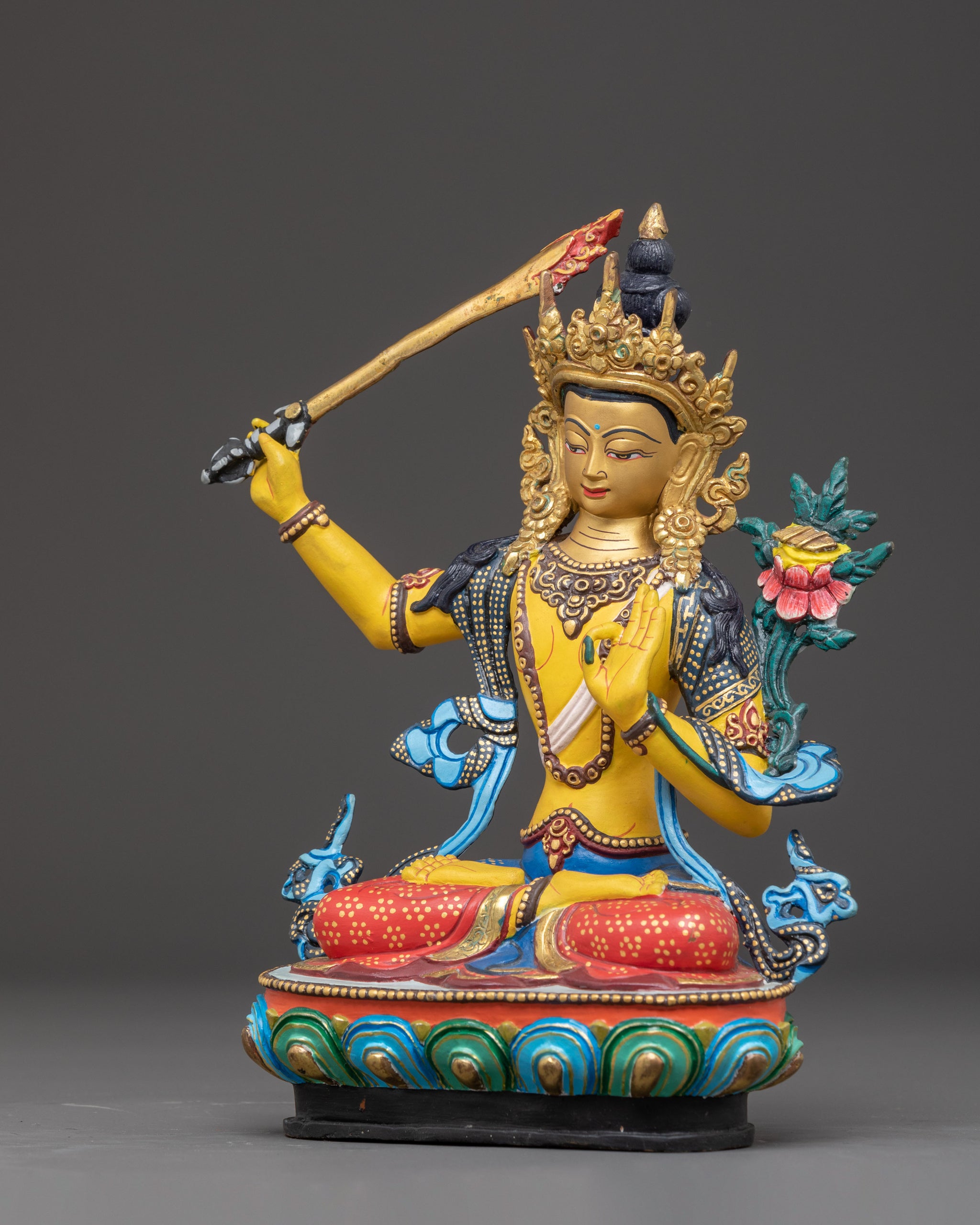 Handmade Statue of Manjushri, The Wisdom Bodhisattva | Tibetan Buddhist Icon