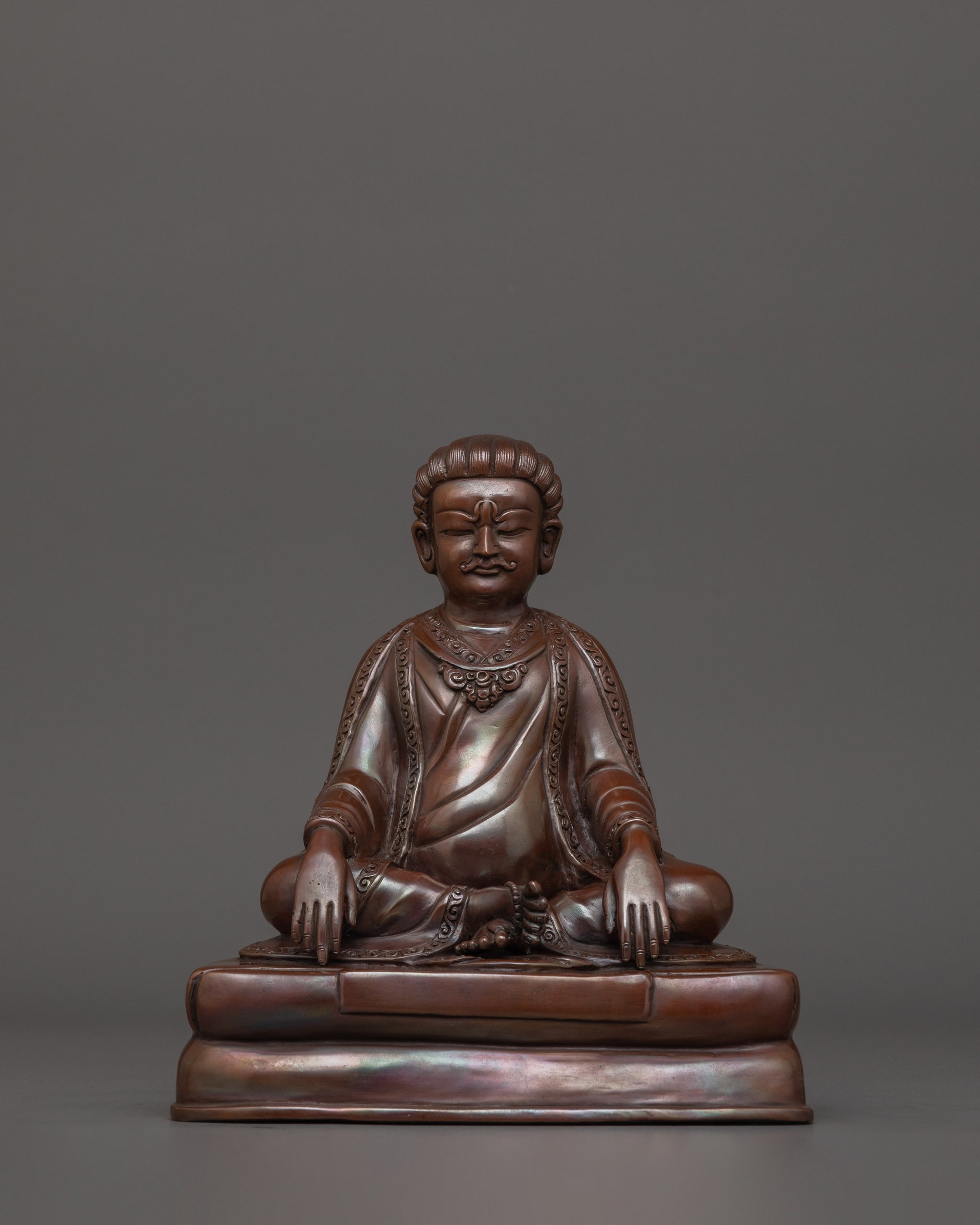 This handmade statue of Marpha is made up of an oxidized copper body. Standing at 7.9”/20cm (Height) and 7.3”/18.5cm (Base). Designed by talented Nepalese artisans, this detailed sculpture is ideal for altars, meditation areas, or as a meaningful decor item for individuals seeking awareness in their daily life.
