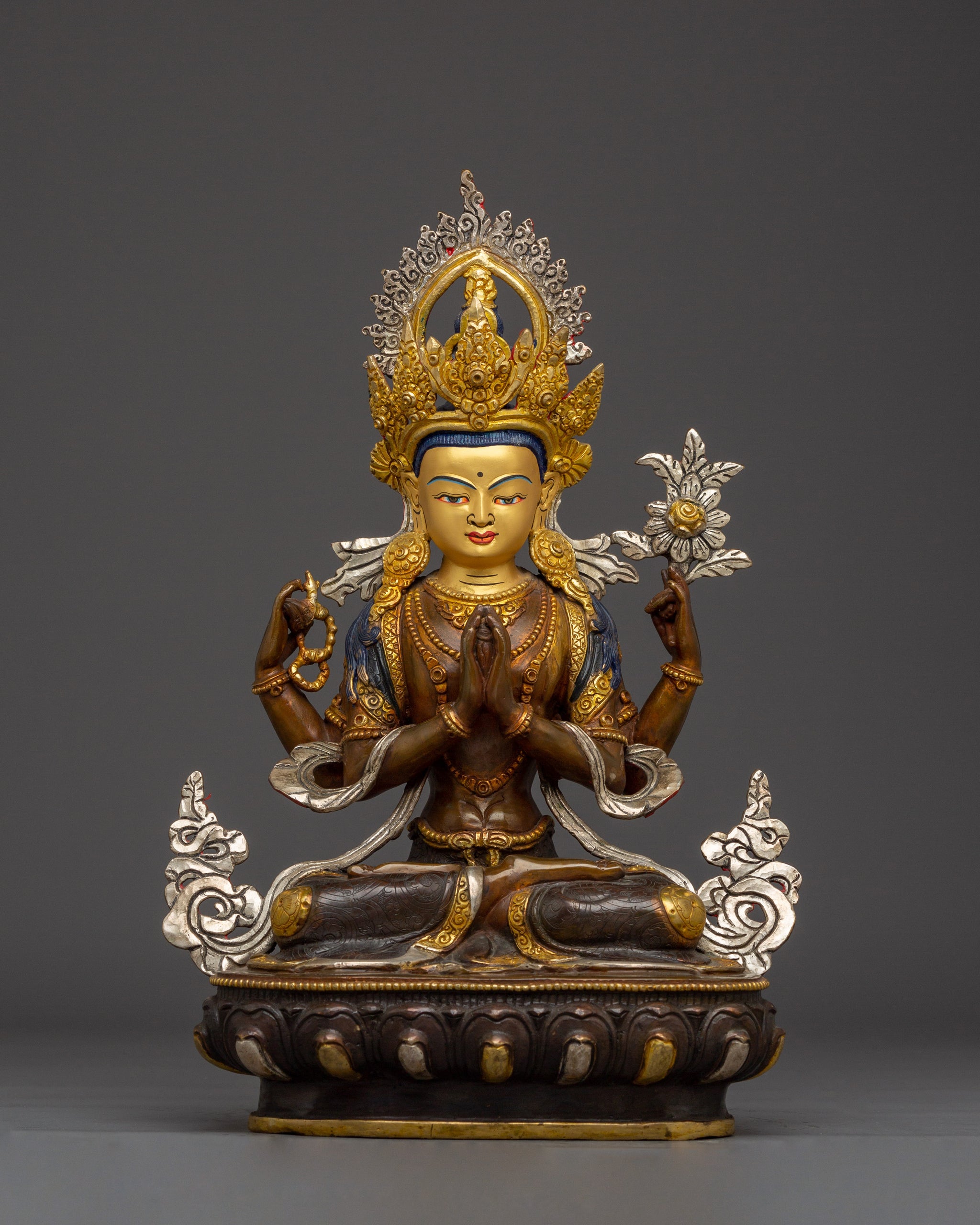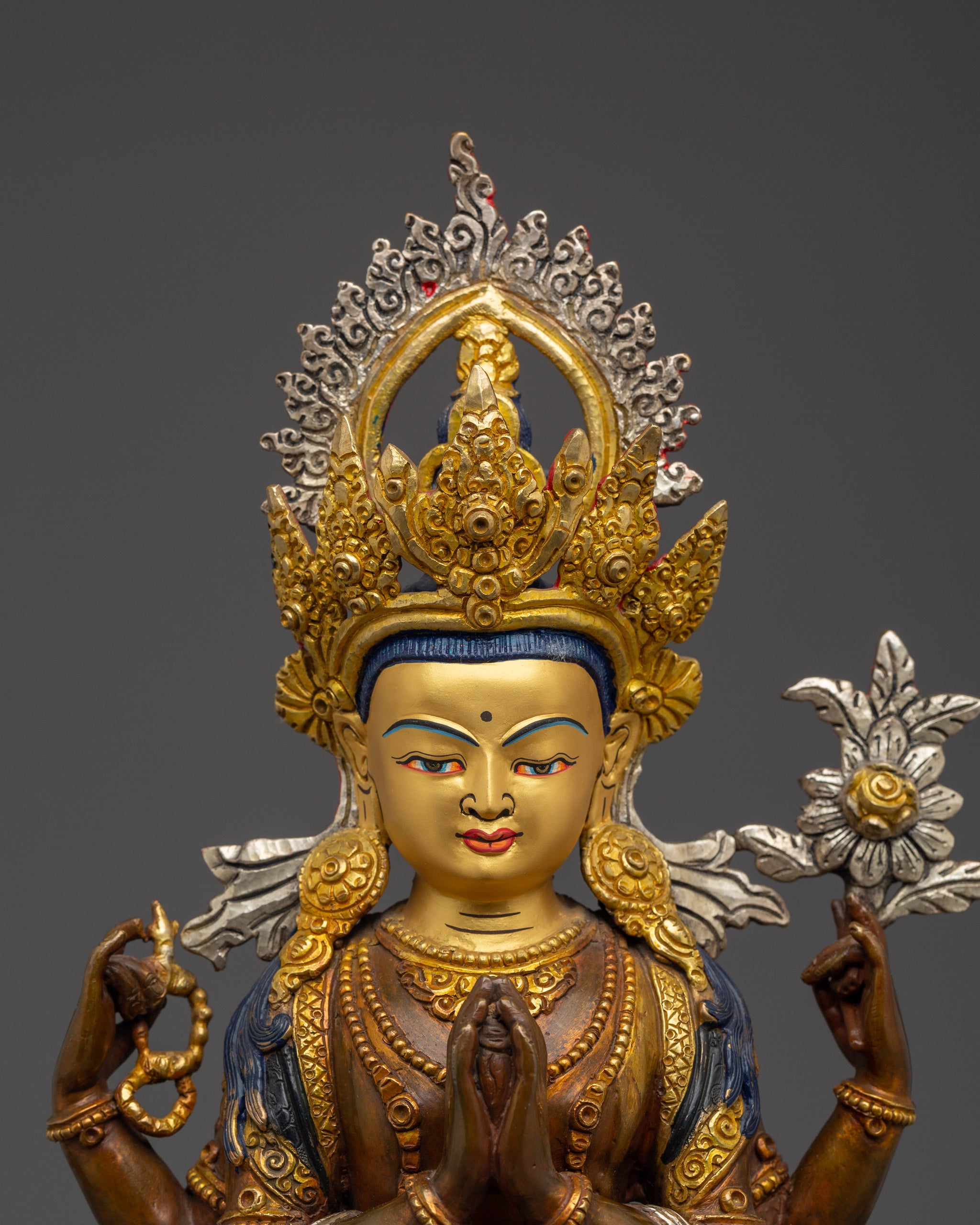 Handmade Tibetan Artwork of Chenrezig | Compassionate Bodhisattva