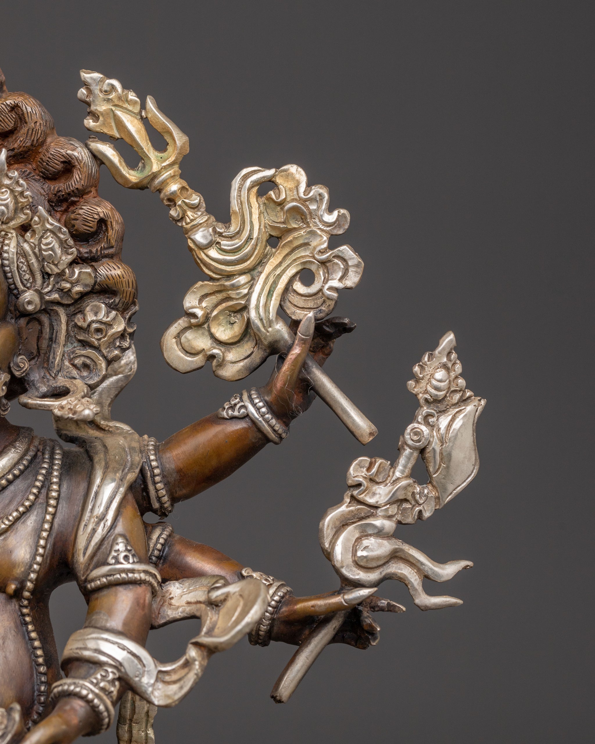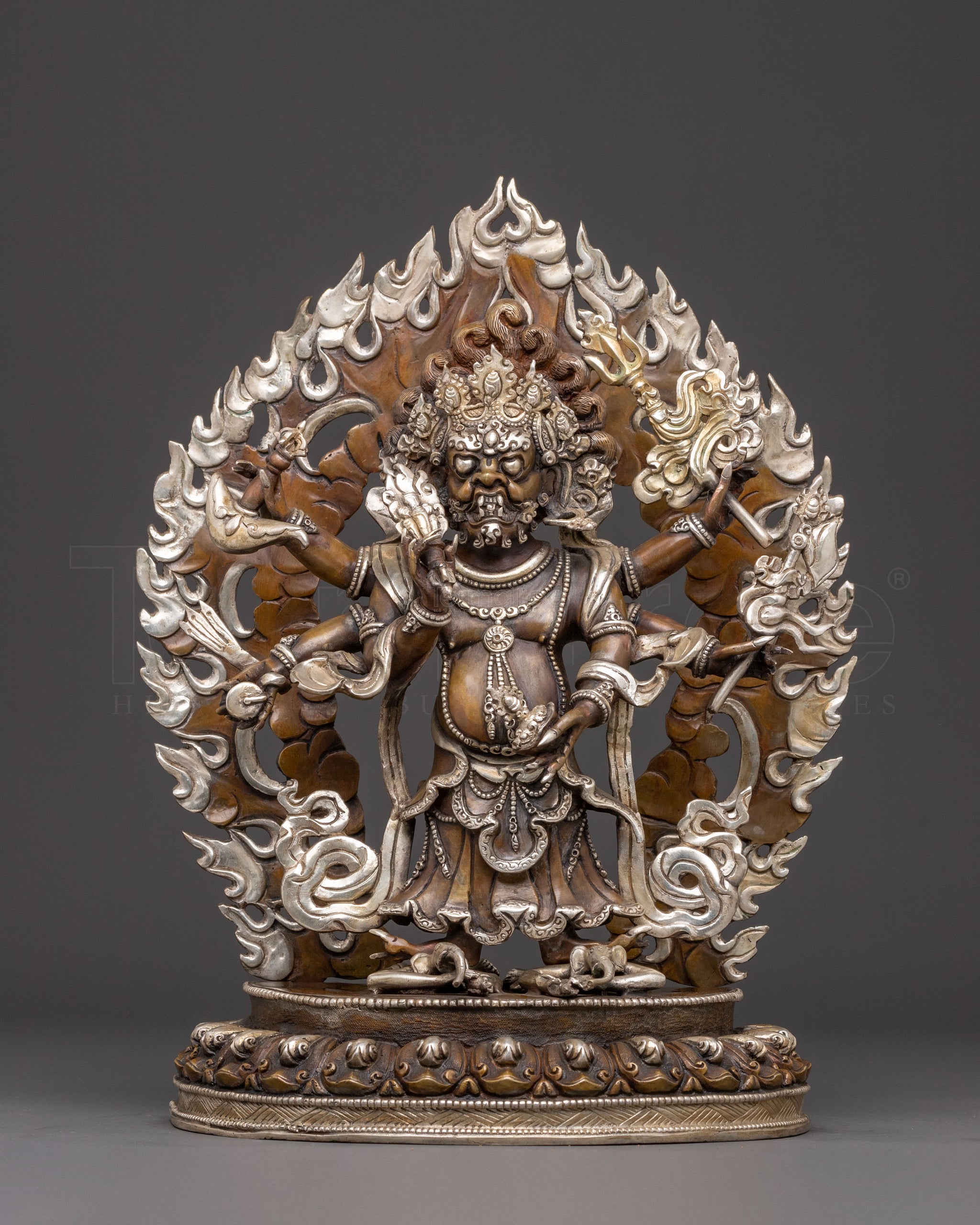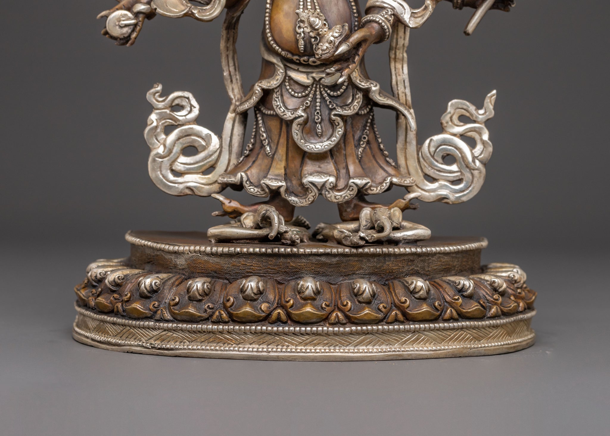 Handmade White Mahakala Oxidized Copper Statue – Guardian of Abundance