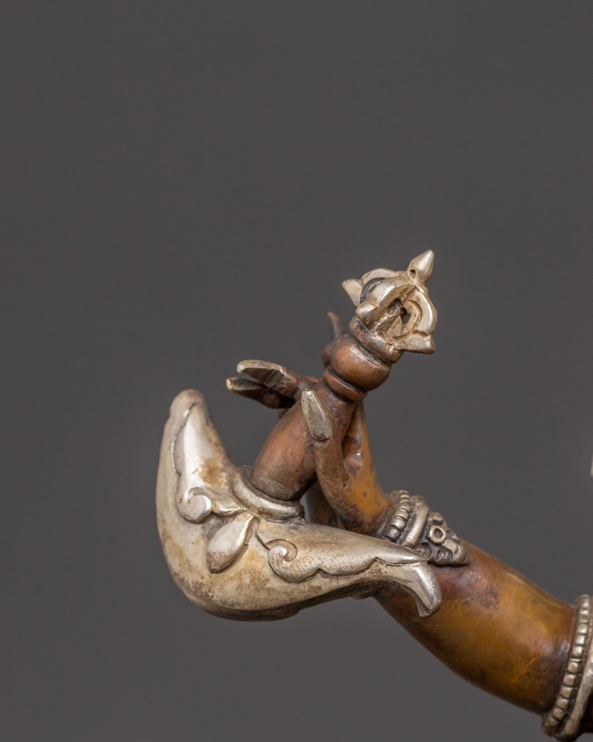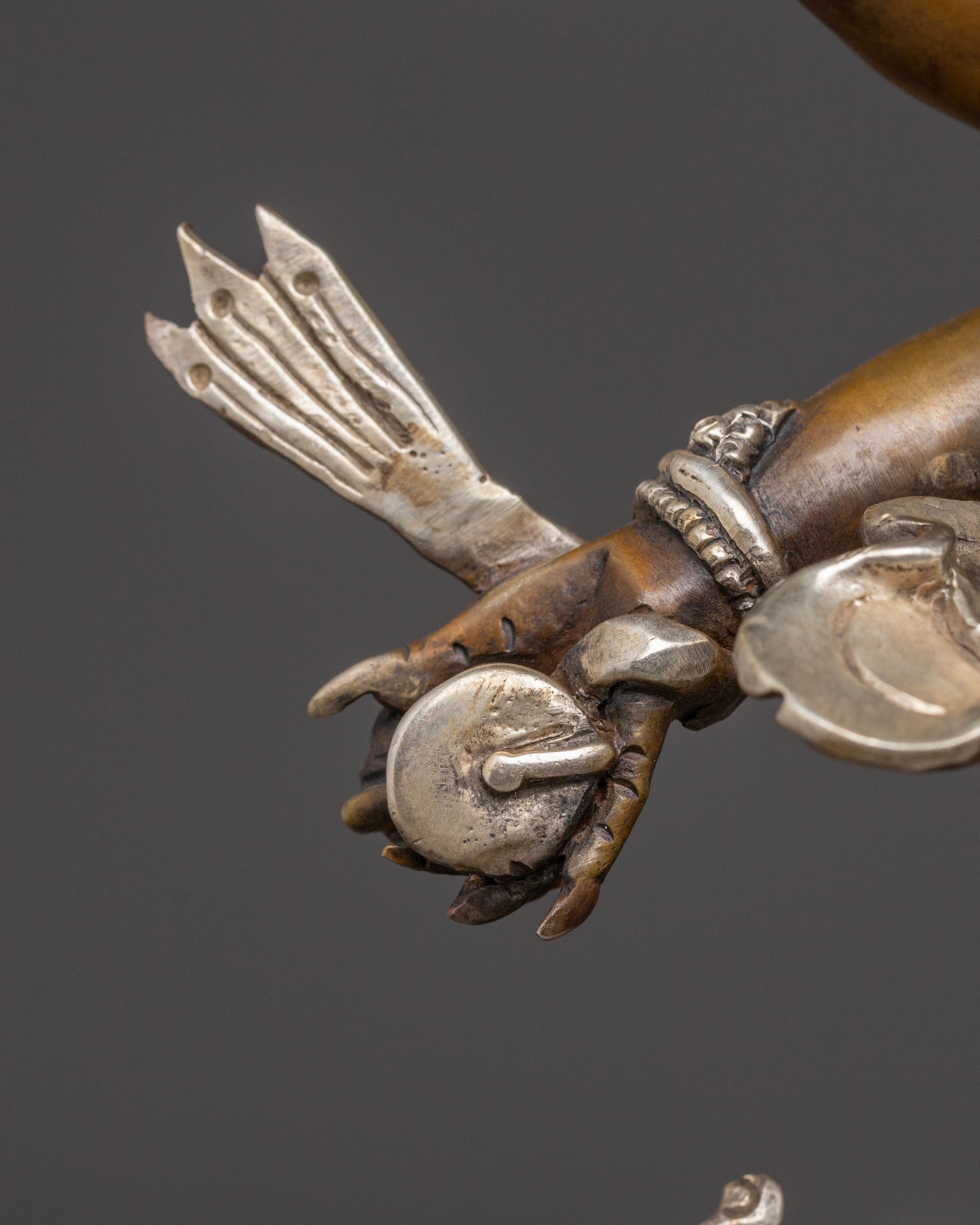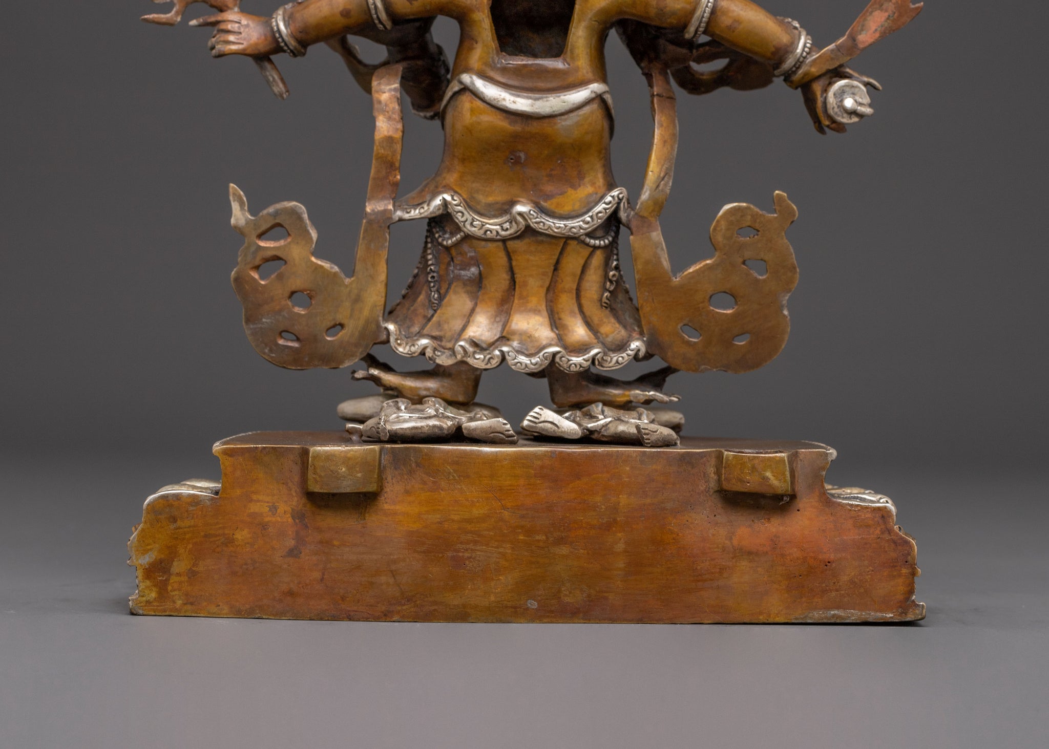 Handmade White Mahakala Oxidized Copper Statue – Guardian of Abundance