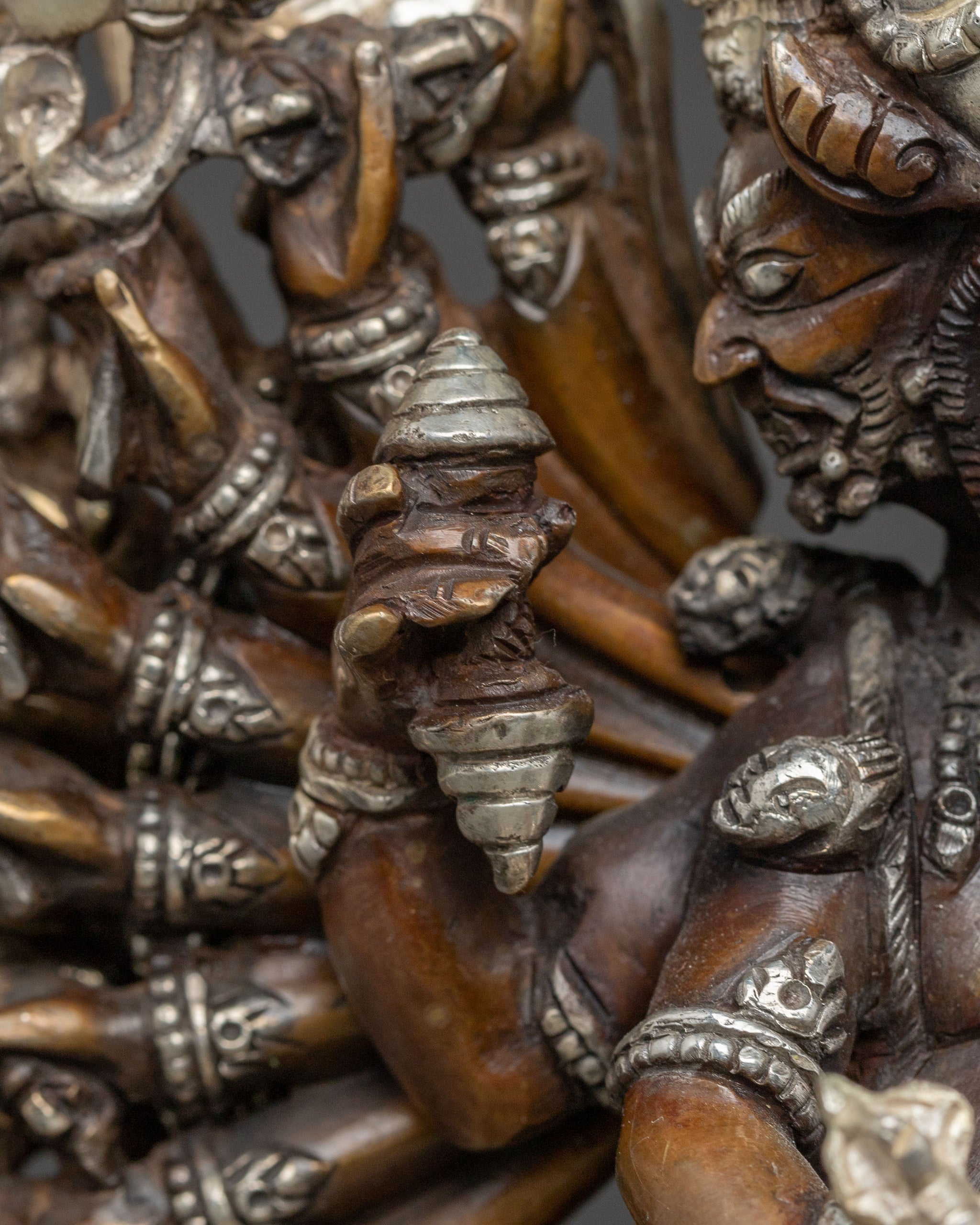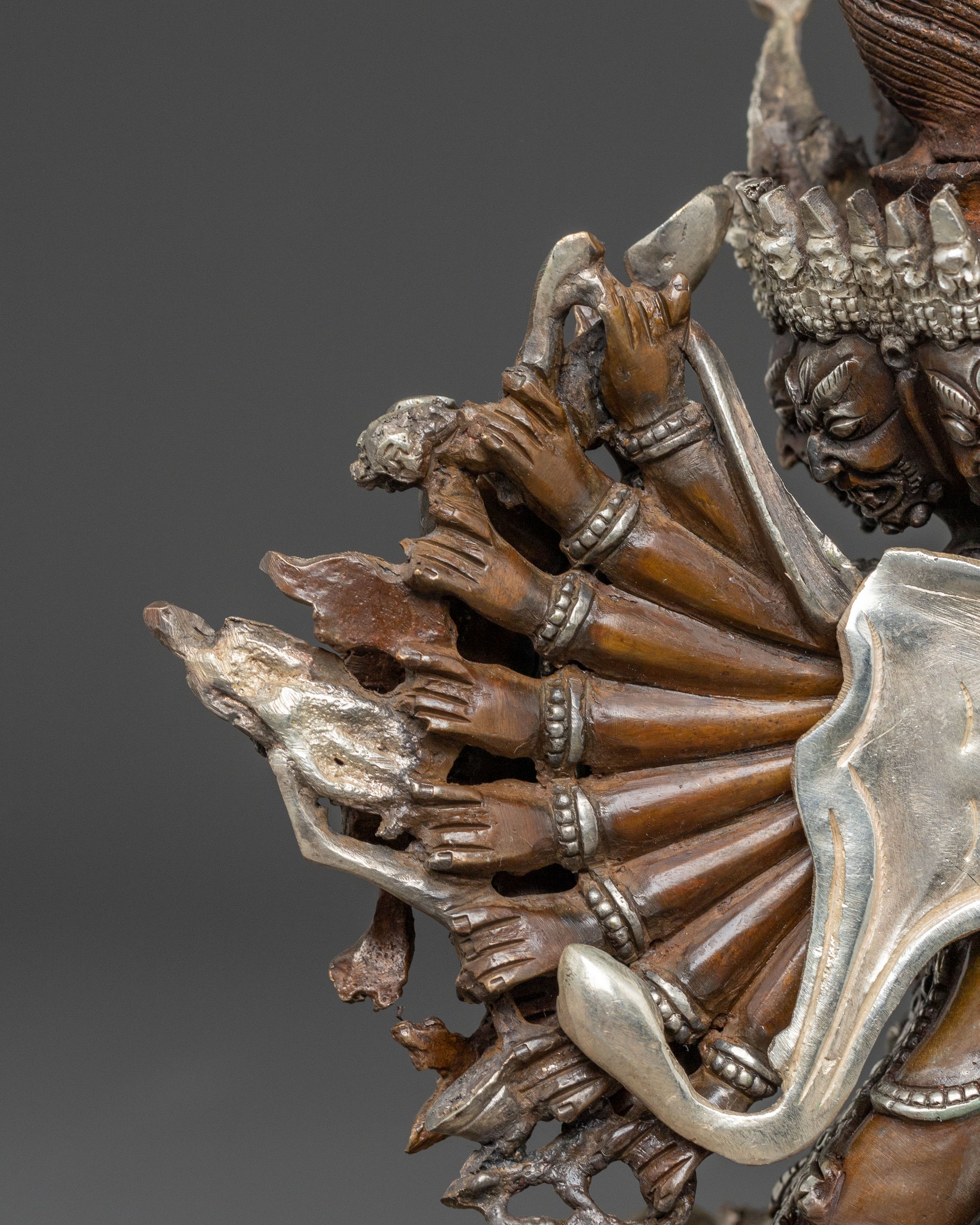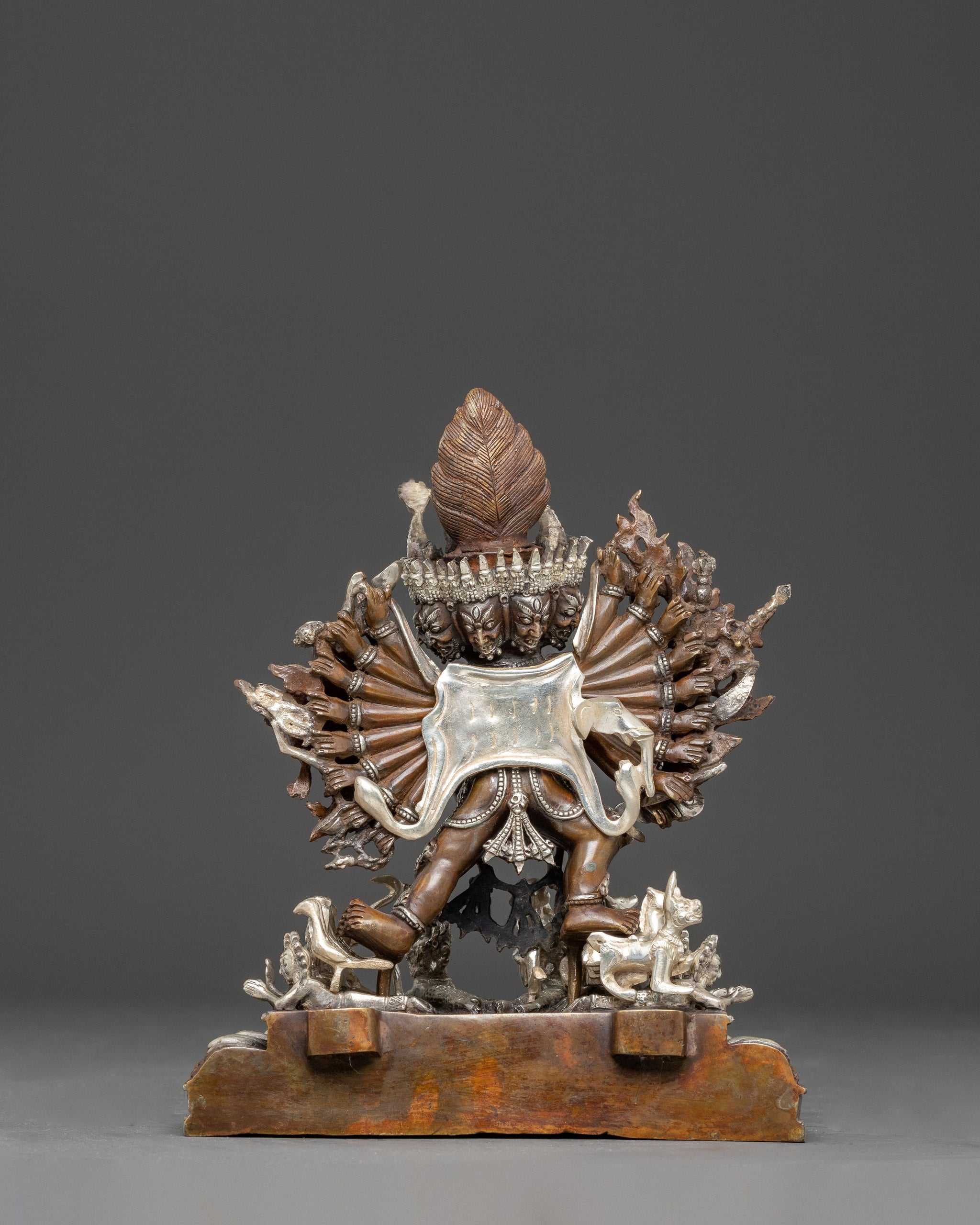 Handmade Yamantaka Golden Statue | Oxidized Copper with Silver Plated