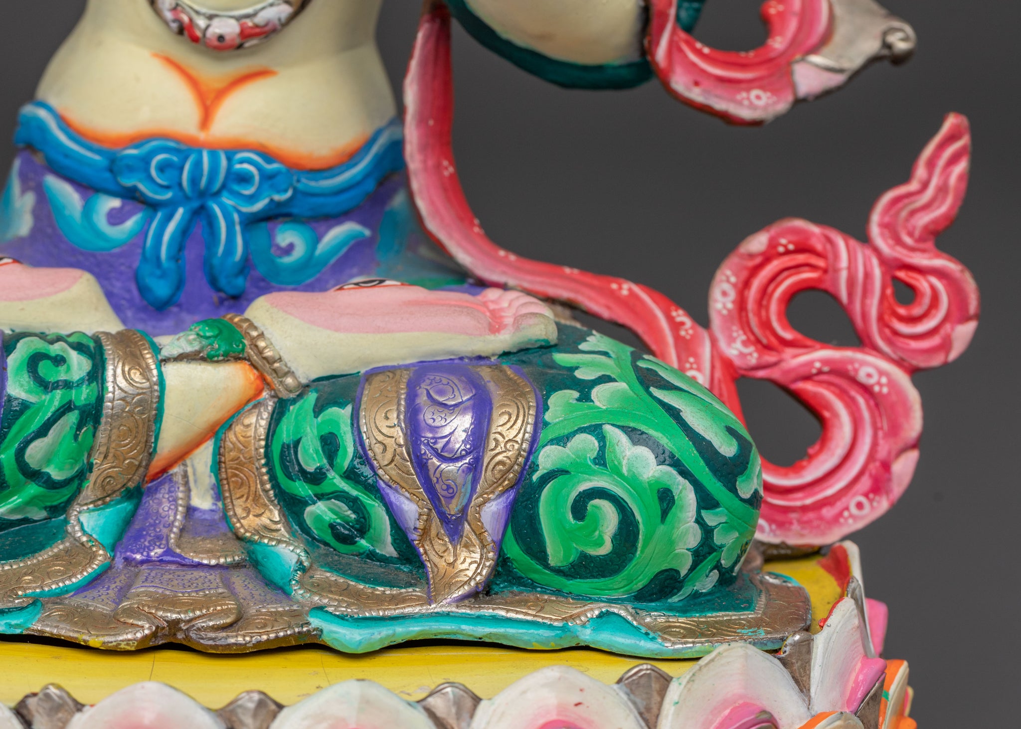 White Tara, or Sita Tara, is a revered female Buddha in Tibetan Buddhism, emanating compassion, healing, and longevity. She is often depicted with seven eyes—one in each palm, one in each sole, and a third eye on her forehead—symbolizing her vigilance and boundless ability to perceive the suffering of all beings. Her practice is associated with good health, extended life, and overcoming obstacles, offering solace and protection to those who seek her blessings.