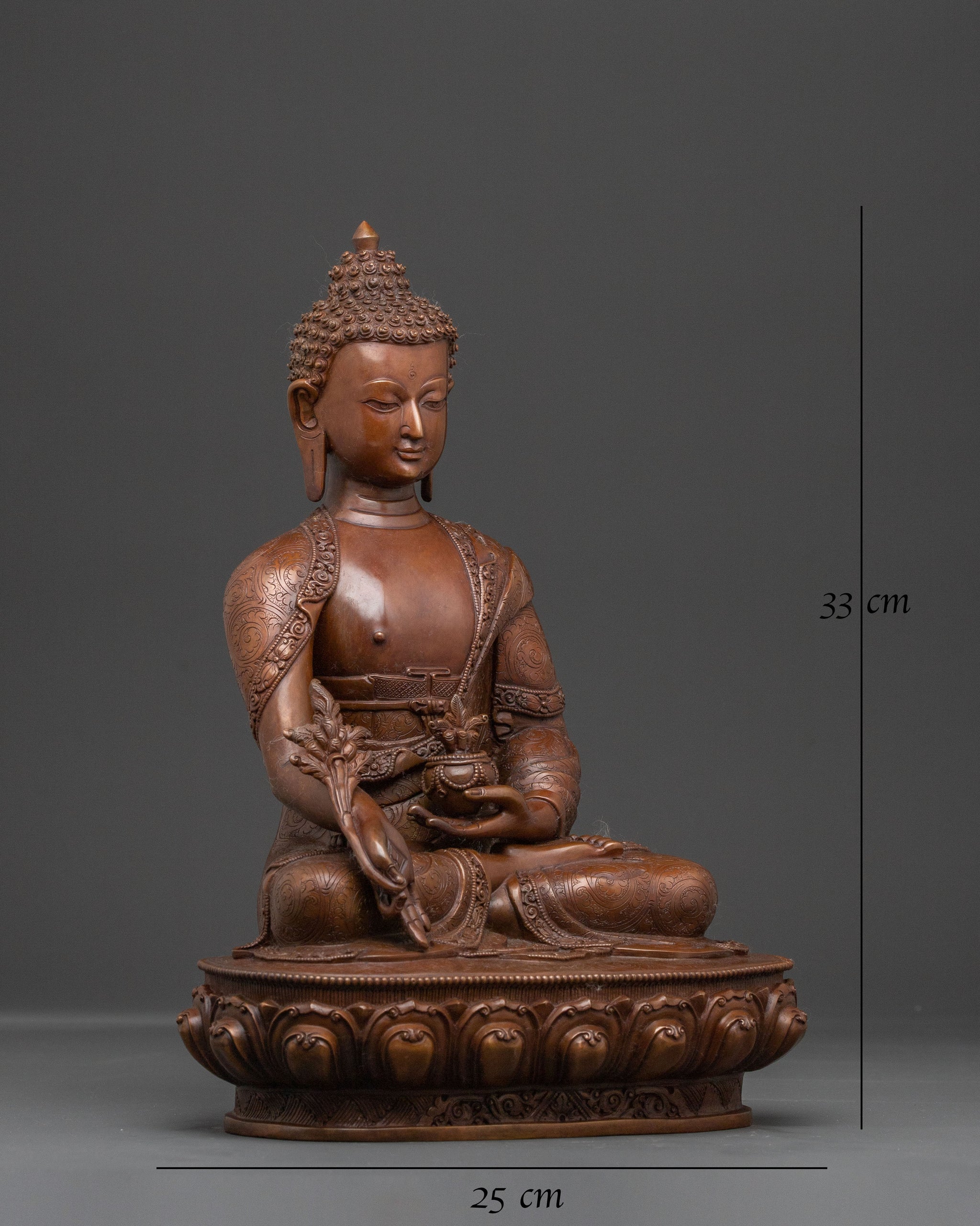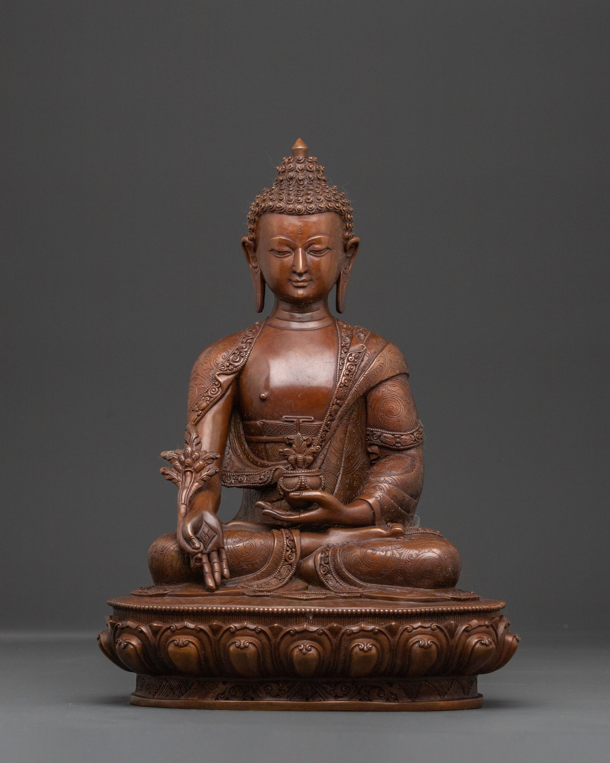 Healing Medicine Buddha Handcrafted Statue in Oxidized Copper