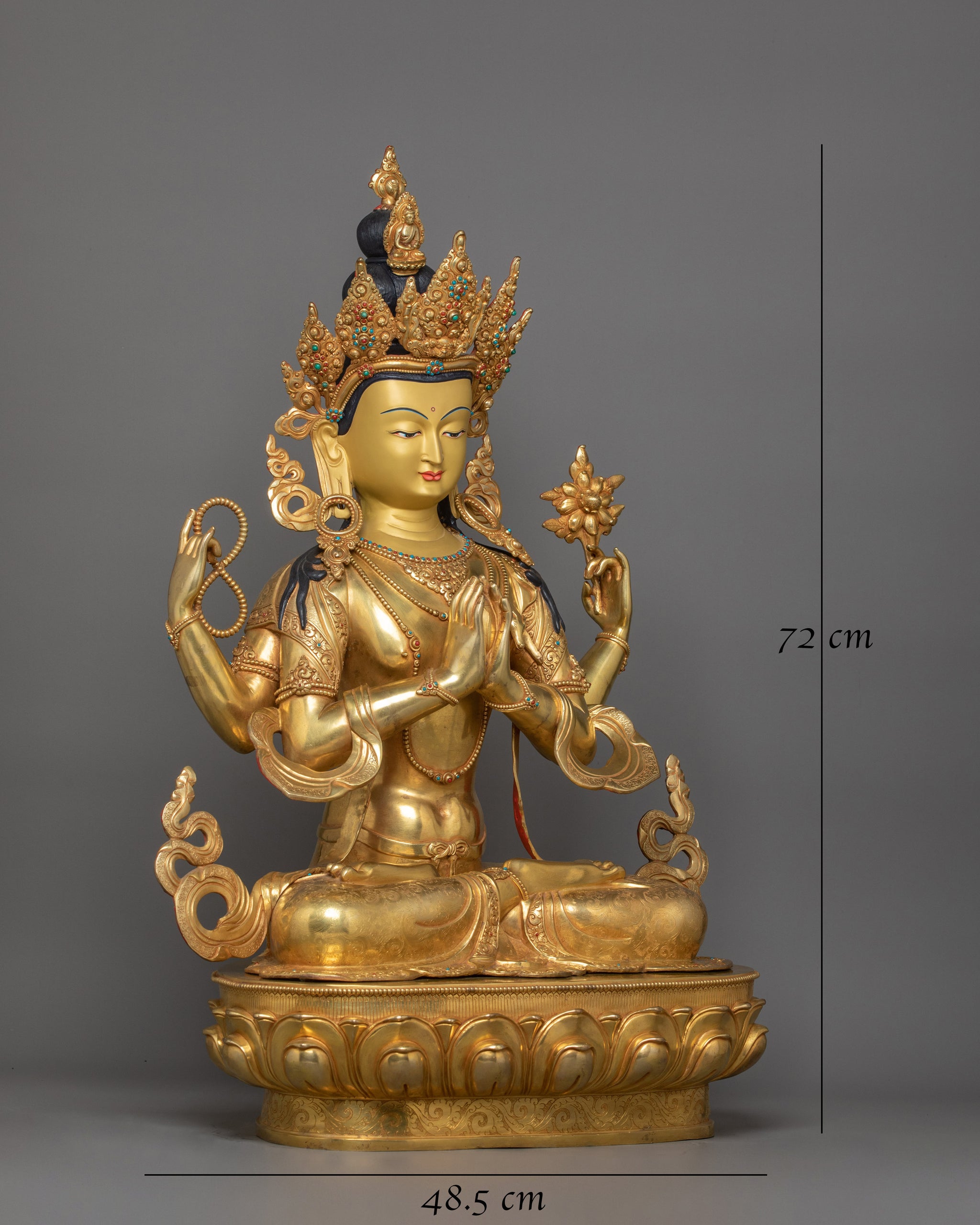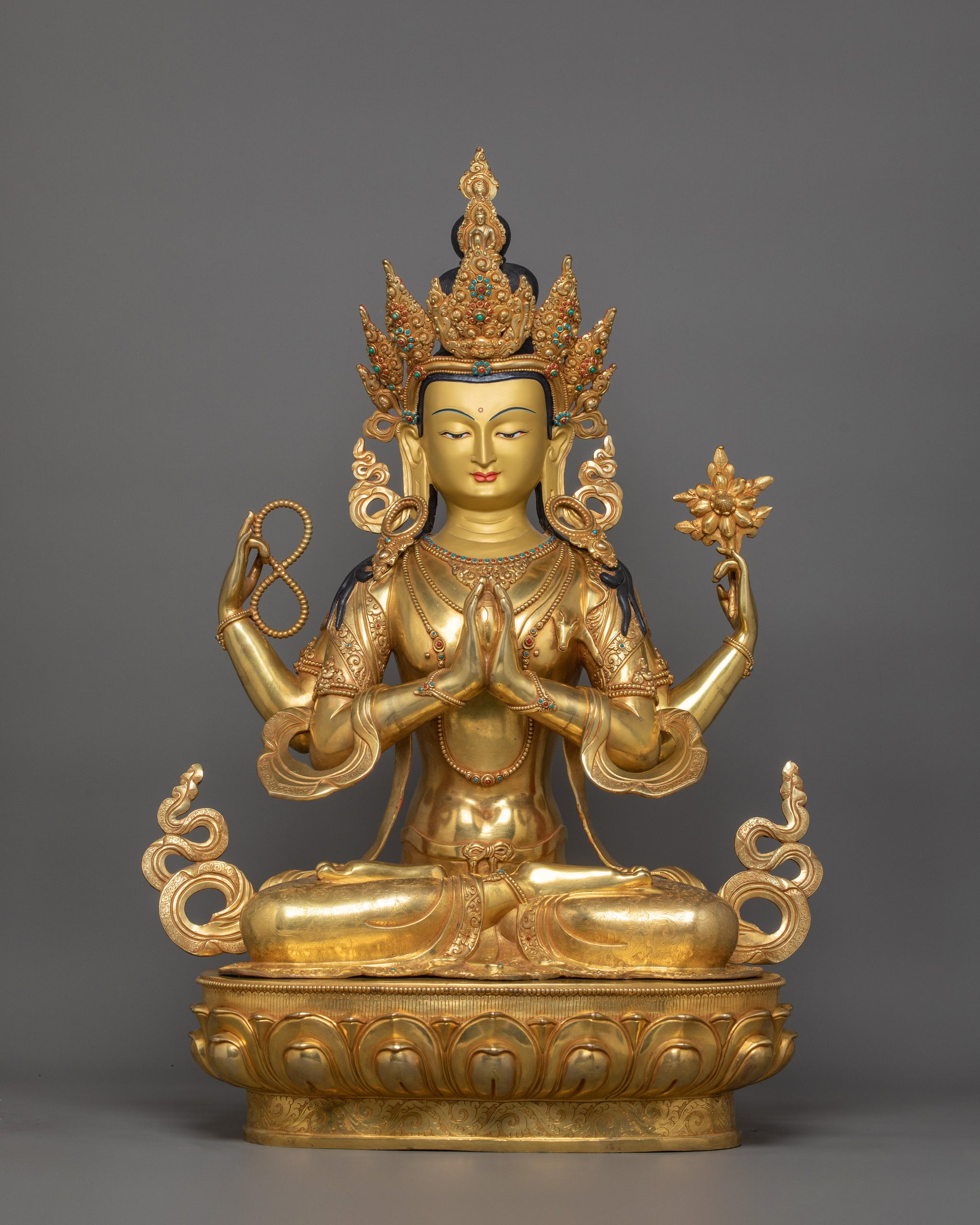 Himalayan Four-Armed Meditating Chenrezig | 24K Gold Gilded Buddhist Sculpture