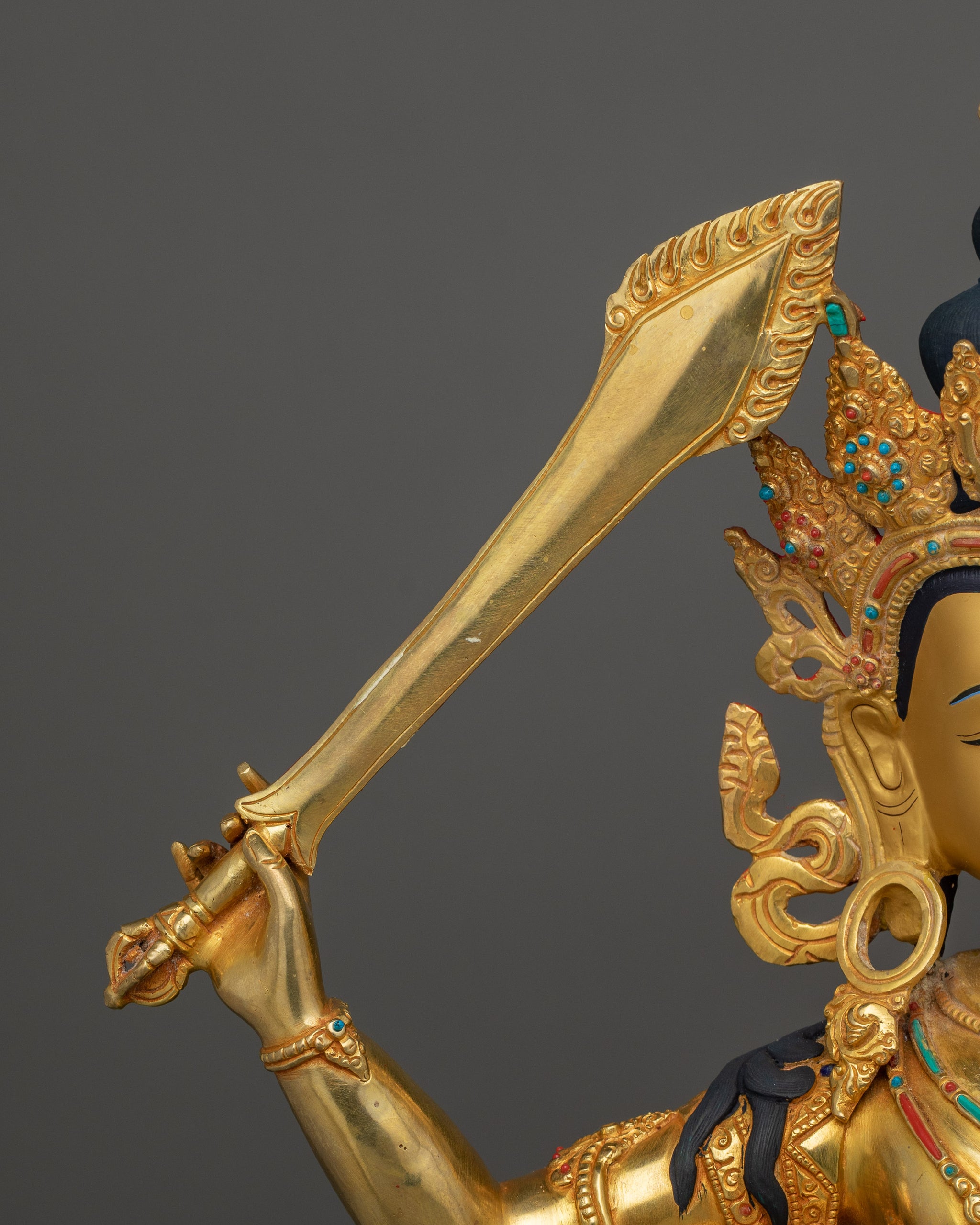 Himalayan Handmade Statue of Manjushri | Sword of Wisdom Deity