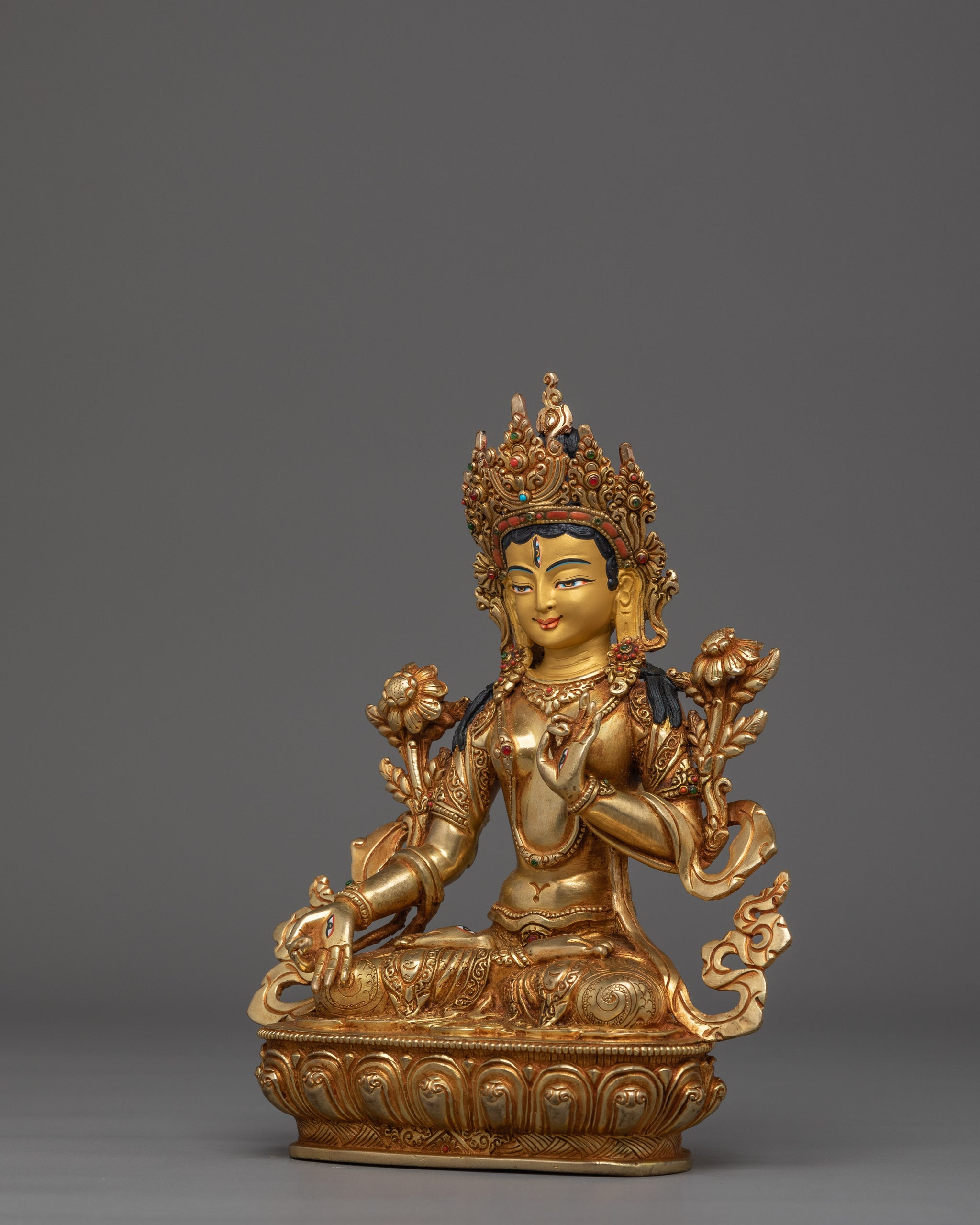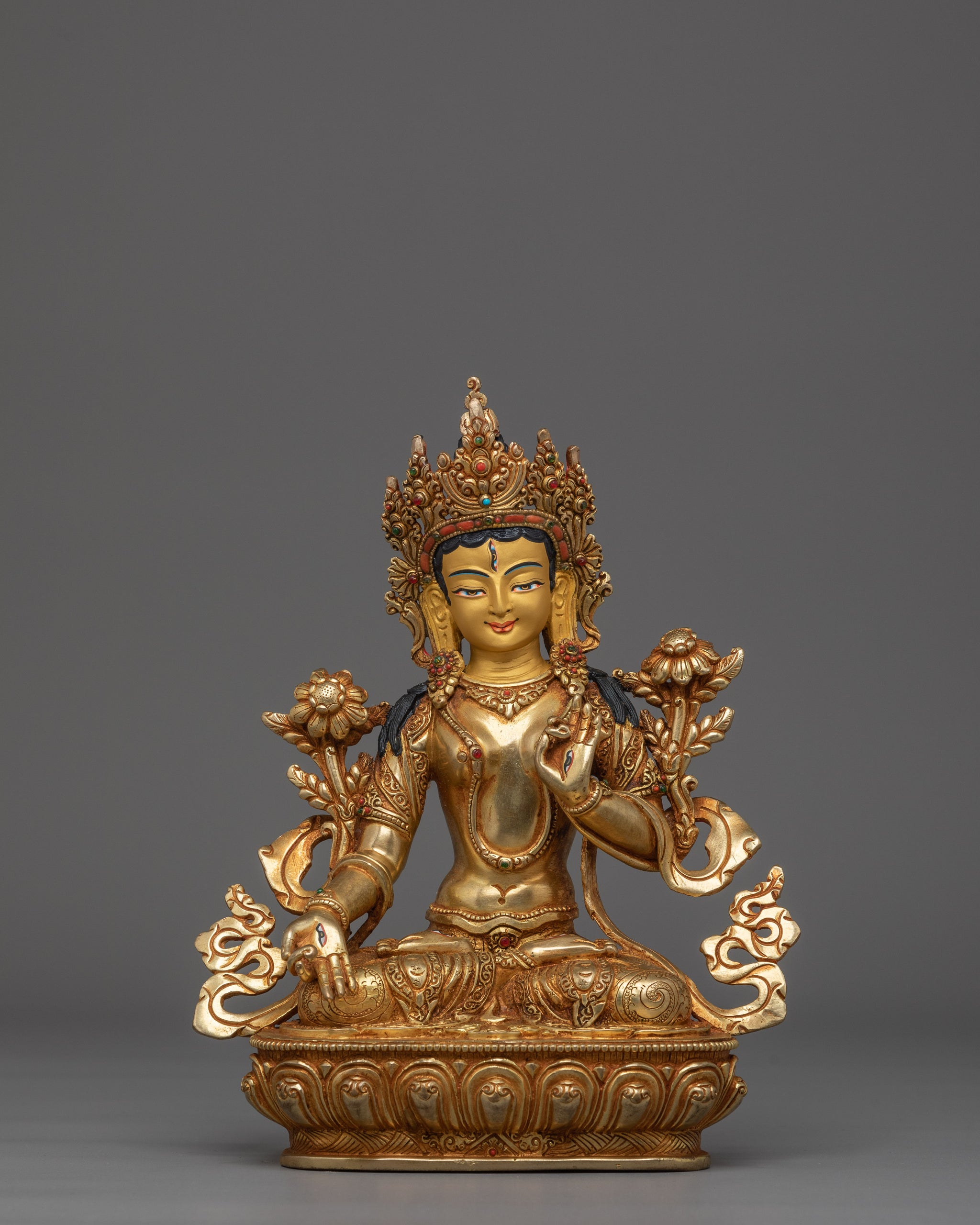 Himalayan White Tara Statue | Nepali Handcrafted Gold Icon