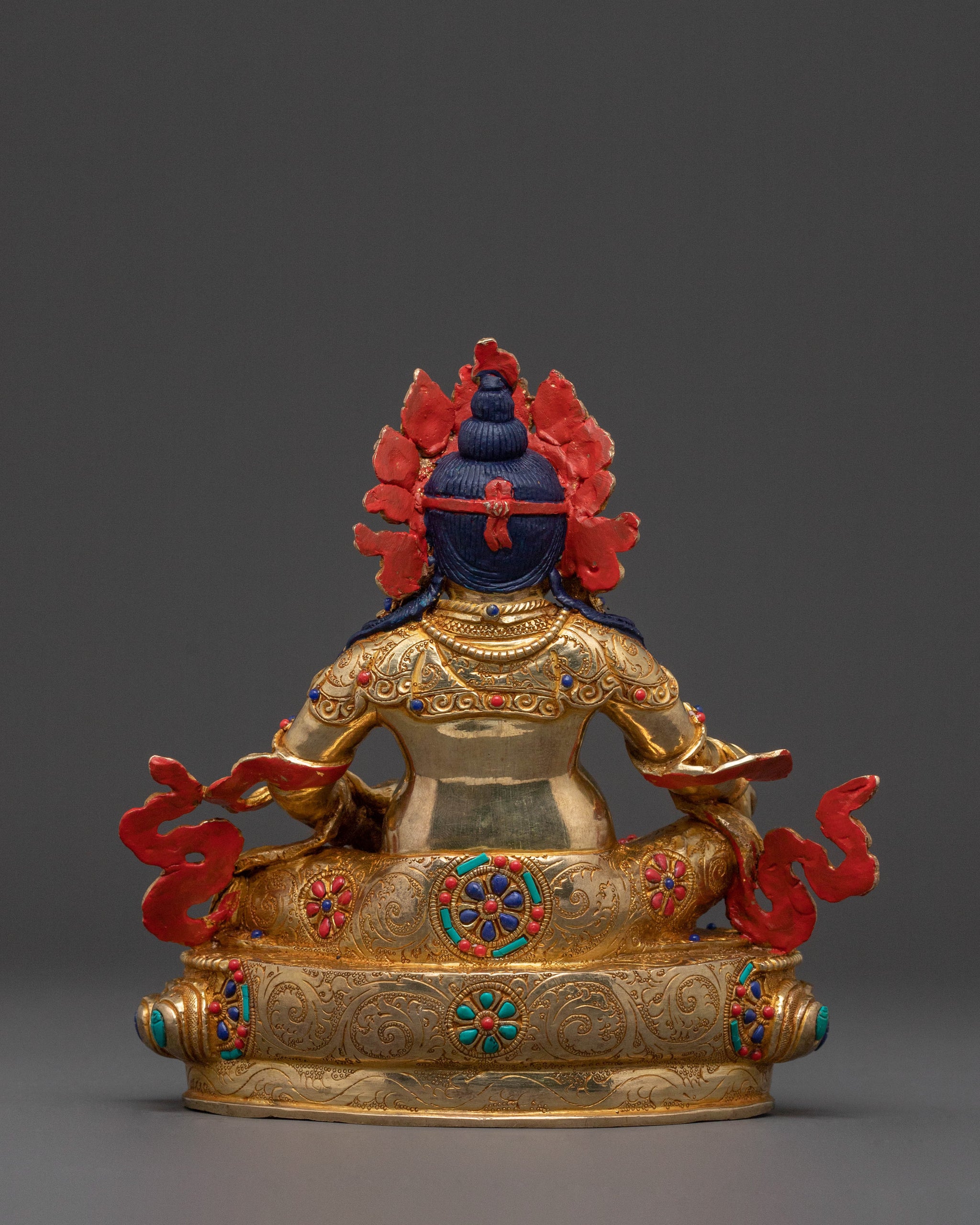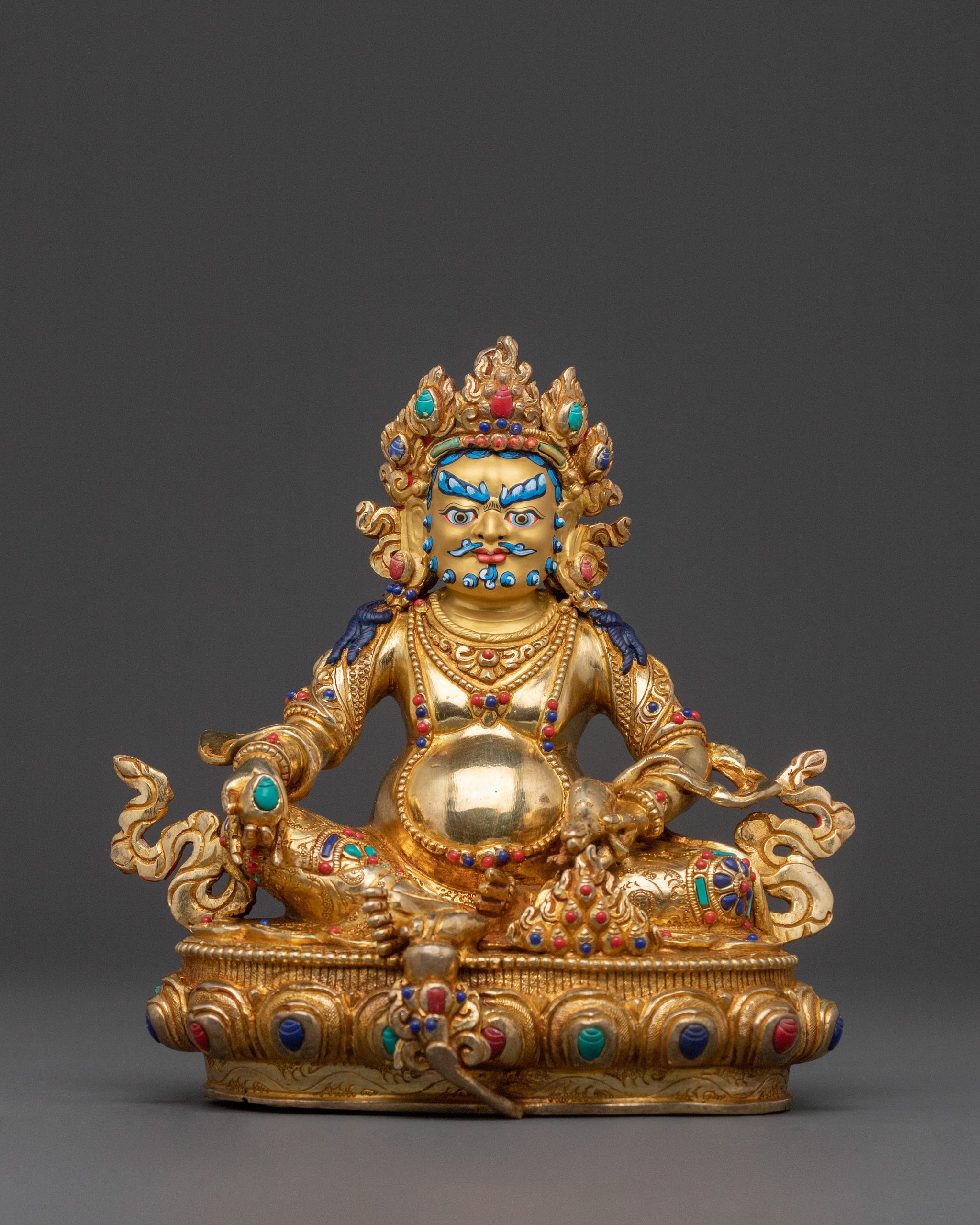 Dzambhala (also known as Jambhala) is a revered wealth deity in Tibetan Buddhism, often depicted holding a mongoose that spews jewels. He is believed to grant financial stability and spiritual riches to those who practice generosity and seek enlightenment. His blessings are not merely material but also encompass the abundance of compassion, wisdom, and inner peace.