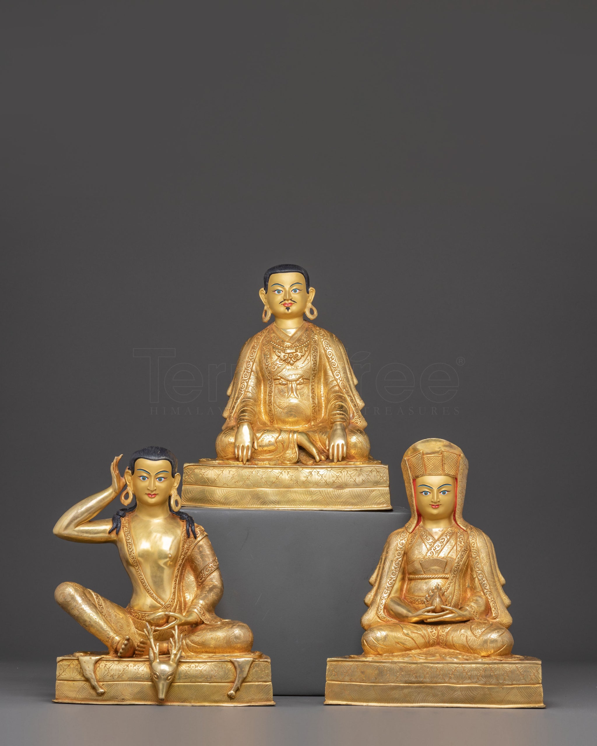 Kagyu Masters Statue Set | Marpha, Milarepa, & Gampopa Copper Sculptures