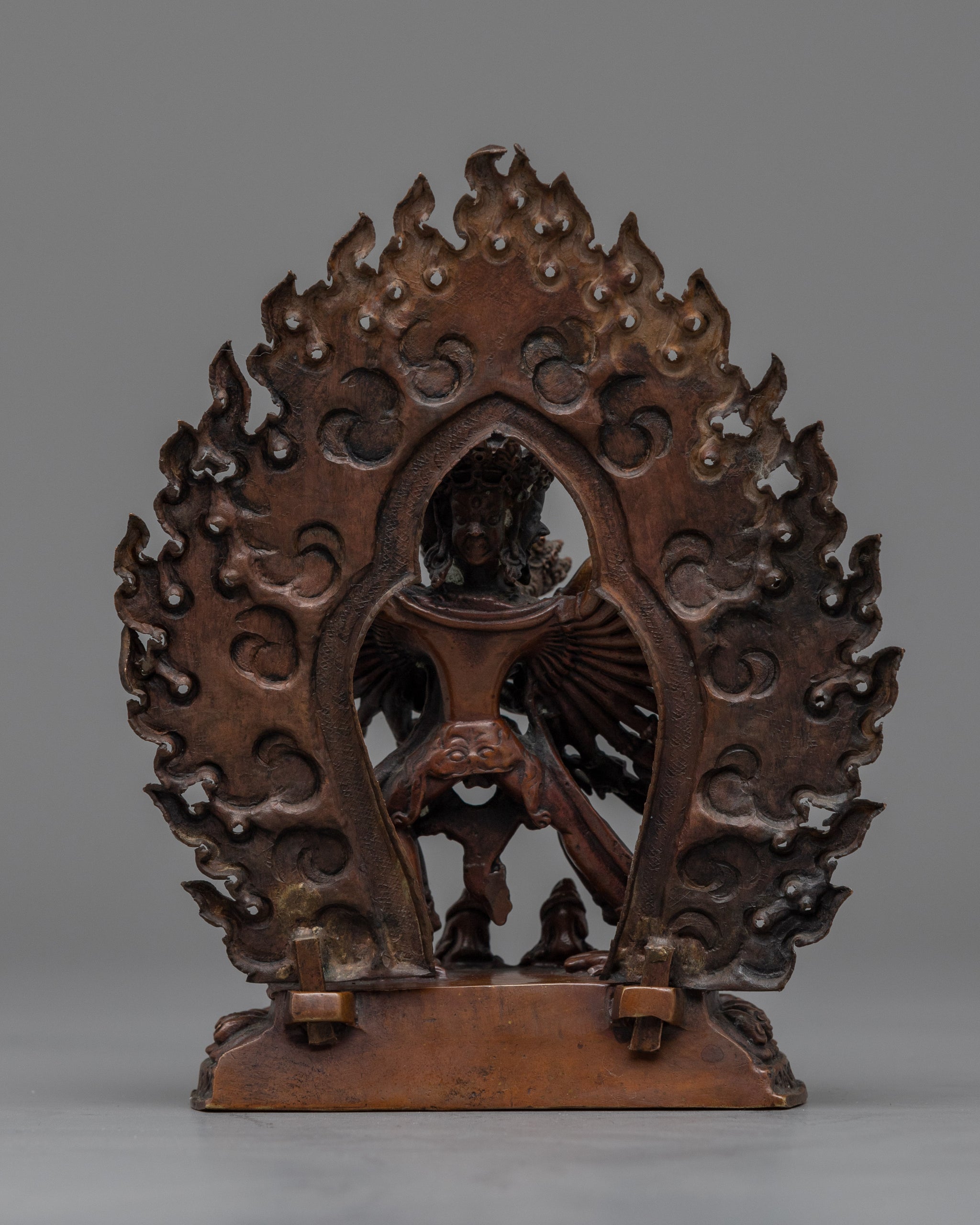 Vajrayogini is stunning. The details are amazing. It's easy to make out her facial expressions, skulls, feet, and the ring of fire around her. You can tell she's handmade. There is a consecration hole in her back.