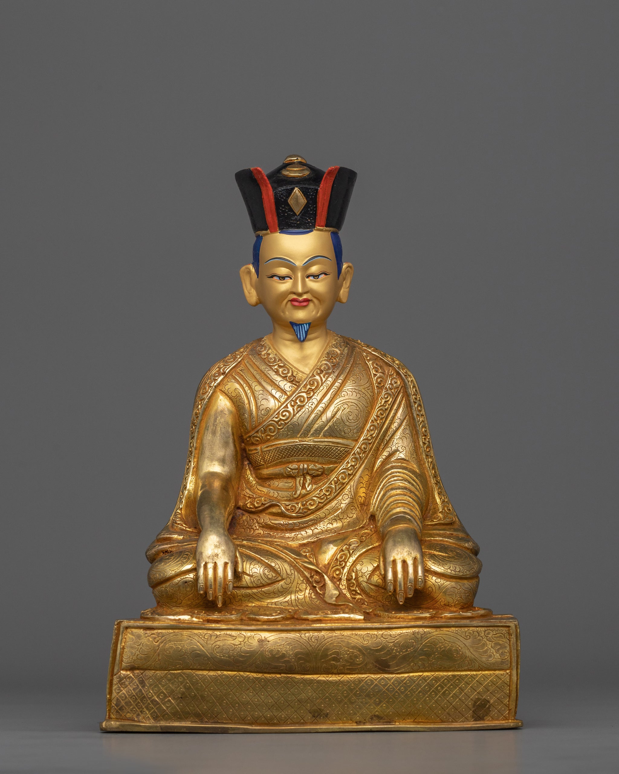 This elaborately detailed monument celebrates Karma Pakshi, the famed 2nd Karmapa and enlightened teacher of the Kagyu lineage, and his wisdom and teachings. Standing 10.6"/27 cm tall and resting on a 7.9"/20 cm base, this artwork embodies spiritual elegance and force. The statue, which weighs 2.61 kg, is composed of copper and embellished with 24K gold-gilded surfaces, as well as gold and acrylic paintings that bring out the holy aura of the 2nd Karmapa.