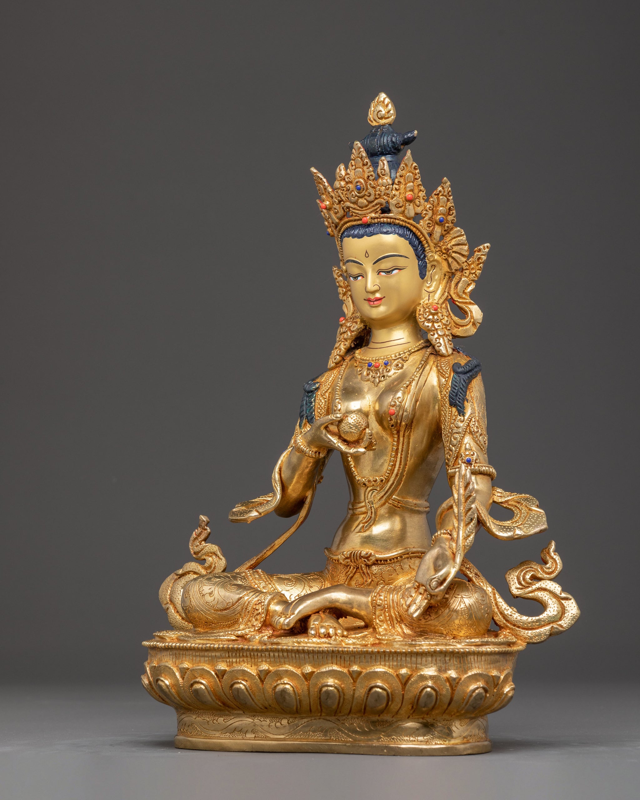 The statue is very beautiful. The craftsman who crafted it clearly shows the care and heart he put into it. It is a true dharma jewel on the altar. Shipping was quick, considering the recent events in Nepal. It was carefully packed and filled in a wooden box. If you're buying for shipping to the European Union, please note that customs duties on items from outside the EU are as high as 23 percent of the value.