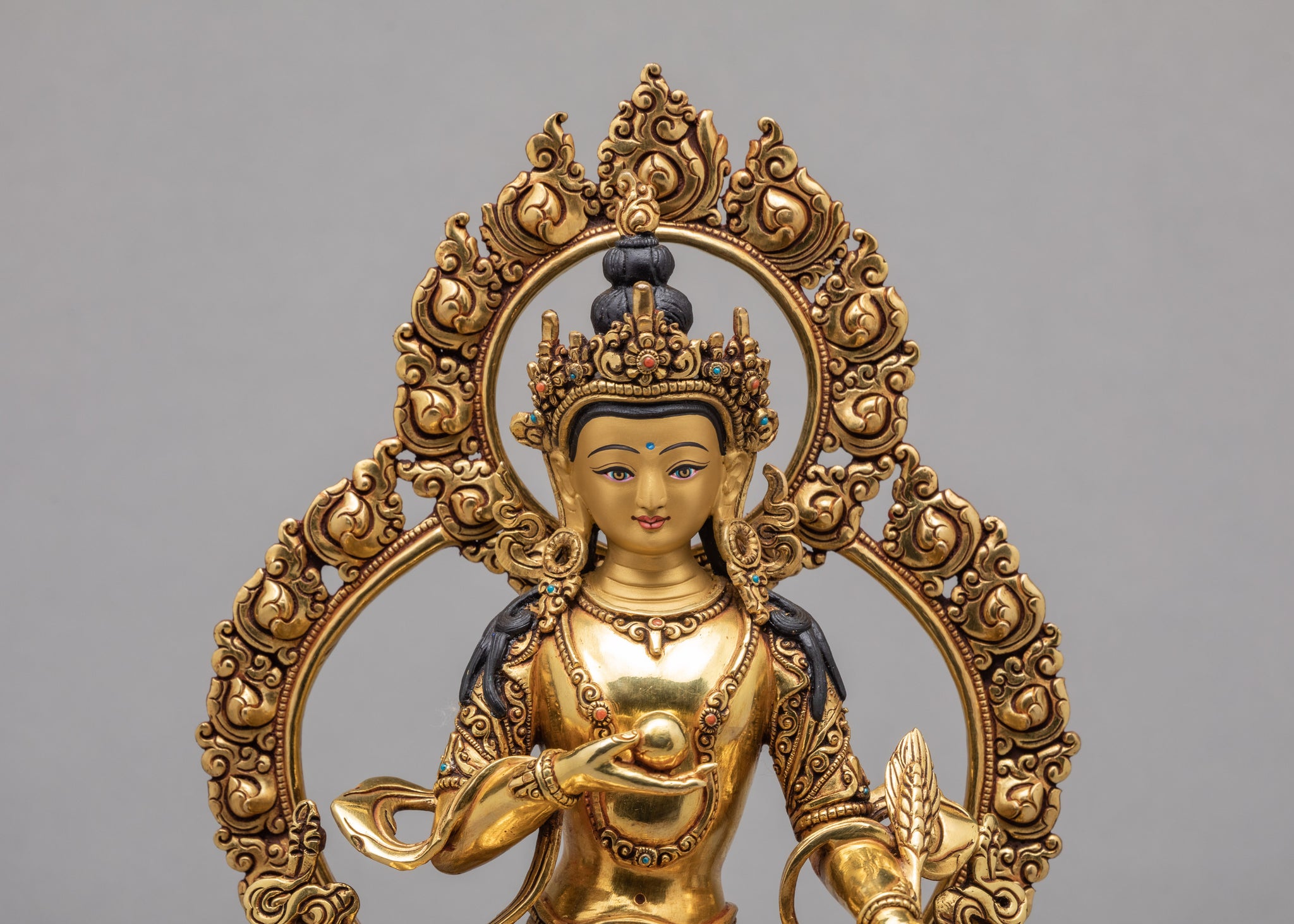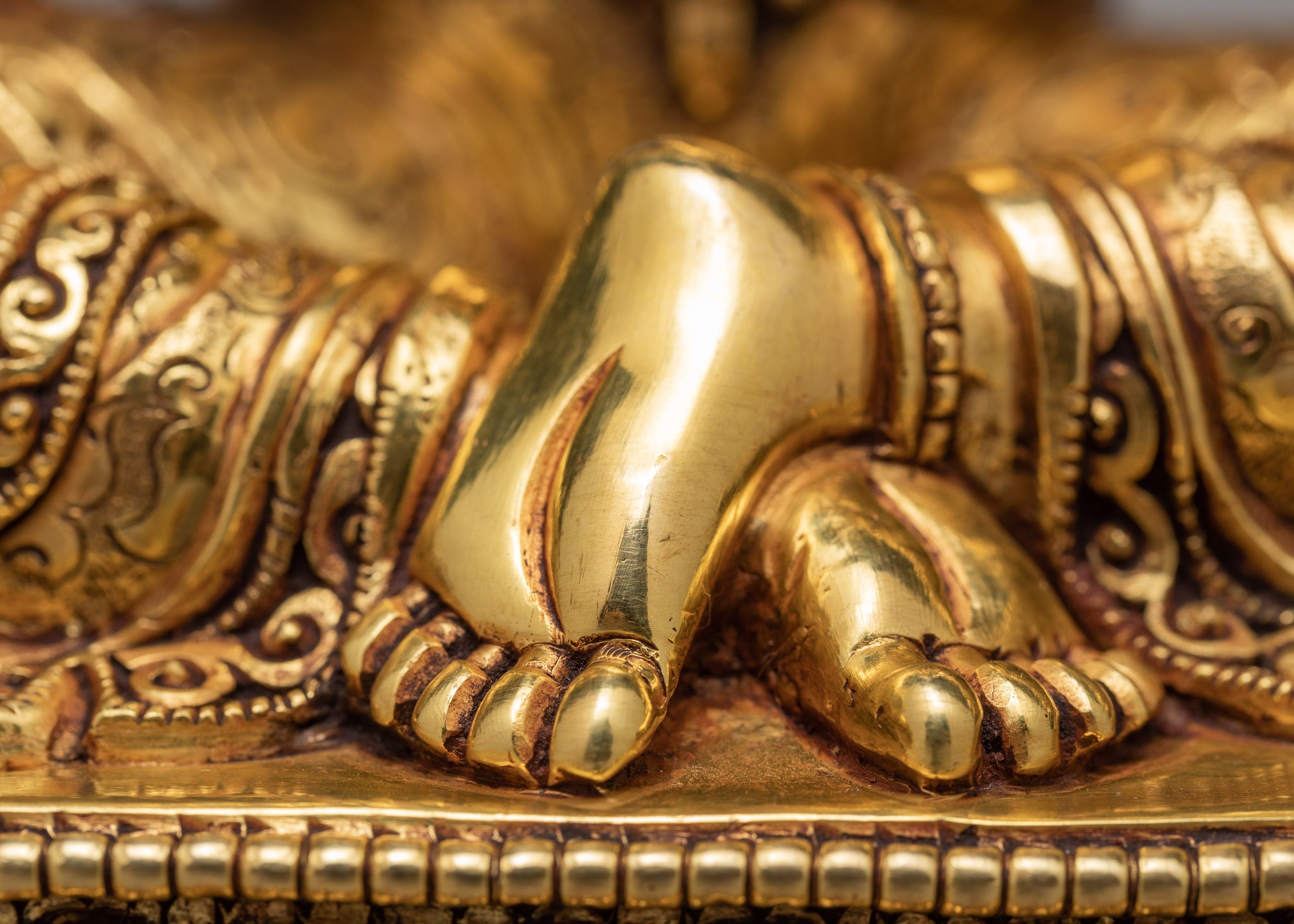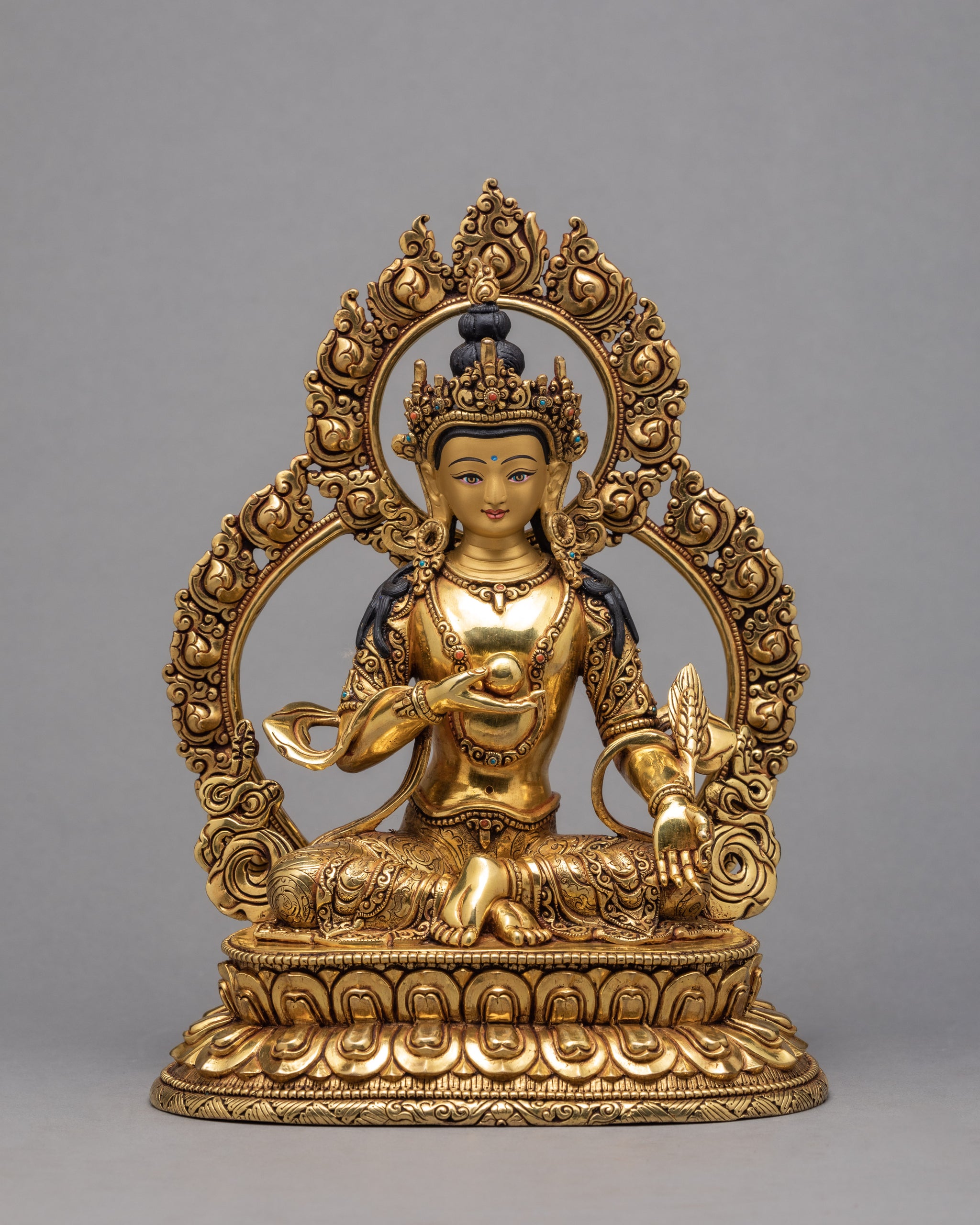 The most popular bodhisattva of the earth and most respected and worshipped by the Buddhists. He is portrayed as a Buddhist monk who took a vow and guide all human beings until hell is emptied. With, calm and peaceful face, gilded with pure 24K gold, he is seated in vajra posture on a lotus seat.