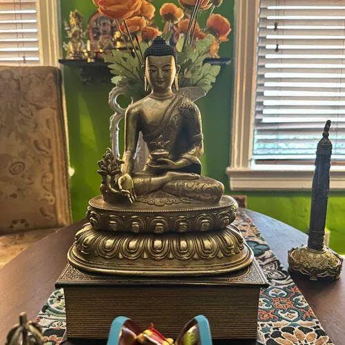 This Medicine Buddha statue is a powerful presence that brings the healing power of the Land of Medicine and the possibility of inner peace, wisdom, and compassion into your home or sacred space. Through meditation and spiritual practice, this statue can be a visual aid to inspire enlightenment.