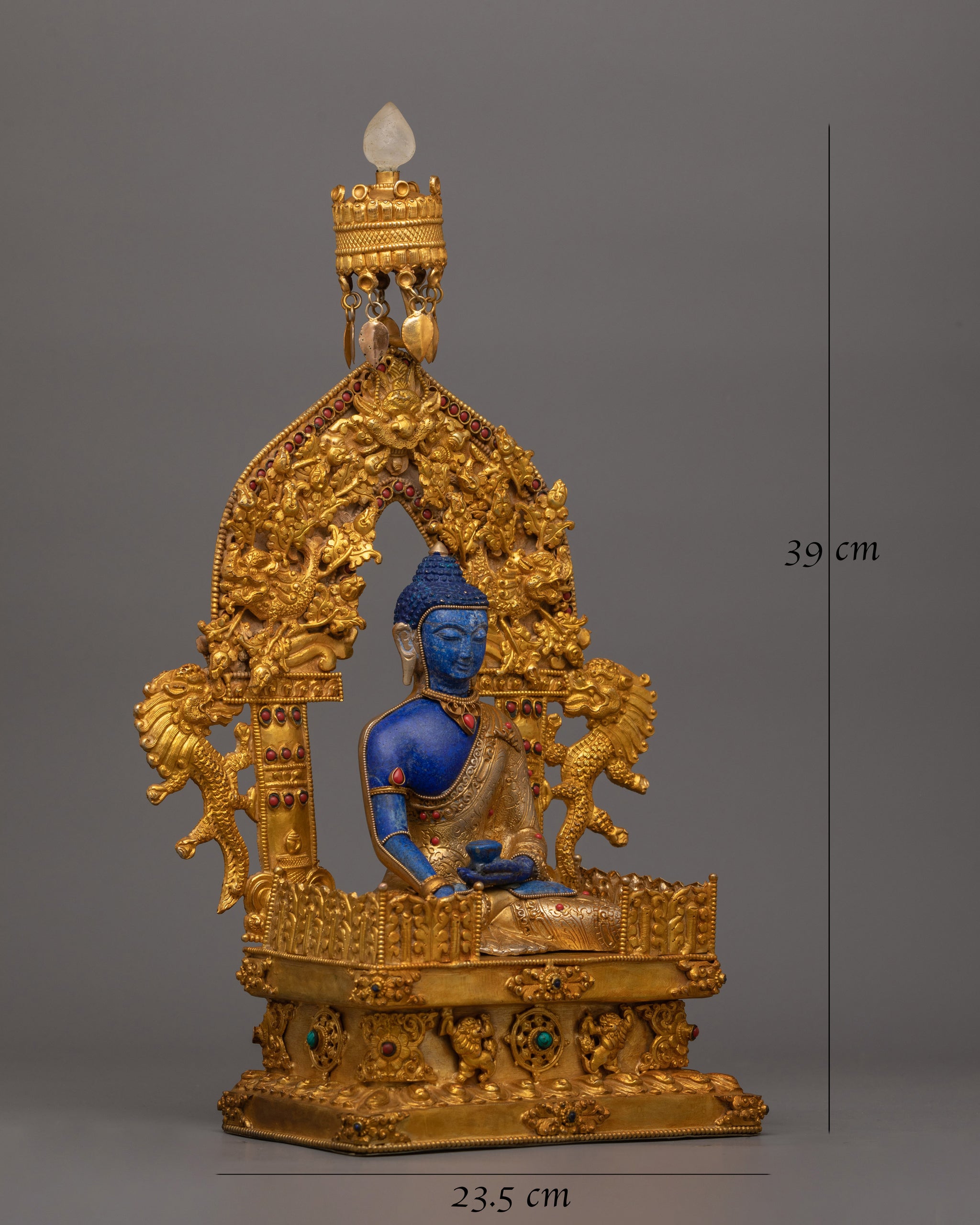 Lapis Stone Shakyamuni Buddha Statue | 24K Gold Gilded Artwork