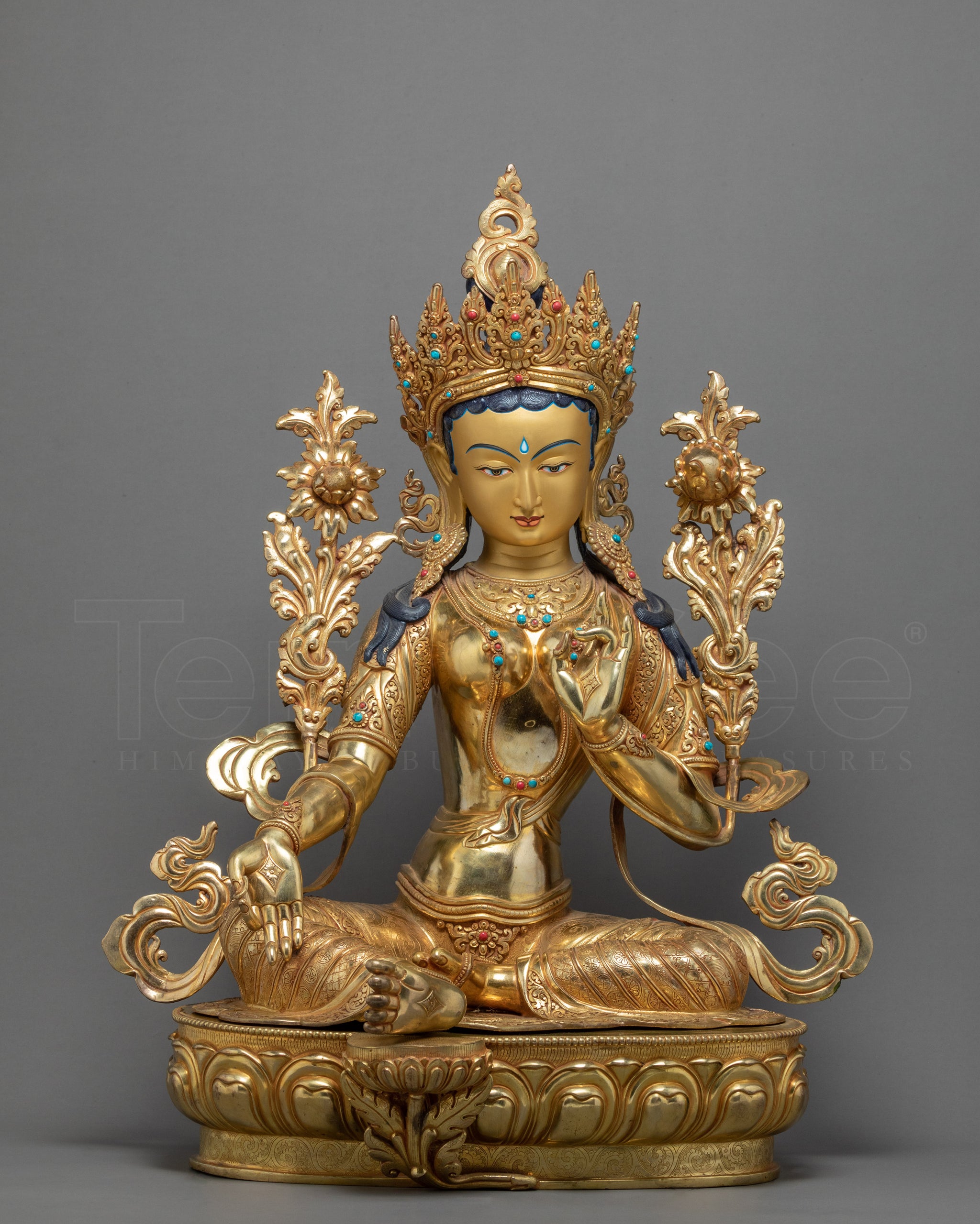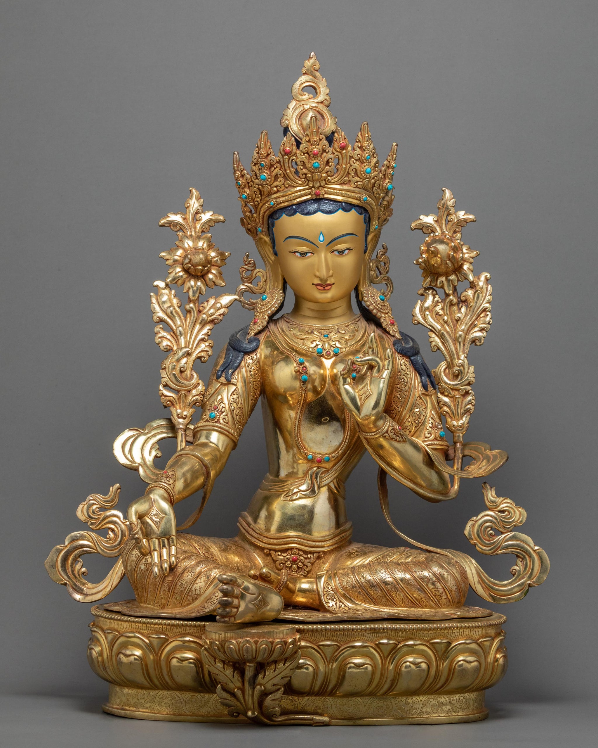 Green Tara, Traditional Himalayan Large Statue in 24K Gold