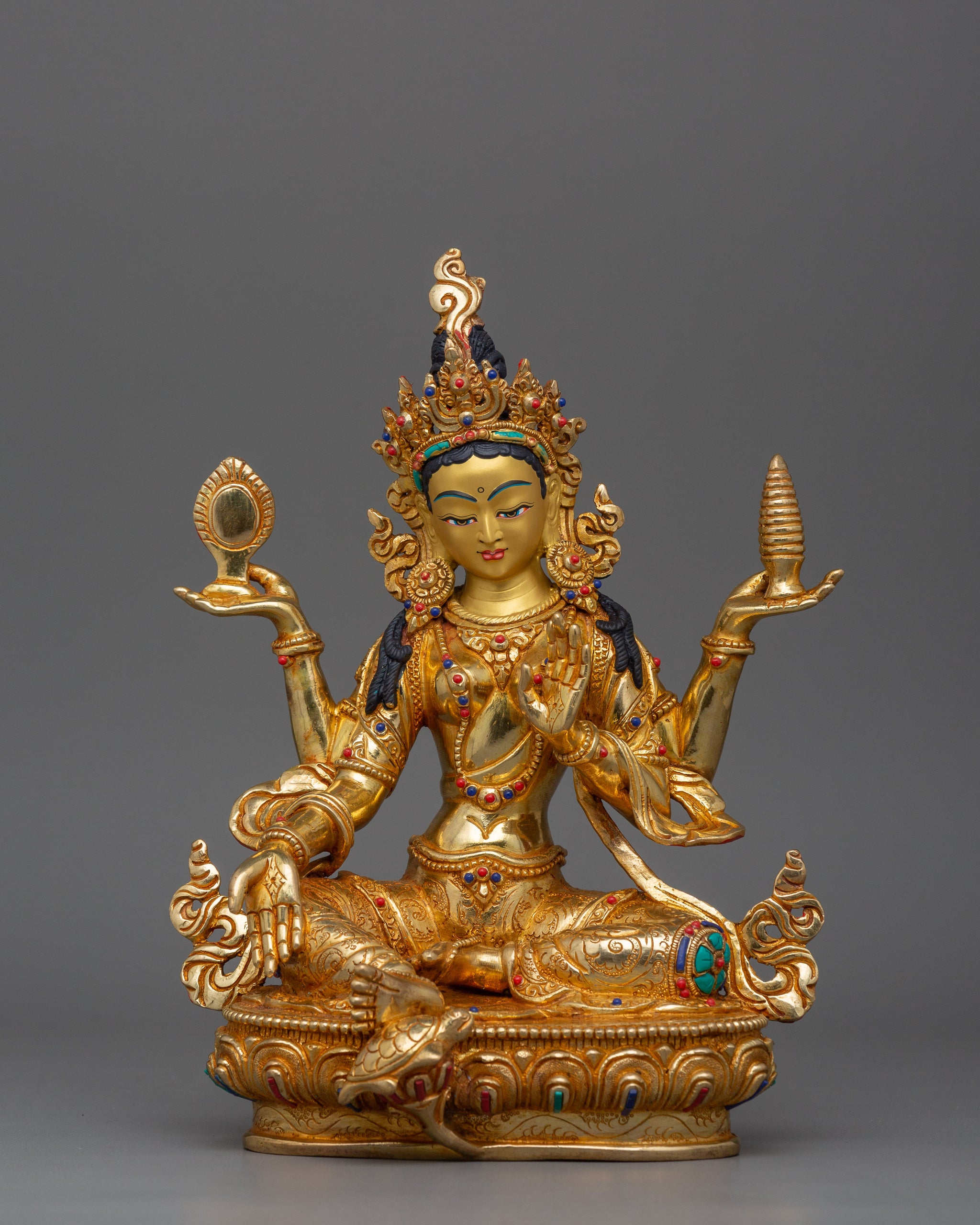 Material: 24K Gold Gilded, Gold & Acrylic Paintings, Copper Body, Handcarved Gemstones