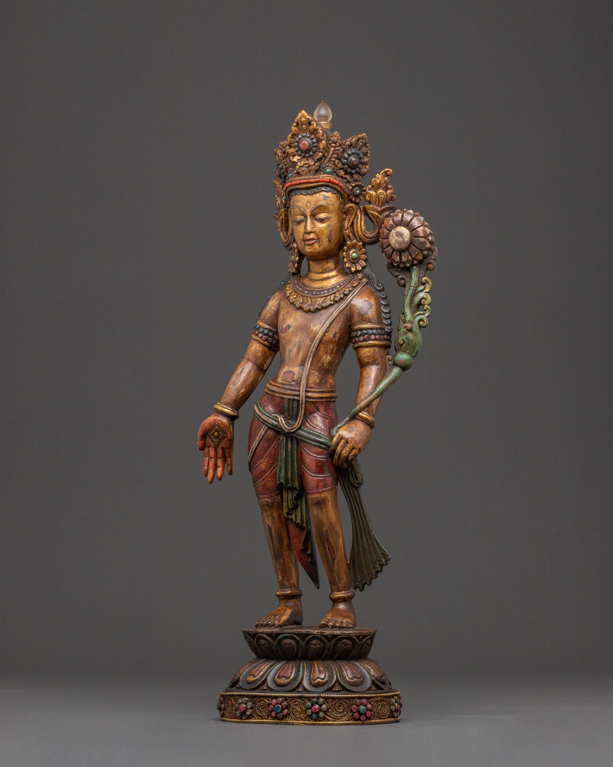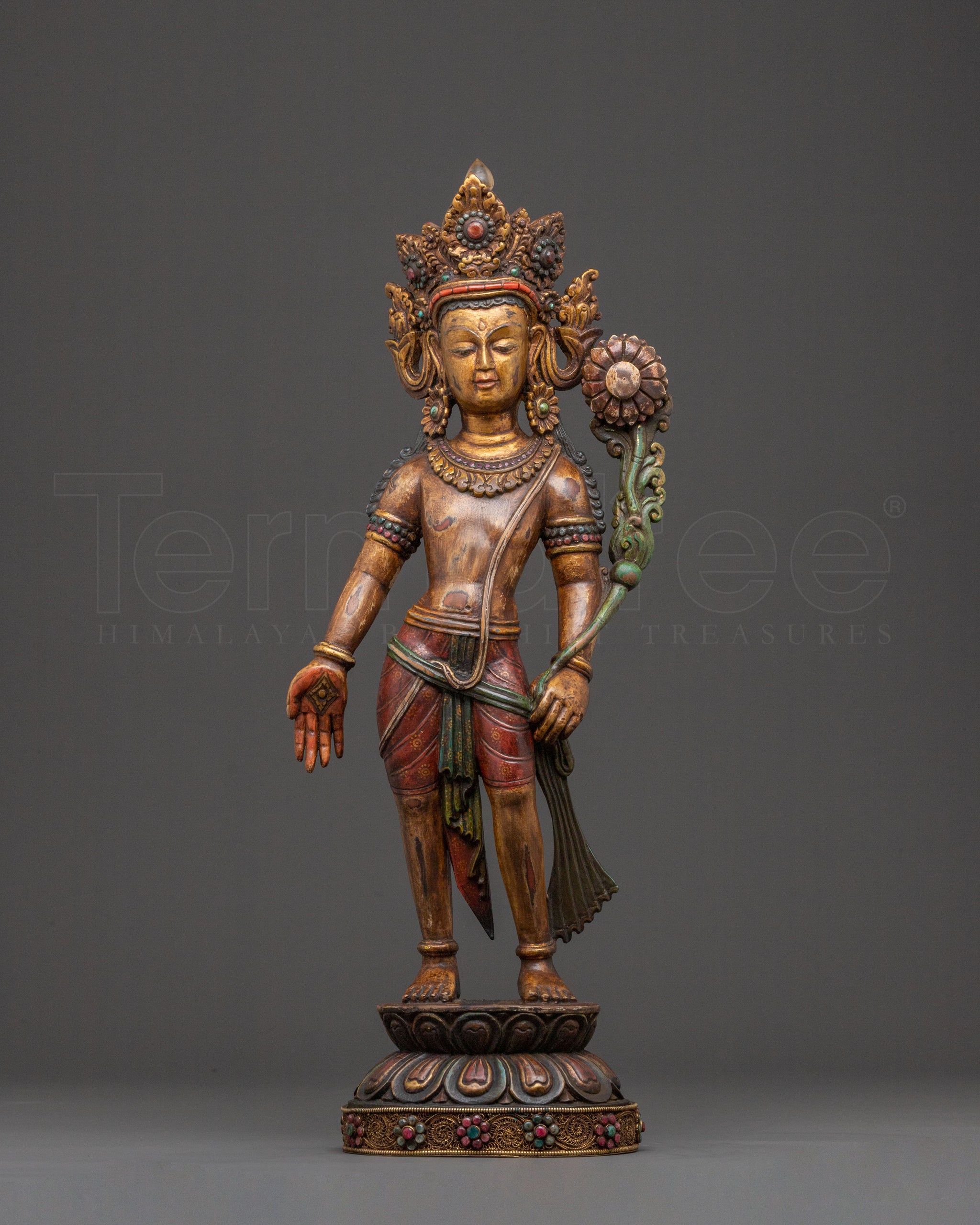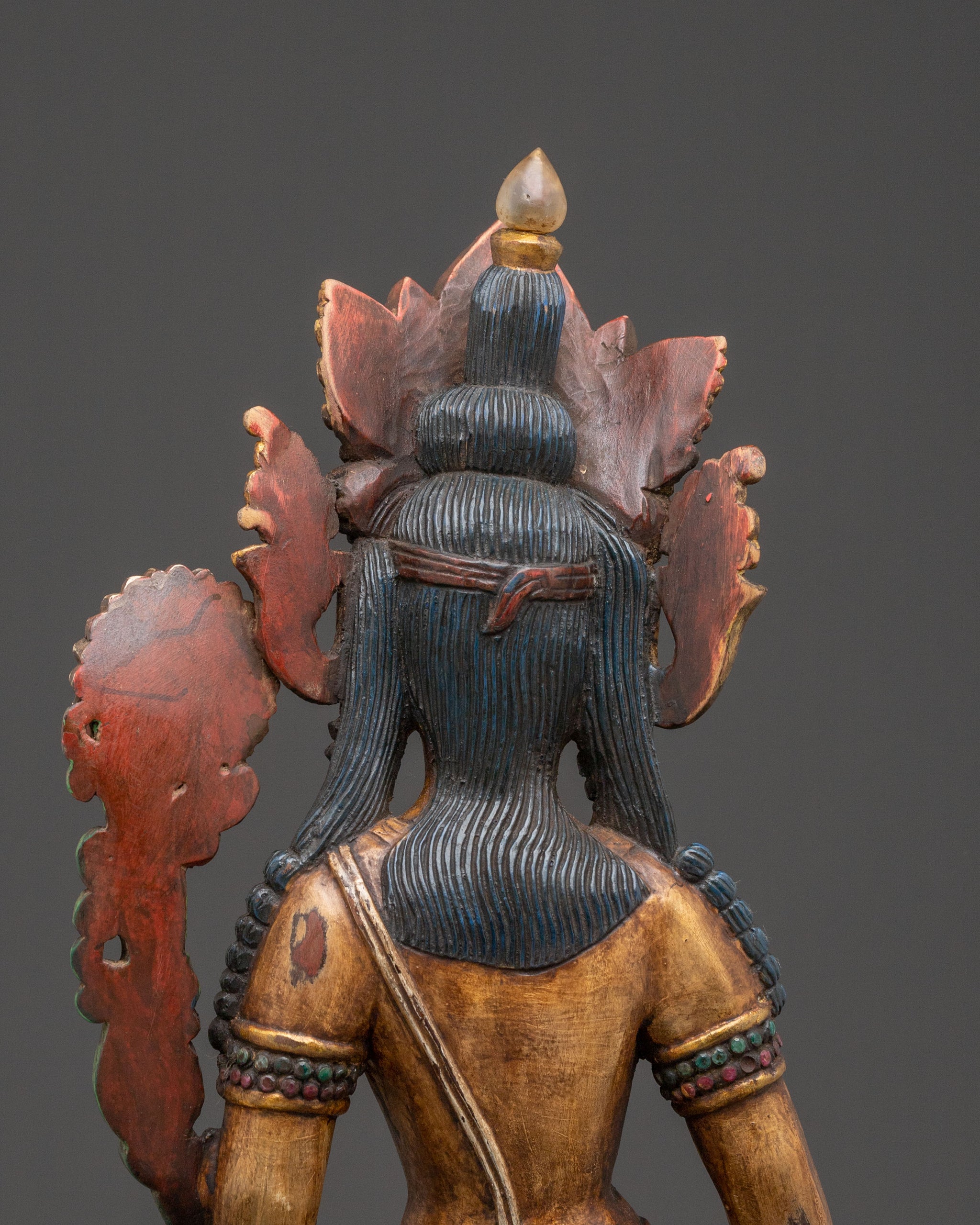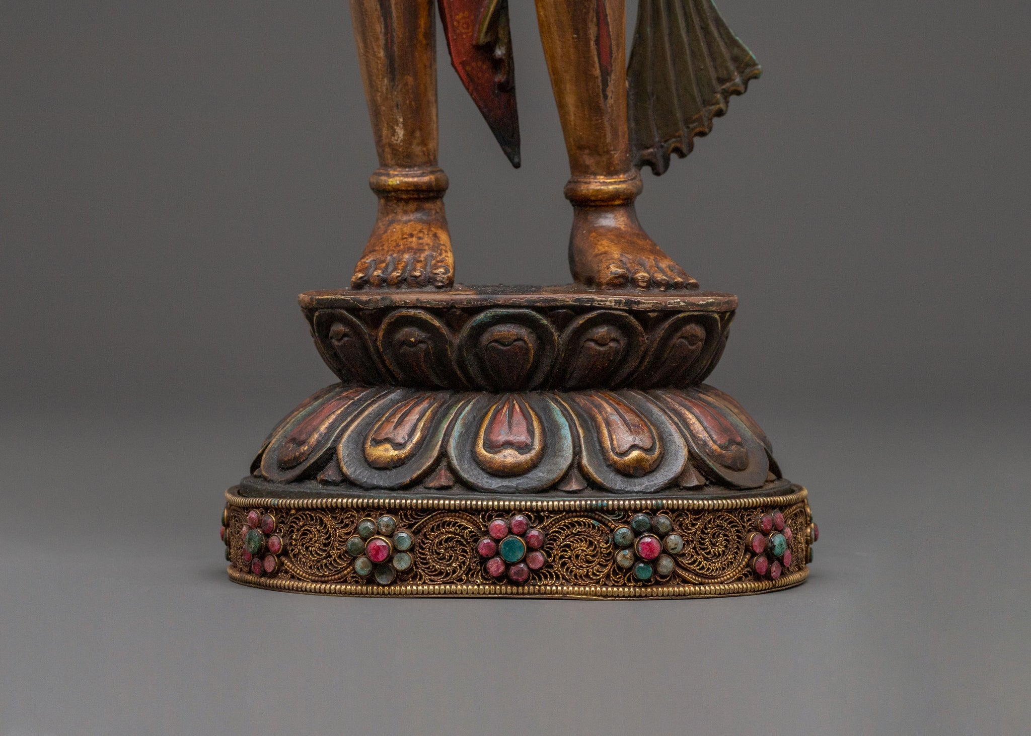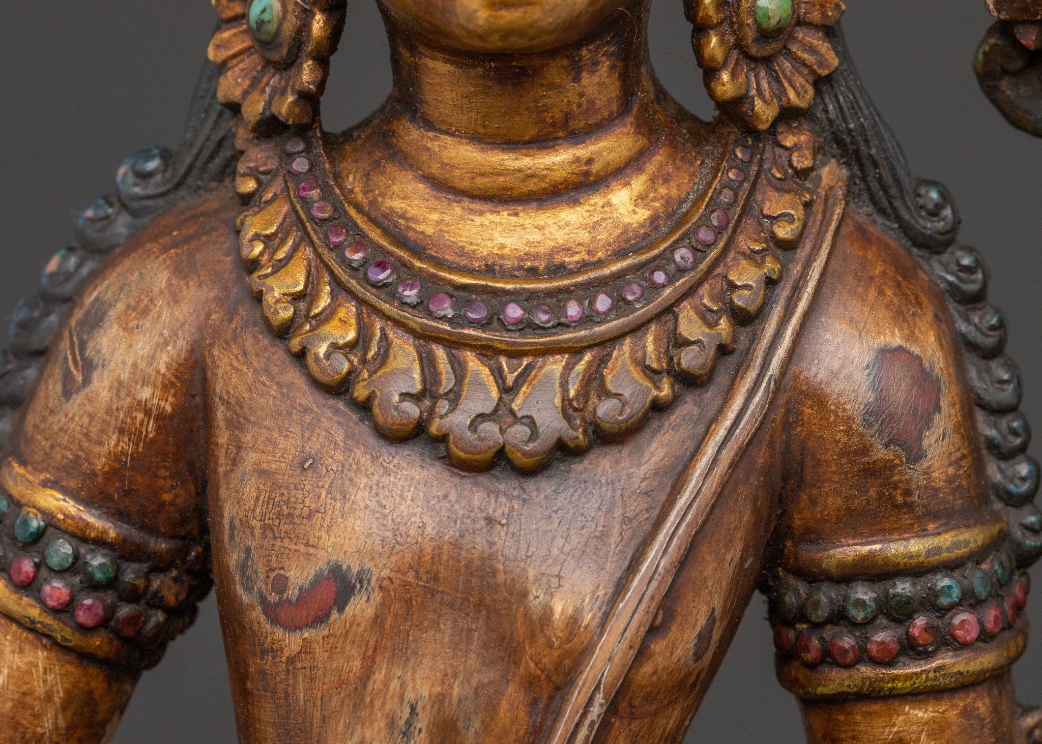 Lokeshwor Tibetan Sacred Statue: Antique Gold and Gemstone Artistry