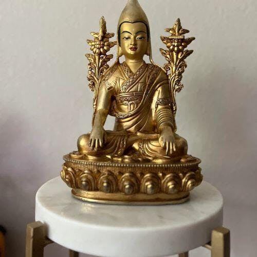 We have magnificently hand-carved the statue of Longchenpa in a traditional Himalayan Art of Nepal. We are the Kathmandu Valley artist whose artisan has passed through generations in making ancient Vajrayana sculptures. We have depicted a Buddhist master seated on top of a moon disc lotus seat with a tranquil expression, carrying a lotus with both hands. You can use this figurine in various aspects, like in your regular meditational activities and even in different Buddhist rituals. This exquisite auspicious statue will be a tremendous gift from Nepal to a practitioner like you.
