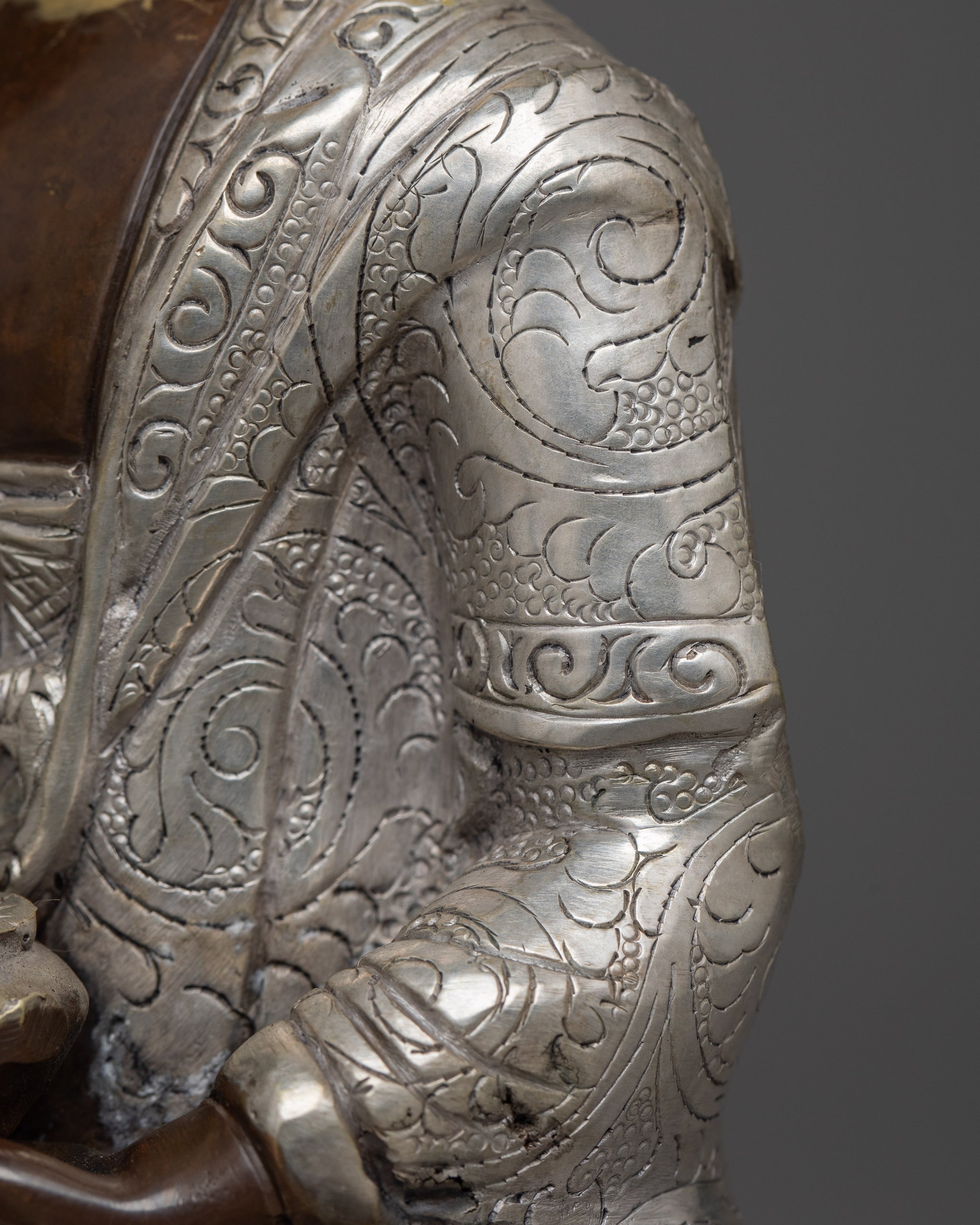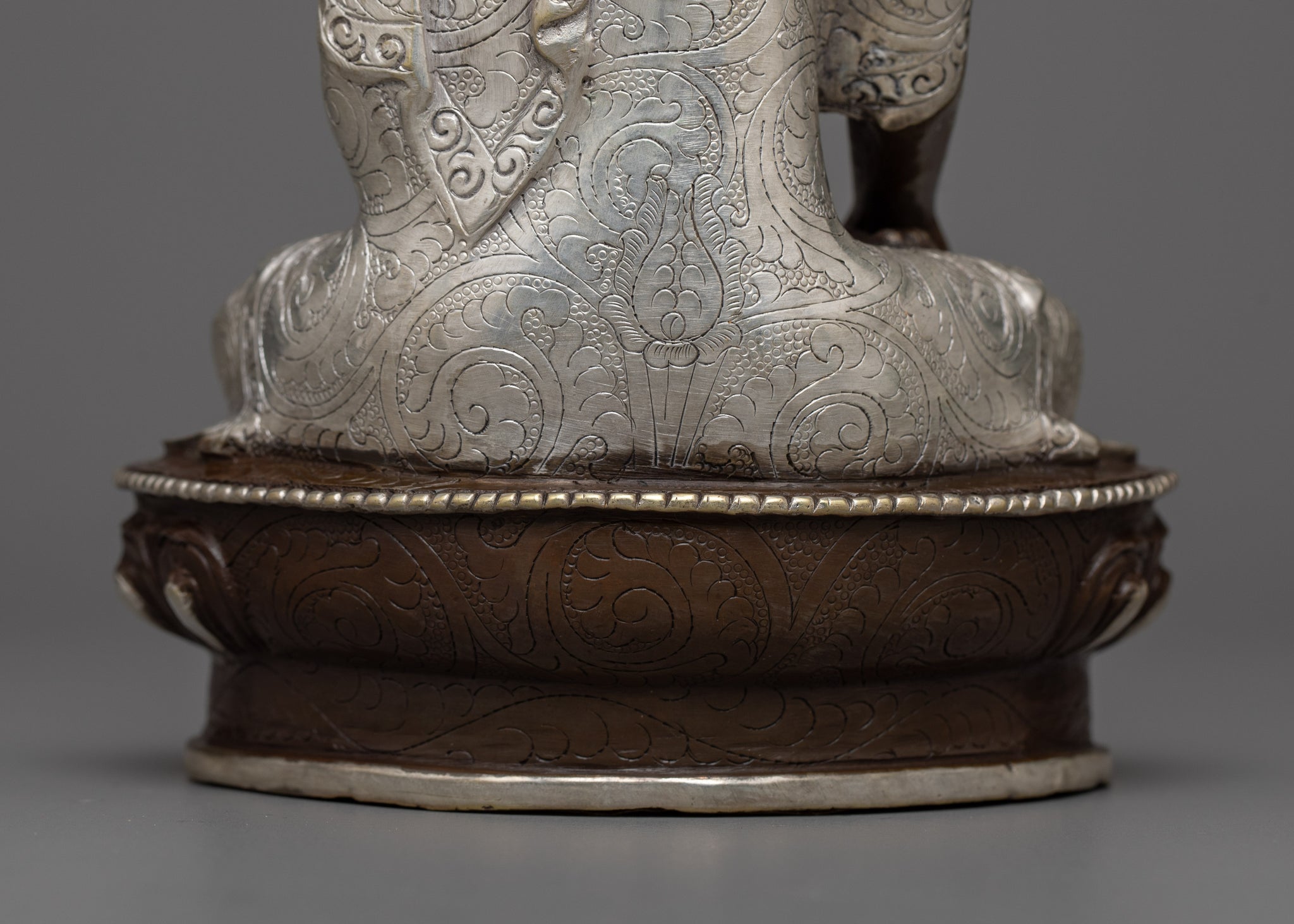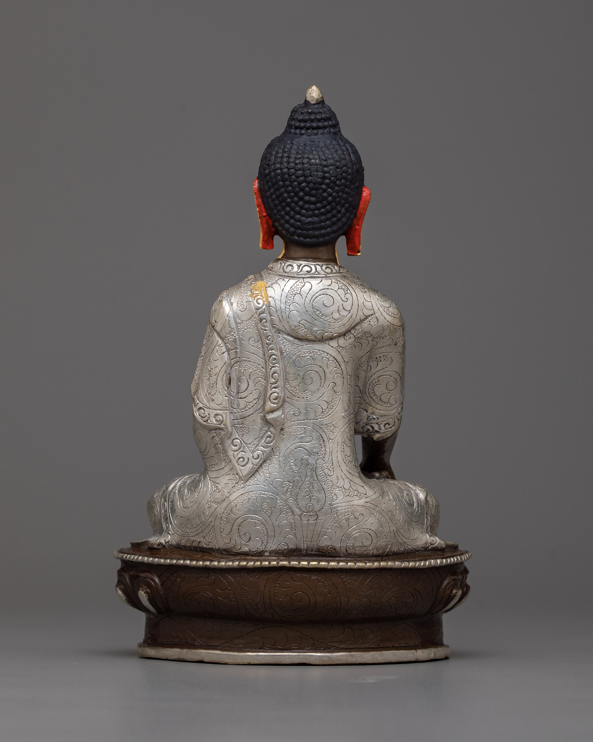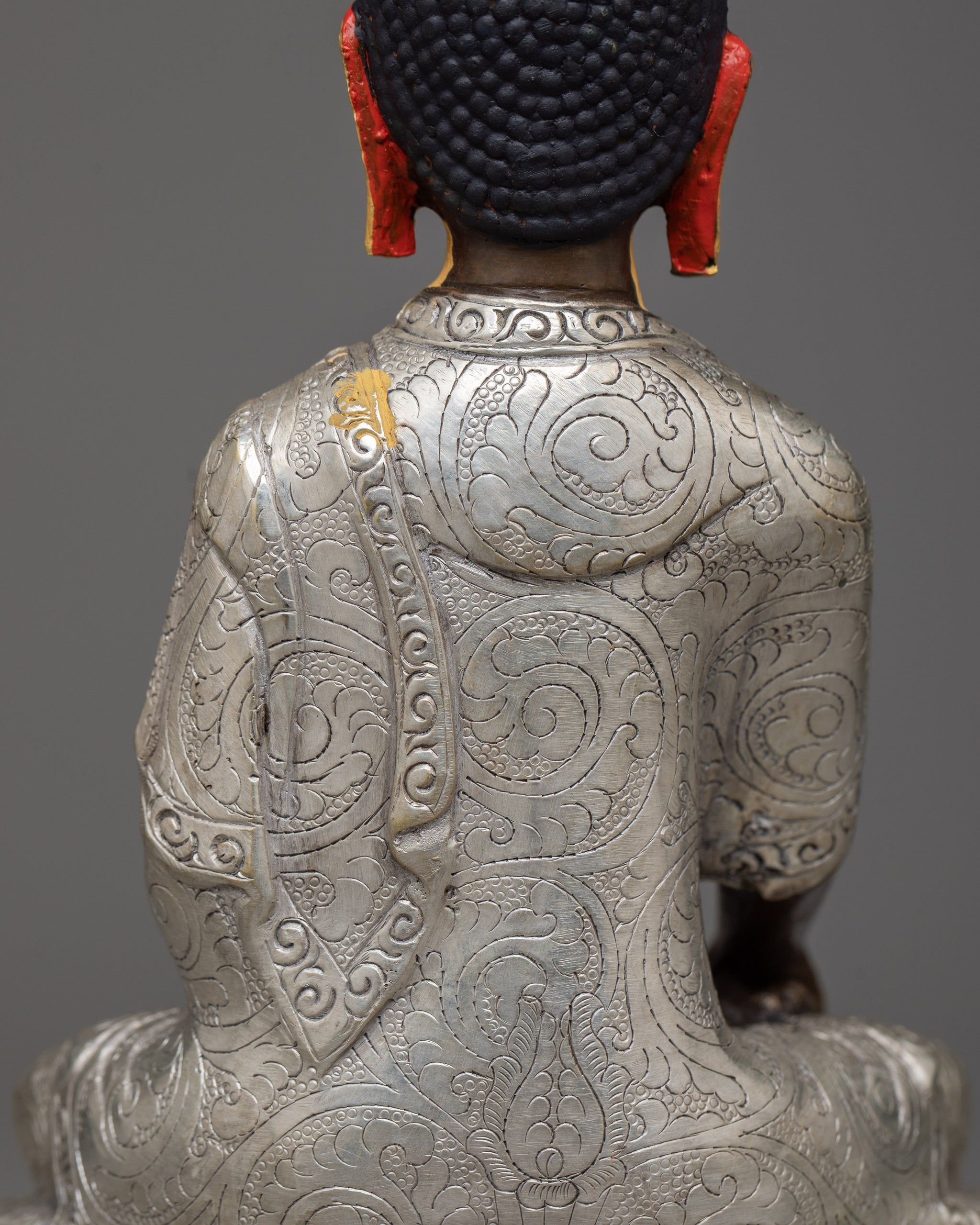 Lord Shakyamuni Buddha in Silver and Gold | Himalayan Handmade Artwork