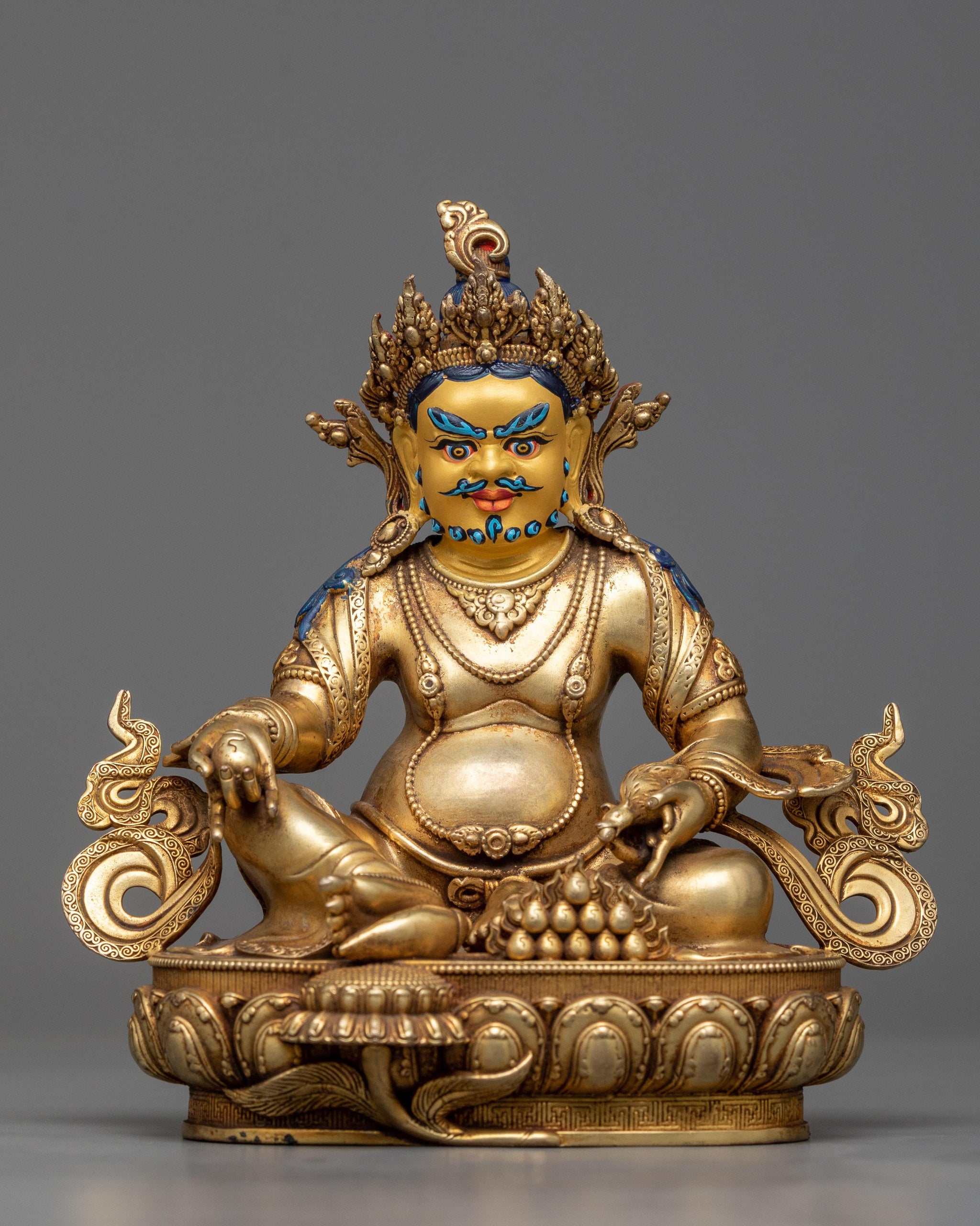 The statue has a solid copper body that has been painstakingly machine-formed to depict Dzambhala, the Mahayana Buddhist deity of wealth and prosperity. This image is a potent symbol for anyone seeking financial stability and wealth, and it resonates powerfully with Buddhist followers and aficionados.