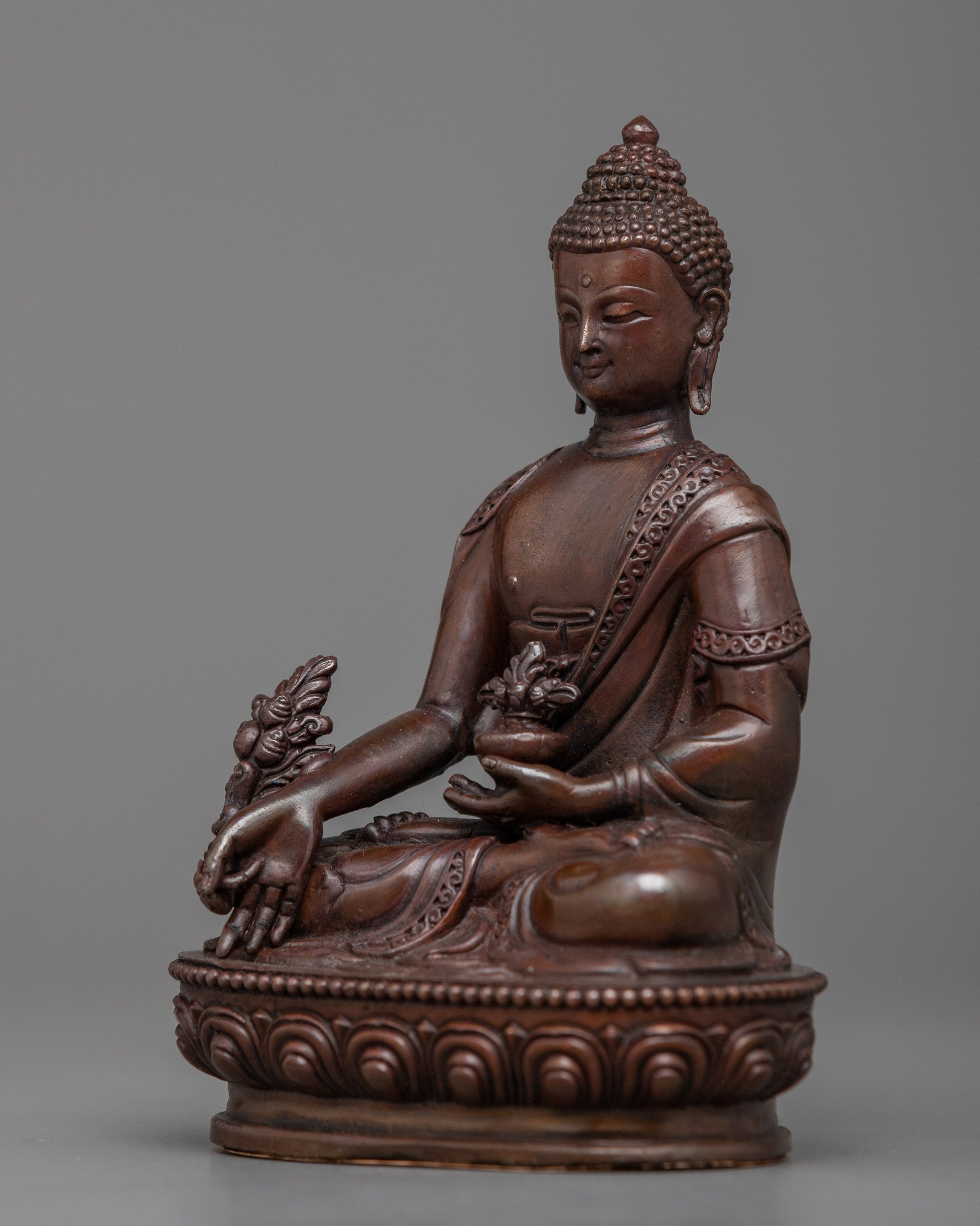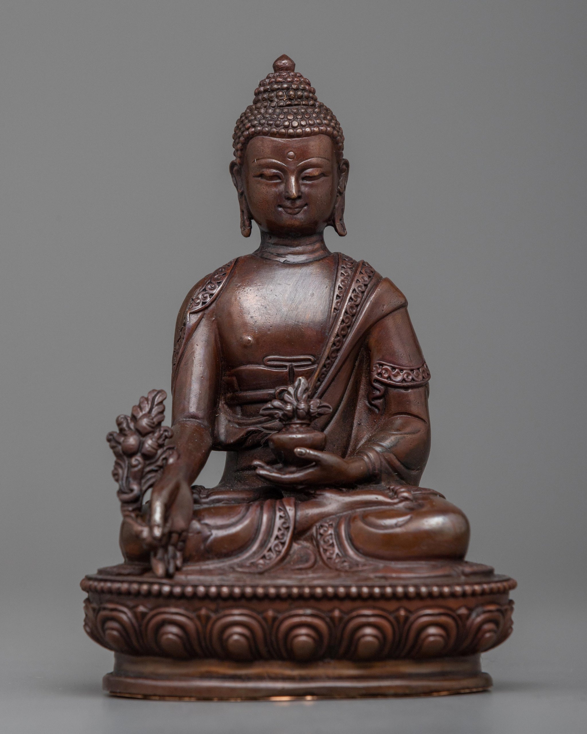 Machine-Made Medicine Buddha Statue | A Compact Oxidized Copper Symbol of Healing