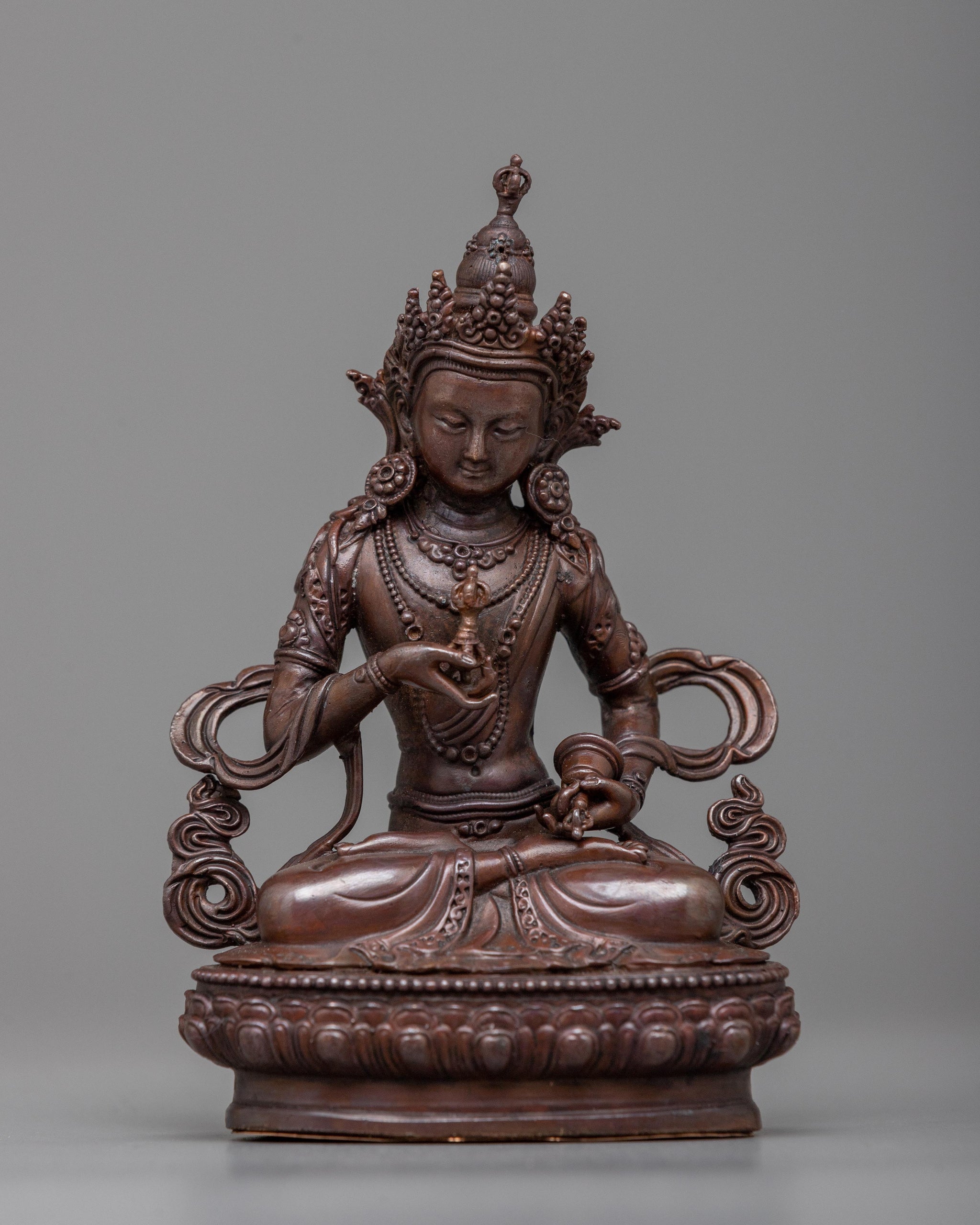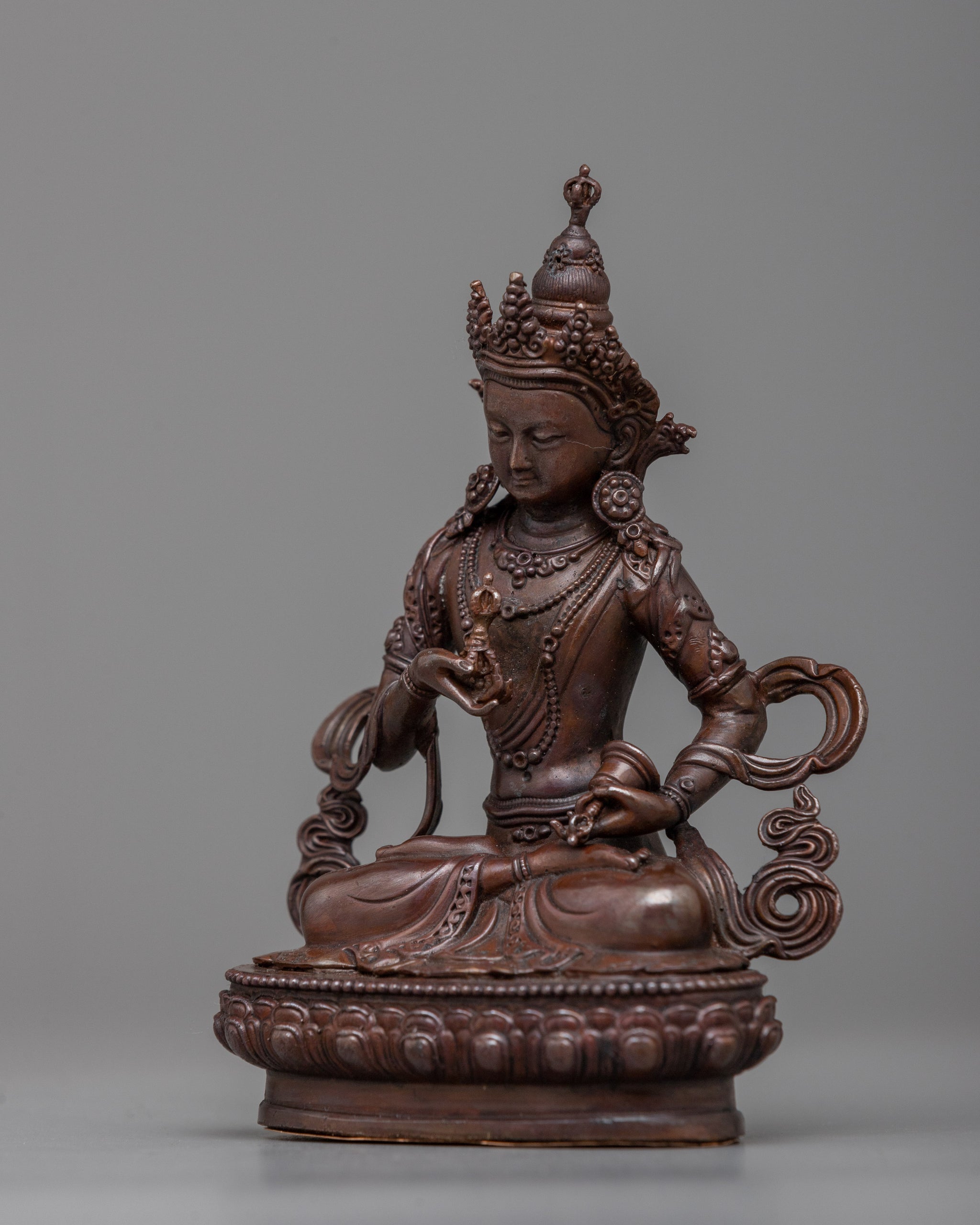 Machine-Made Vajrasattva Statue | A Compact Oxidized Copper Symbol of Purification