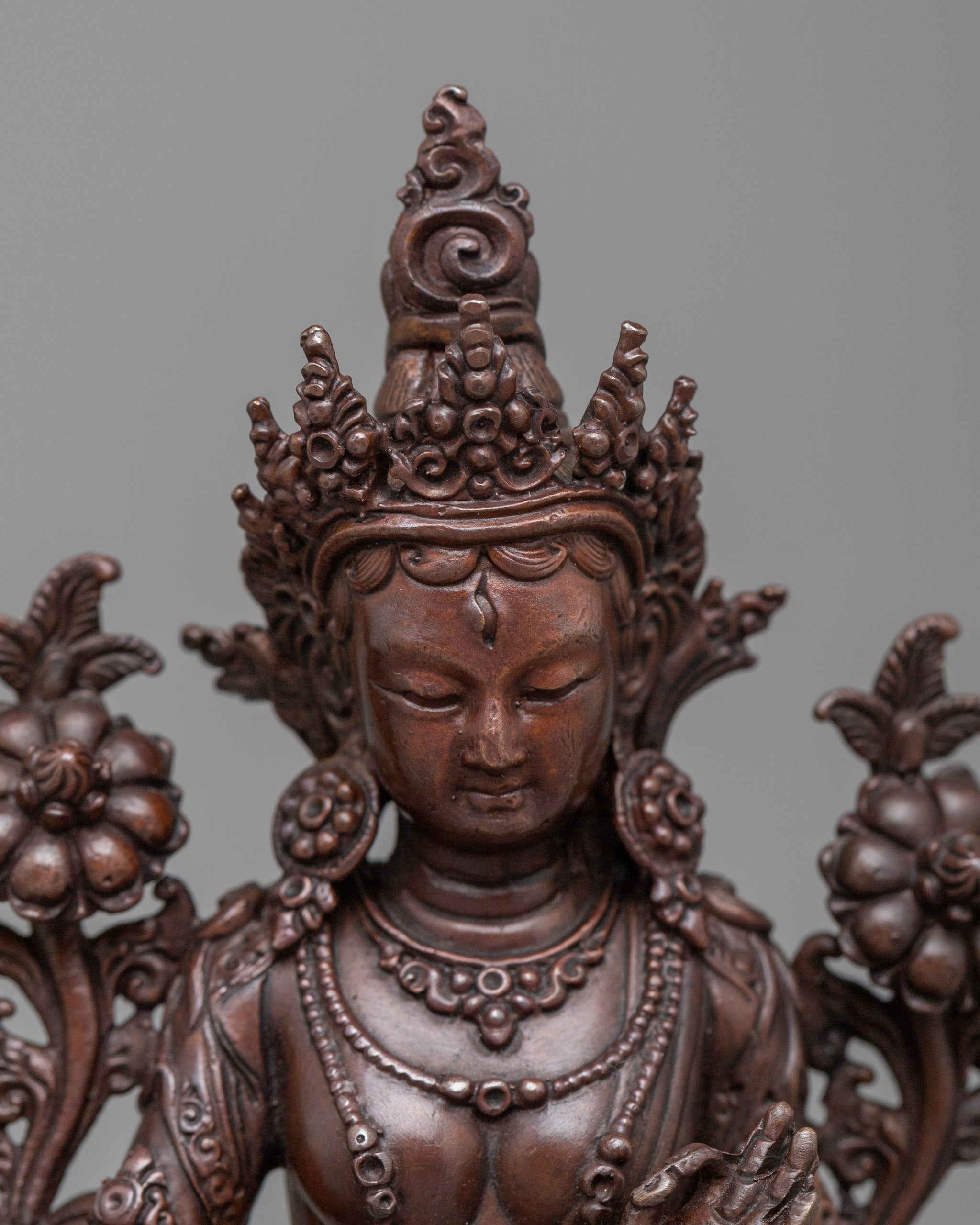 Machine-Made White Tara Statue | A Compact Oxidized Copper Symbol of Healing and Longevity