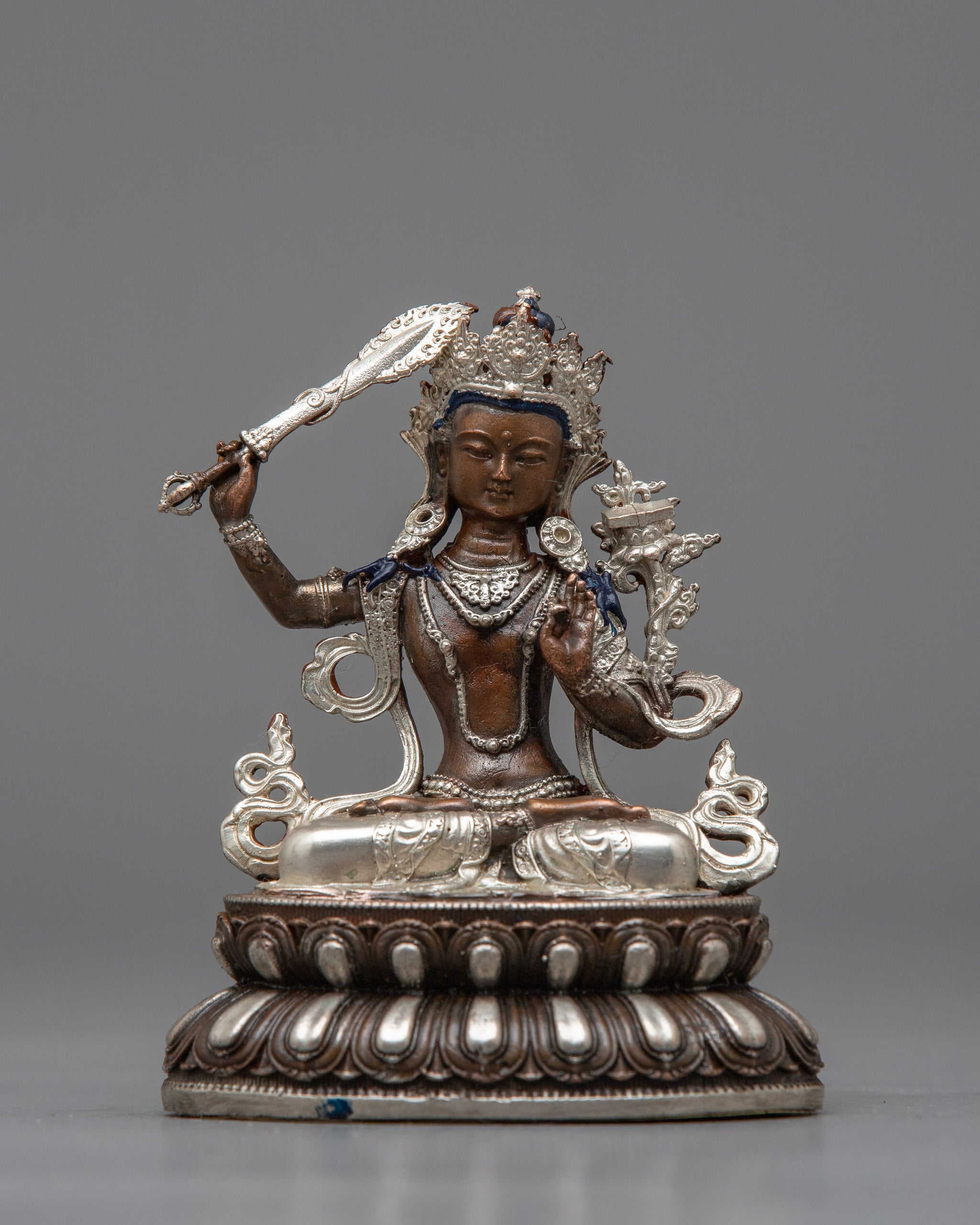 Machine-Made Manjushri Statue | Silver-Plated Wisdom Master