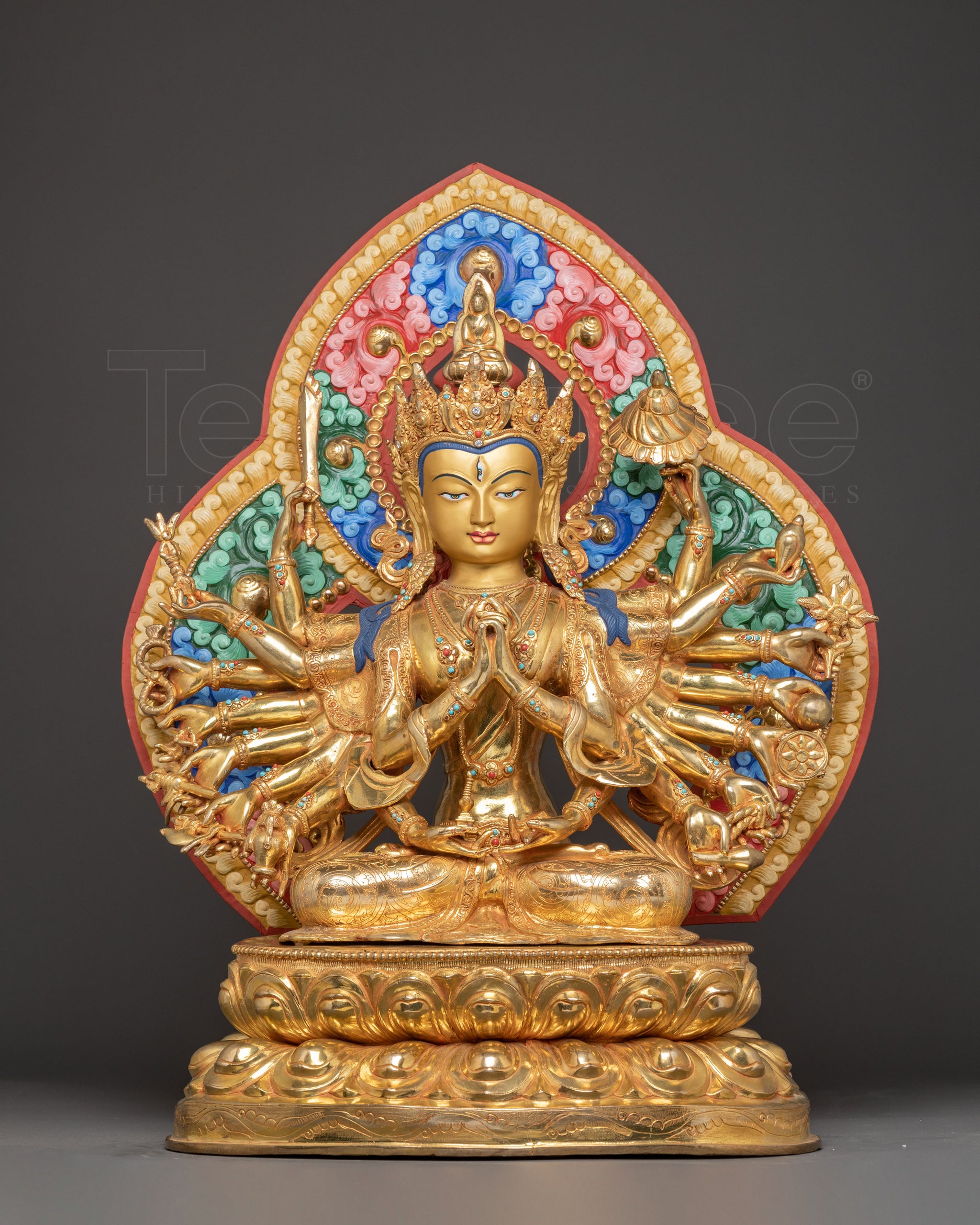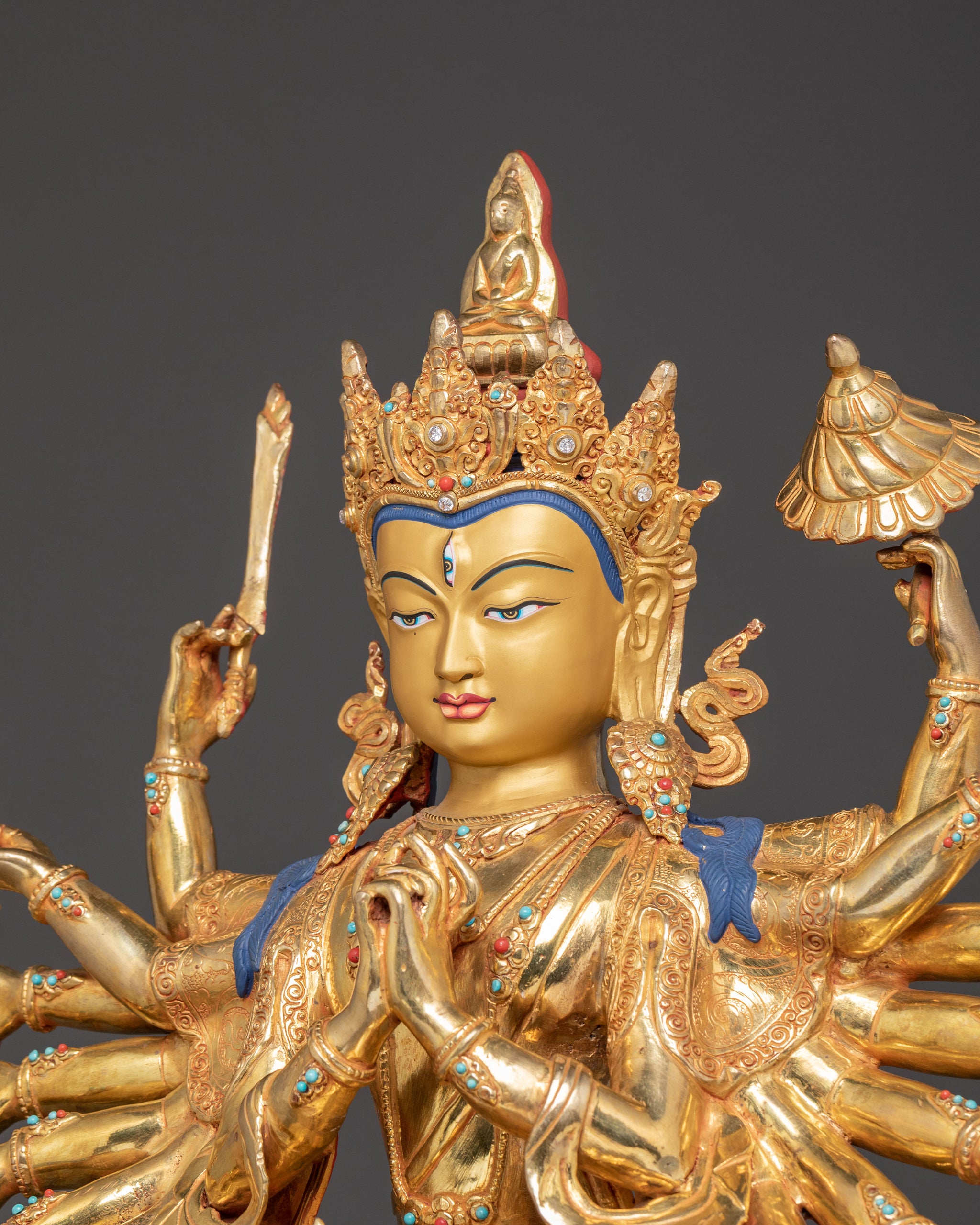 Chundi, revered in various Buddhist traditions, embodies the principle of purification, helping devotees to purify their minds and hearts of negative karma and obstacles. Her practice is associated with overcoming inner and outer impurities, fostering clarity, and cultivating a state of spiritual purity. This statue serves as a powerful reminder of the path to purification and the potential for spiritual growth and renewal.