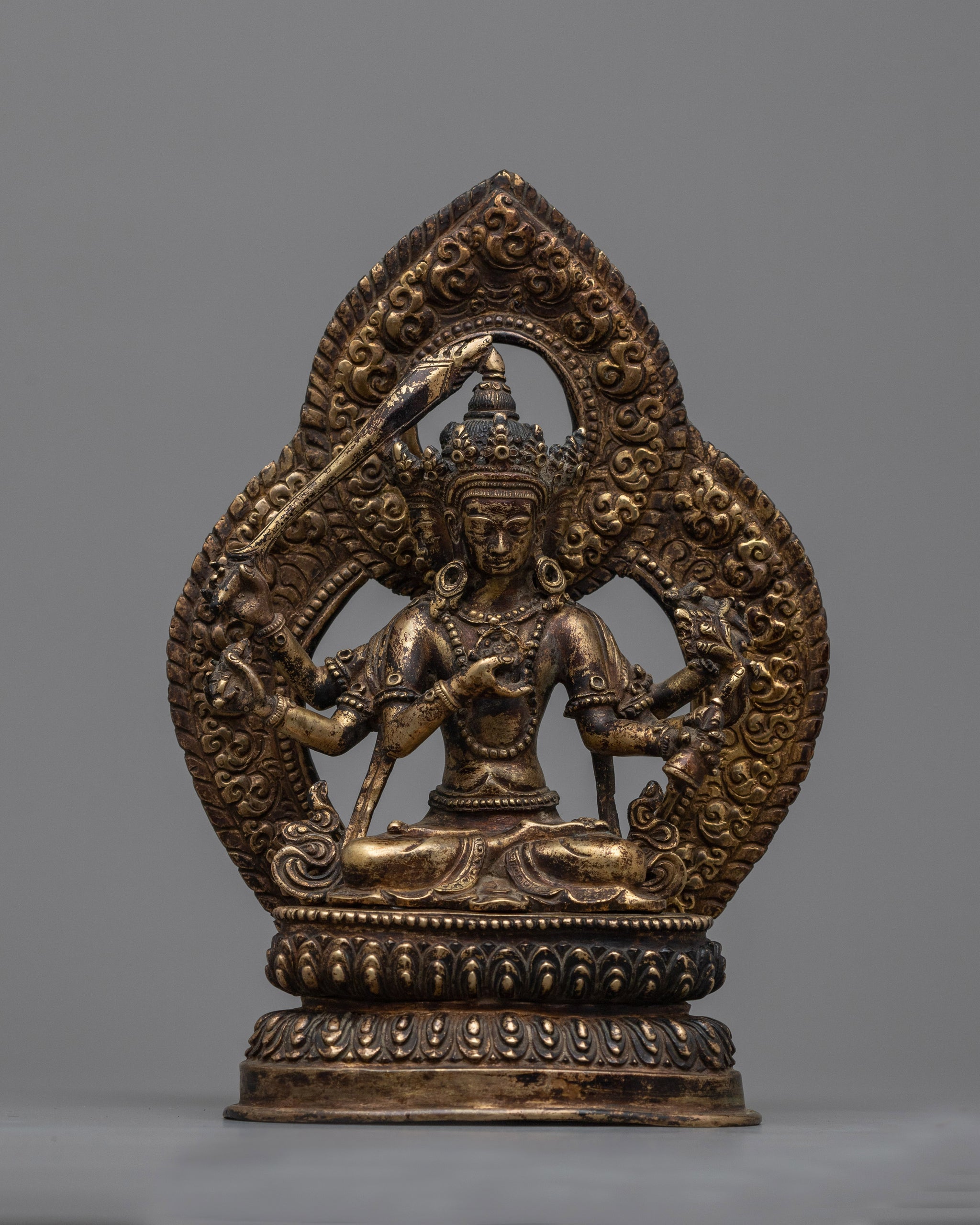 Maha Manjushri Statuette | Gold and Antique Finish Sculpture
