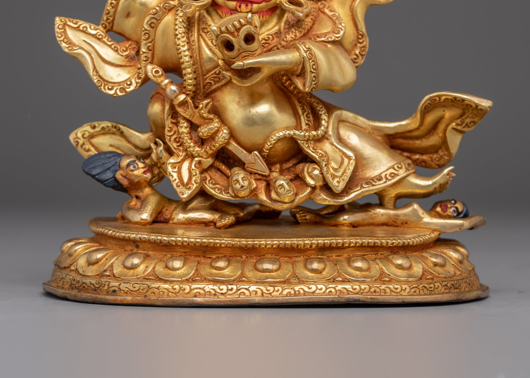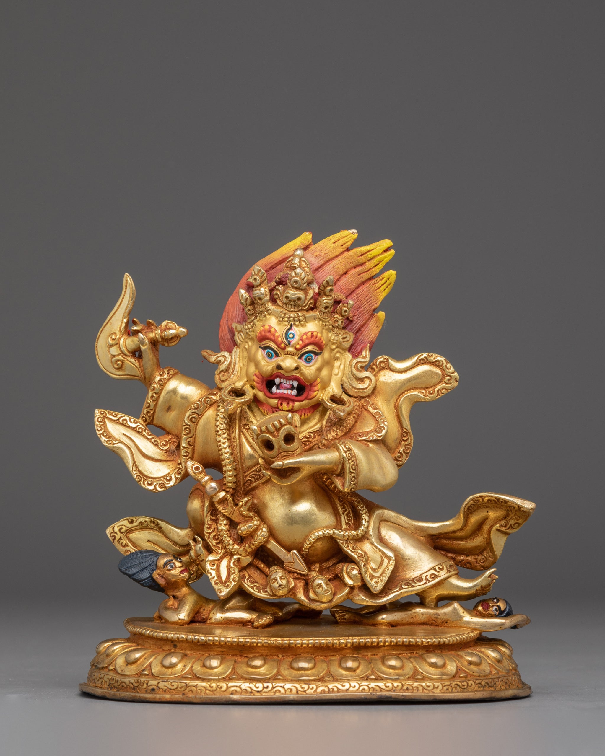 Statue of Mahakala Bernagchen, Wrathful Deity for Compassion | Golden Fury, Spiritual Strength