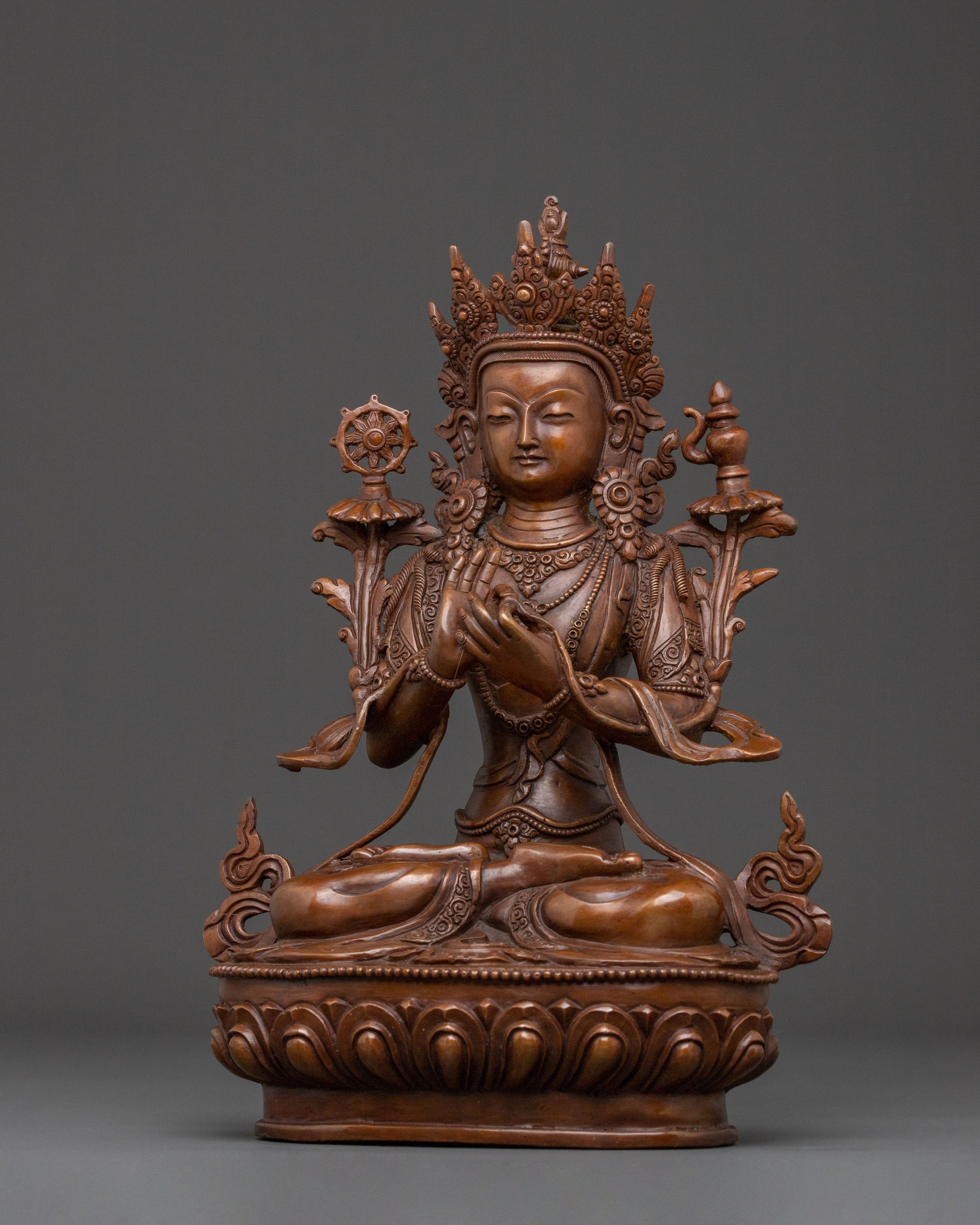 Depicted in a posture of readiness, Maitreya Buddha often gestures with the teaching mudra, symbolizing the imparting of wisdom and the turning of the Dharma wheel. This pose reflects his role as the future Buddha, patiently awaiting his time to return and guide all beings towards ultimate liberation and profound spiritual harmony.