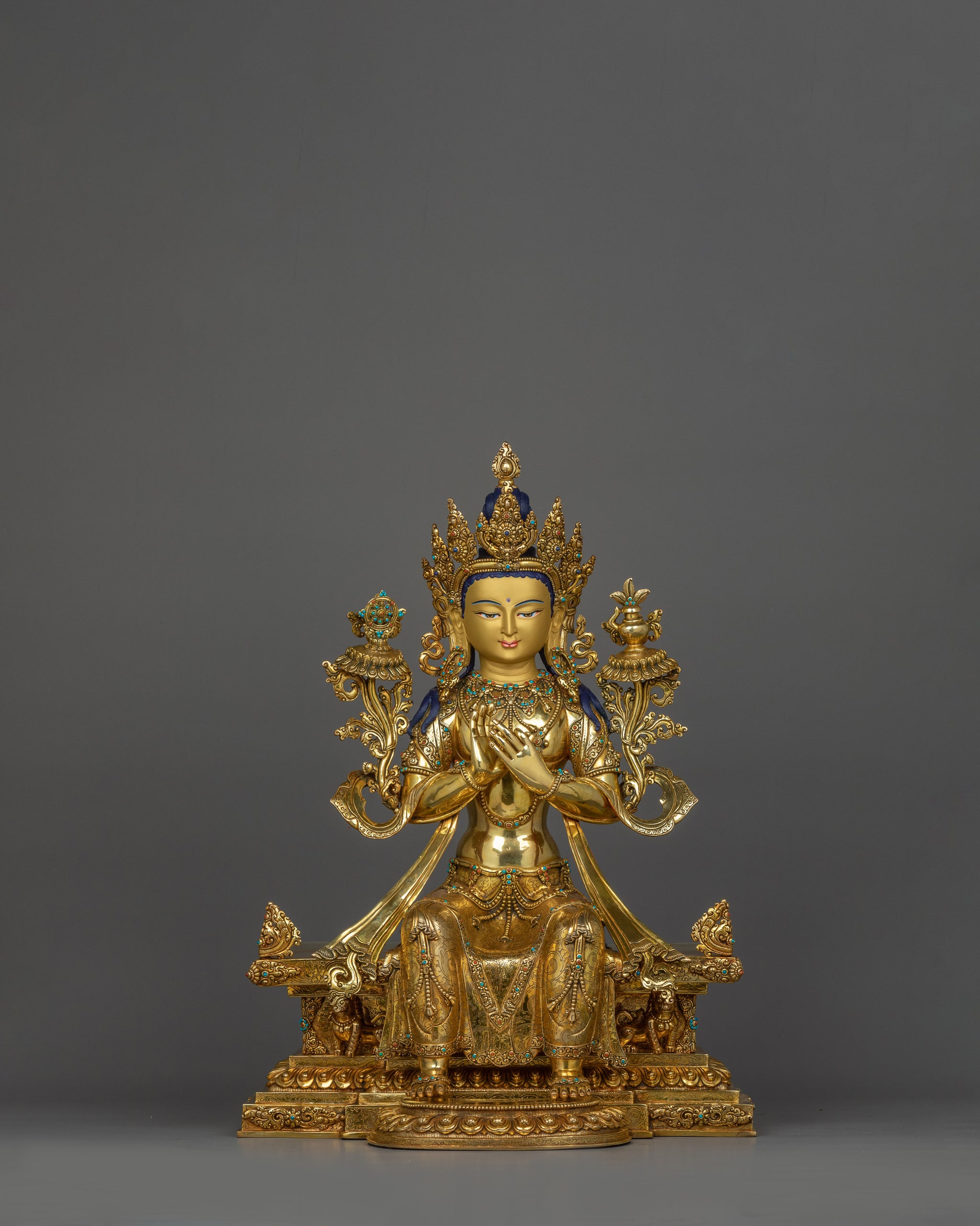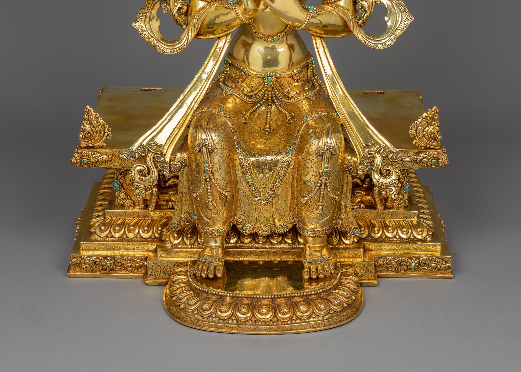 Tibetan Maitreya Buddha Sculpture with Magnificent Throne | Symbol of Wisdom & Hope