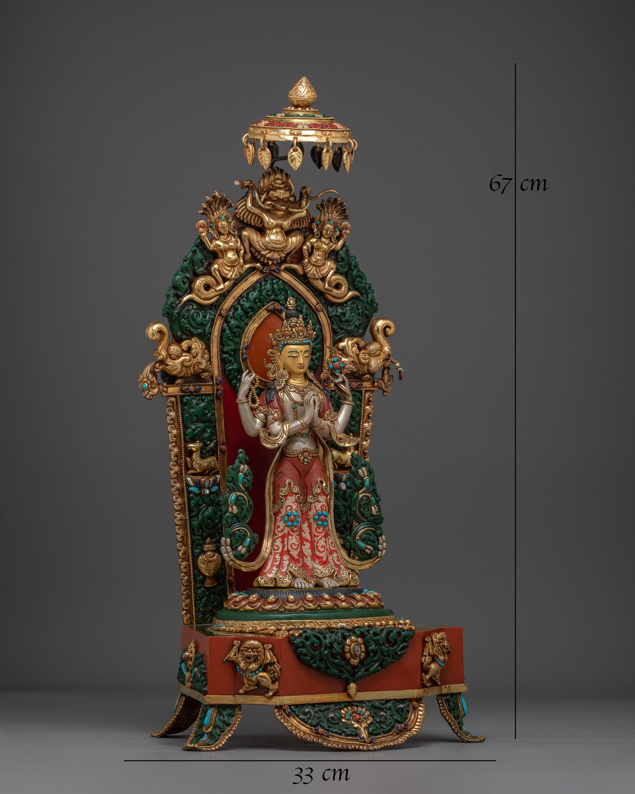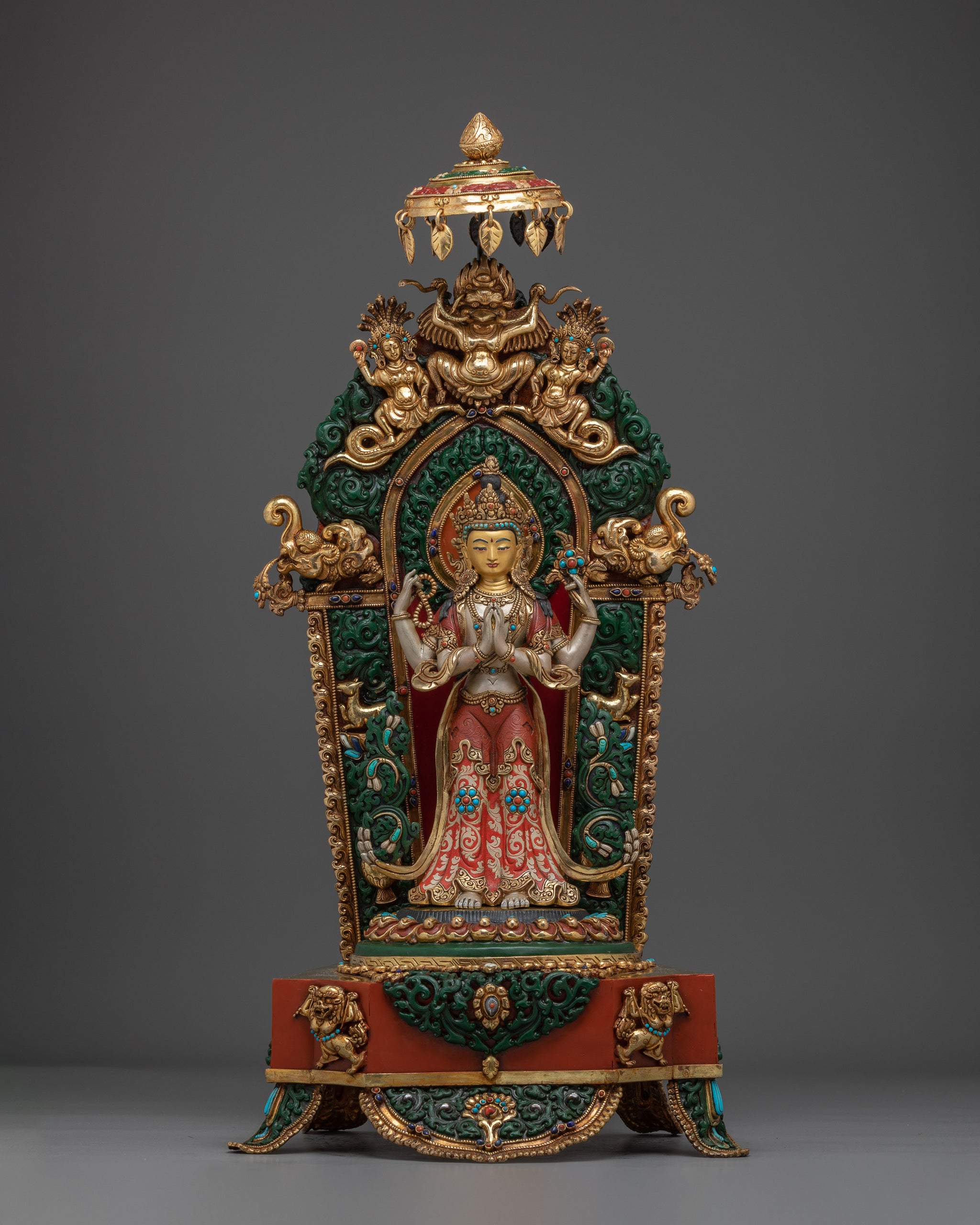 Majestic Chenrezig on throne Statue | Avalokiteshvara - Bodhisattva of Compassion