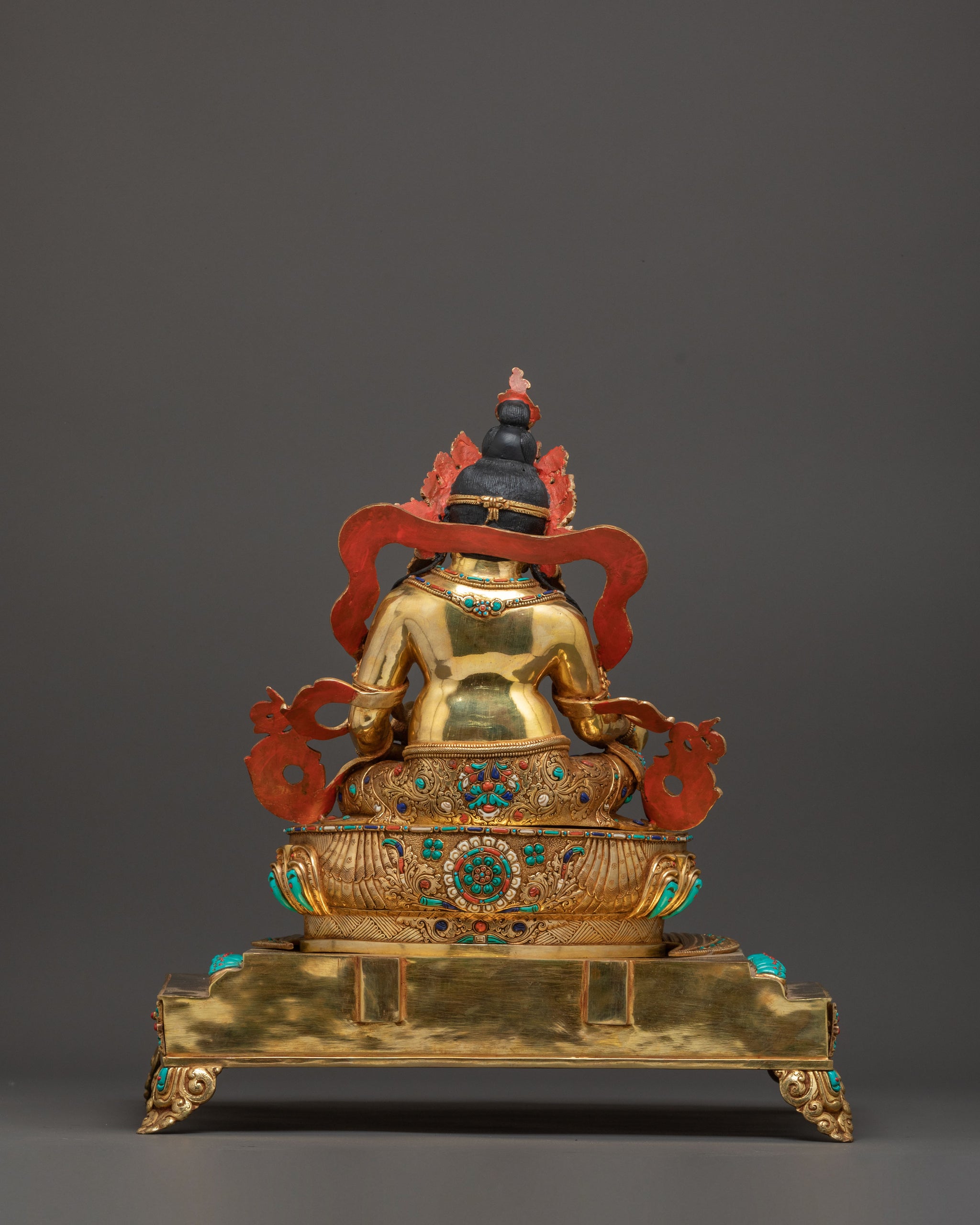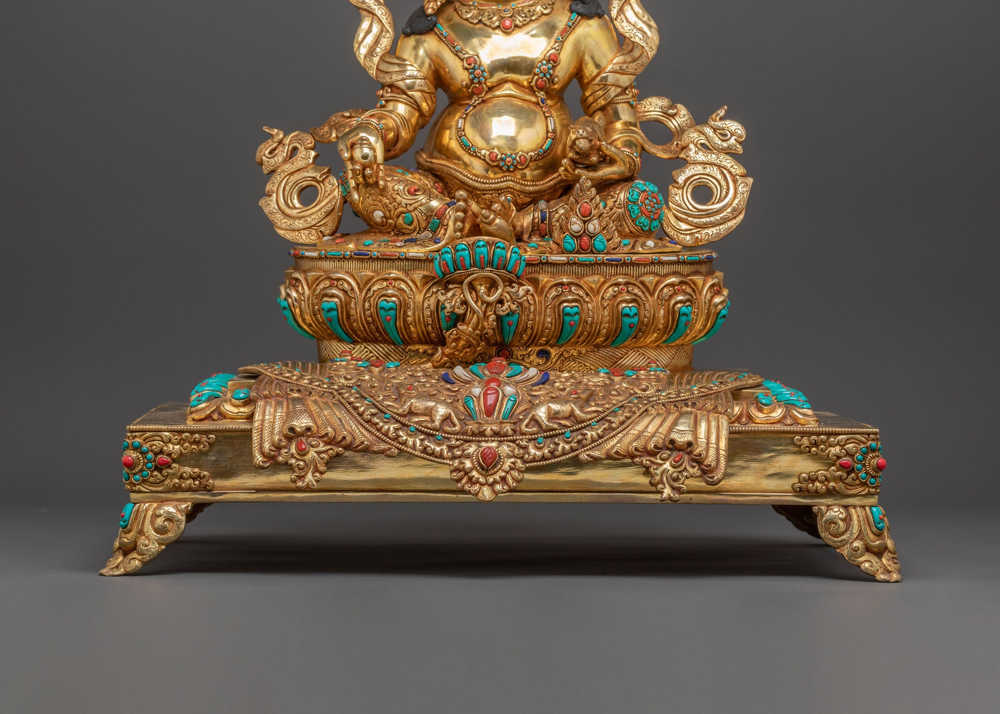 Majestic Dzambhala on Throne Handmade Statue – 24K Gold Gilded