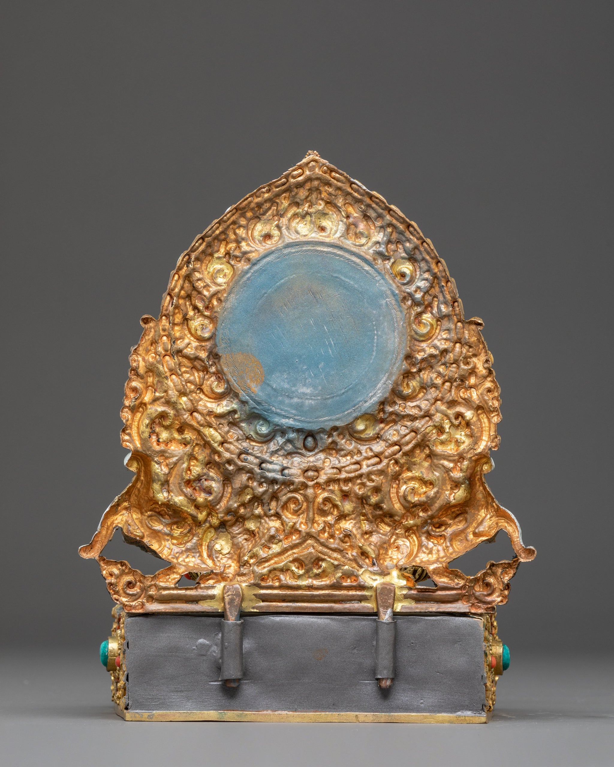 Vajrayogini is stunning. The details are amazing. It's easy to make out her facial expressions, skulls, feet, and the ring of fire around her. You can tell she's handmade. There is a consecration hole in her back.