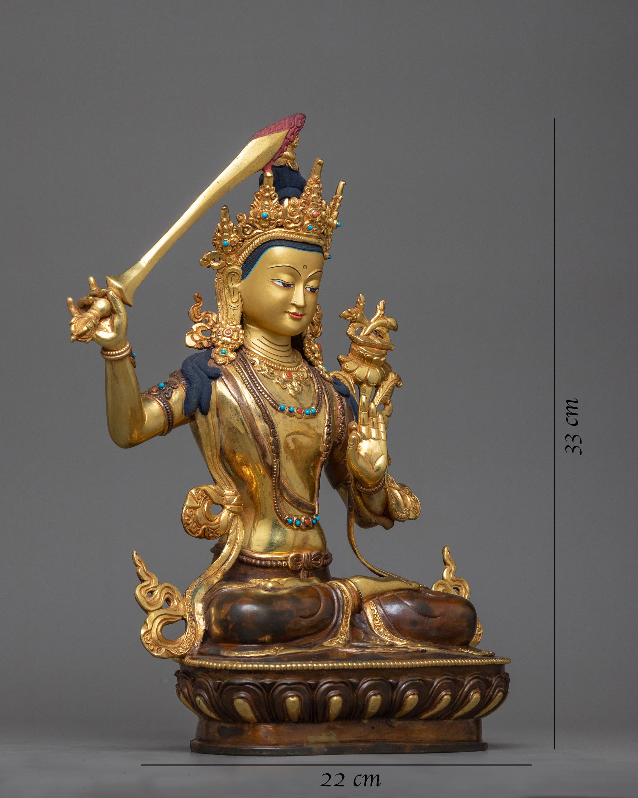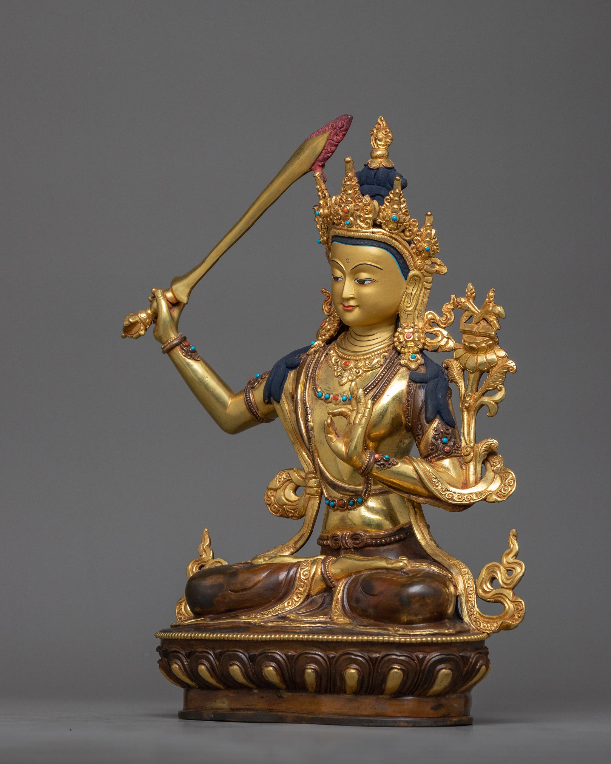 Manju Shri Statue in 24K Gold | A Representation of Wisdom and Insight