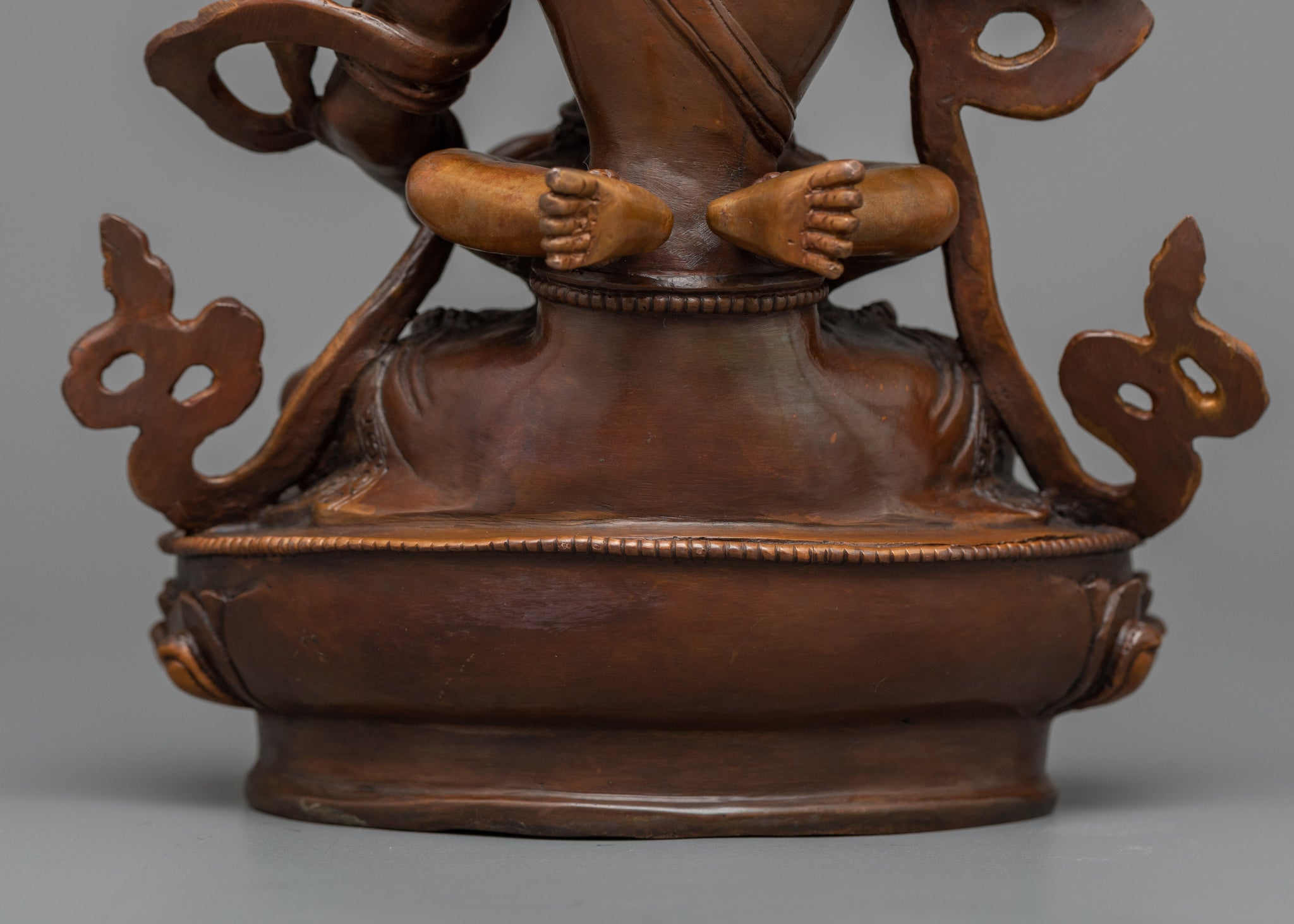 Vajrayogini is stunning. The details are amazing. It's easy to make out her facial expressions, skulls, feet, and the ring of fire around her. You can tell she's handmade. There is a consecration hole in her back.