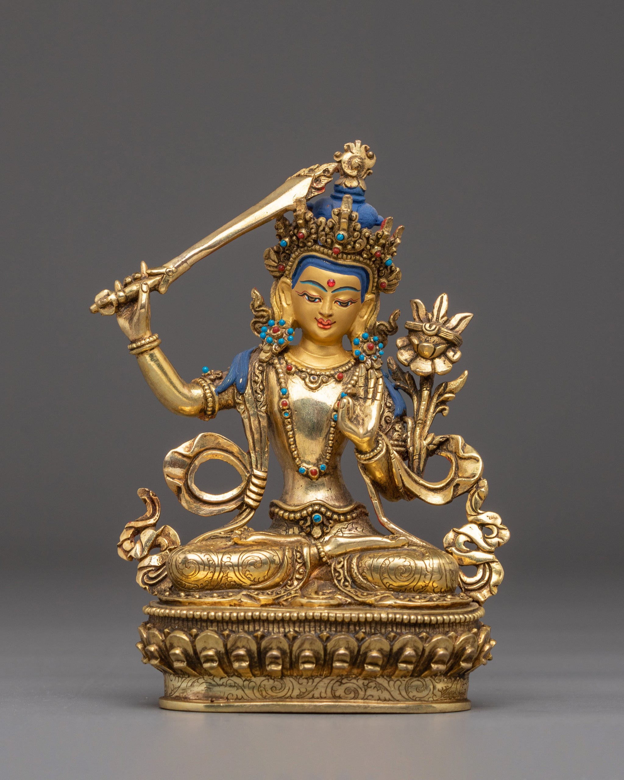 Manjushri Statue, Guardian of Knowledge: Handcrafted Nepali Art