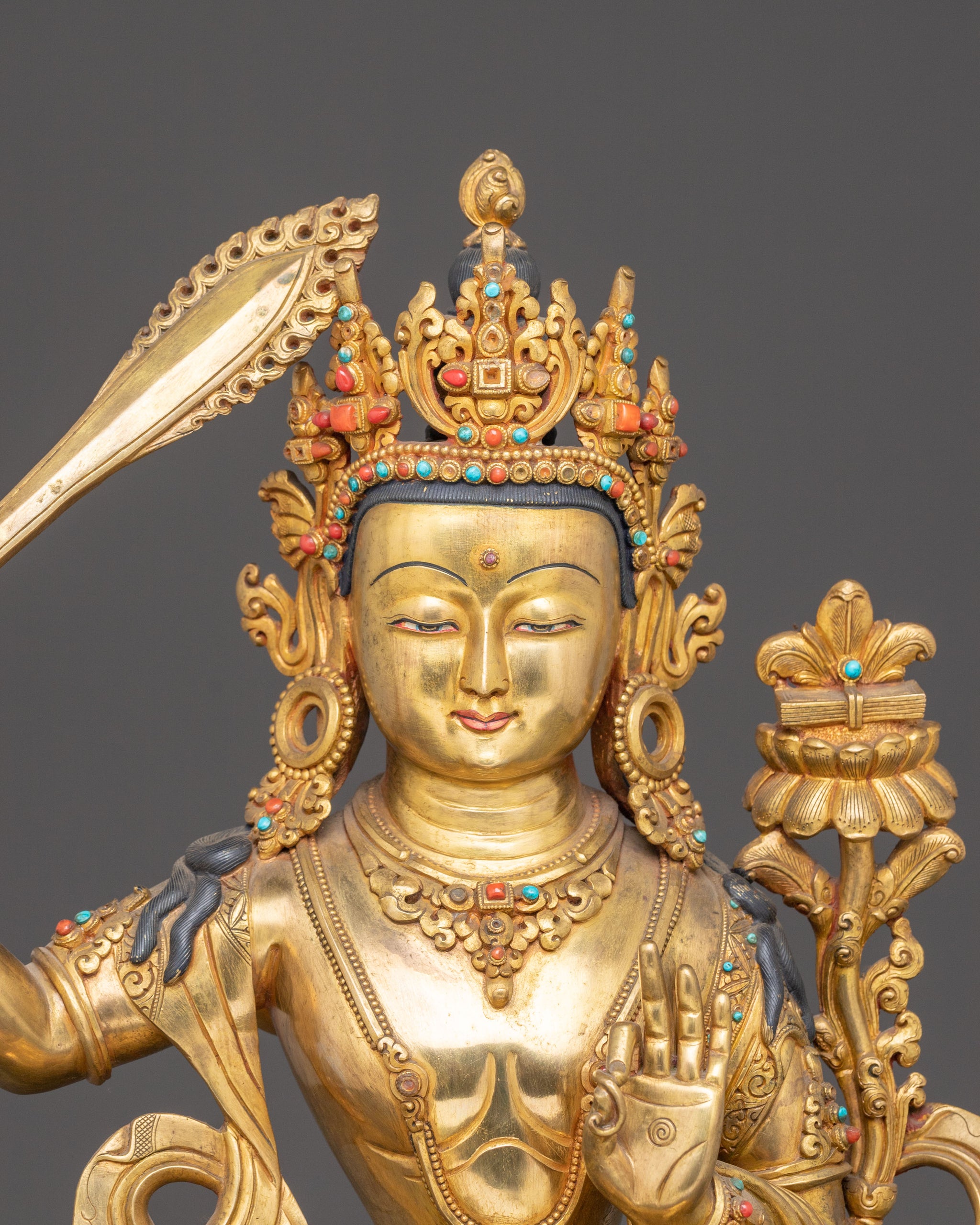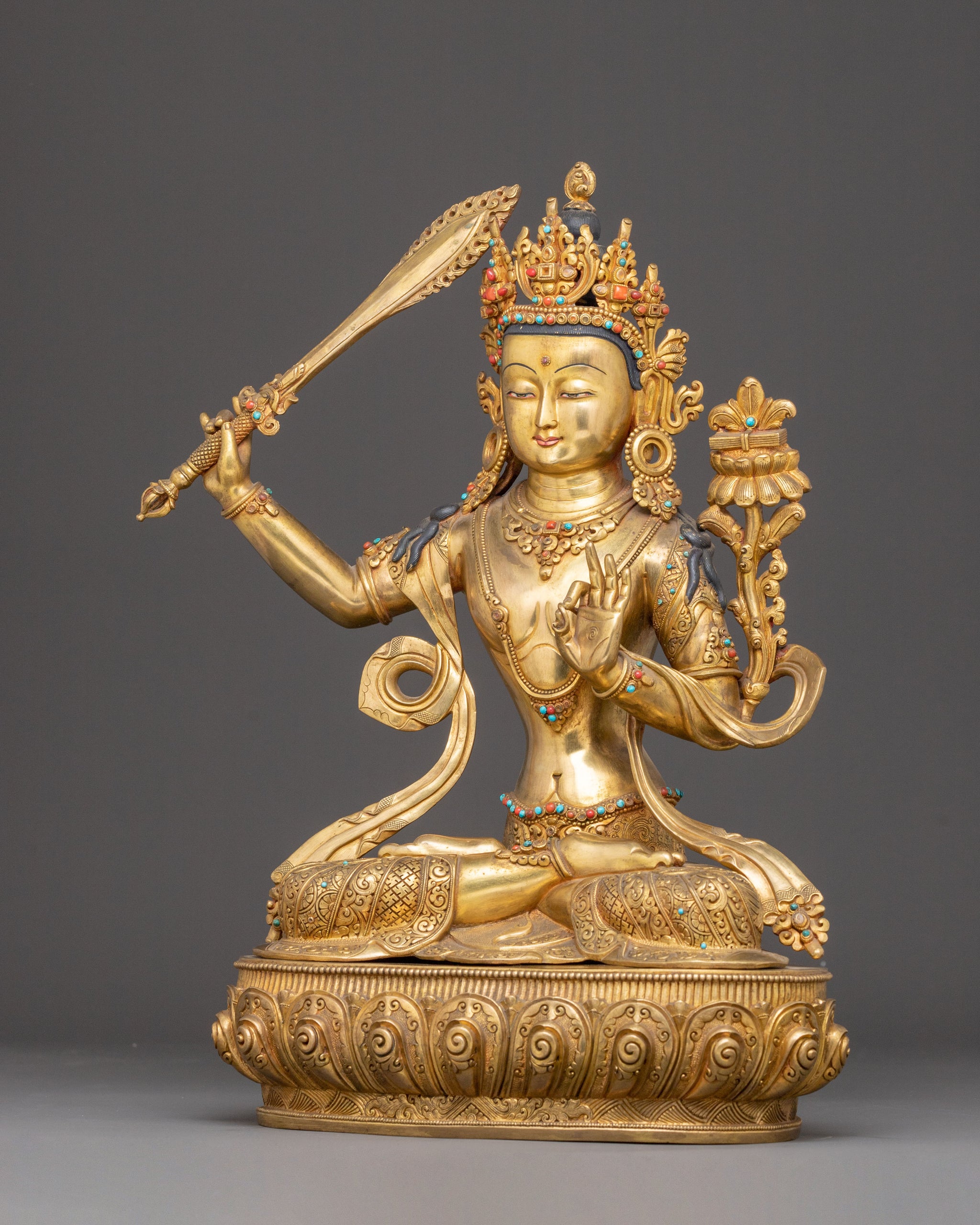 Handcrafted Manjushri Bodhisattva Statue | Flame Sword Deity