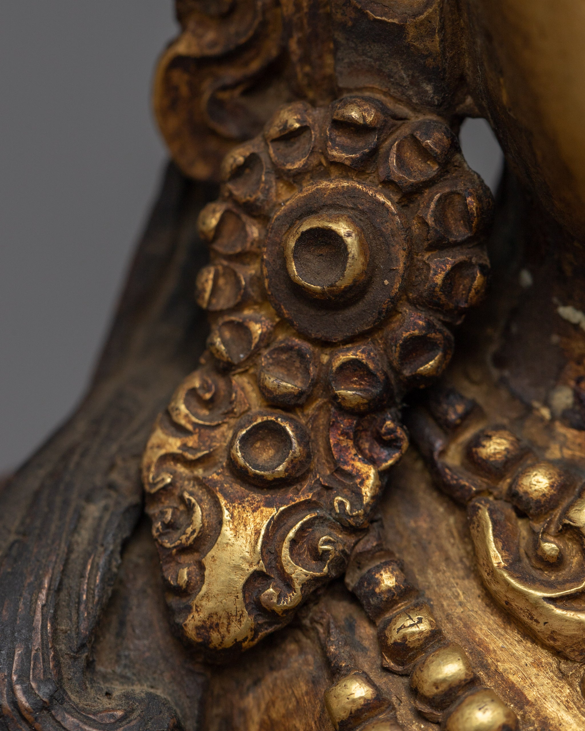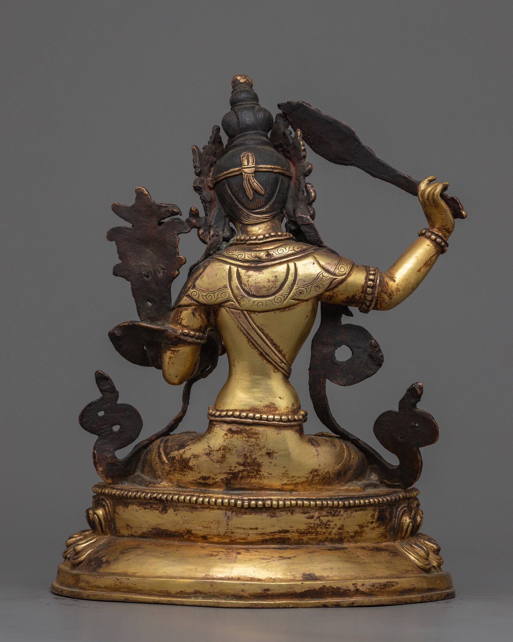 Vajrayogini is stunning. The details are amazing. It's easy to make out her facial expressions, skulls, feet, and the ring of fire around her. You can tell she's handmade. There is a consecration hole in her back.