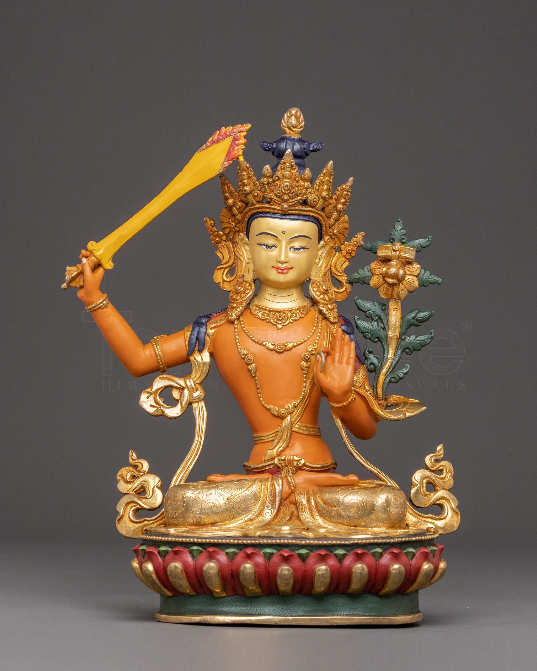 Handmade Manjushri Golden Statue of Power and Wisdom | Himalayan Buddhist Statue