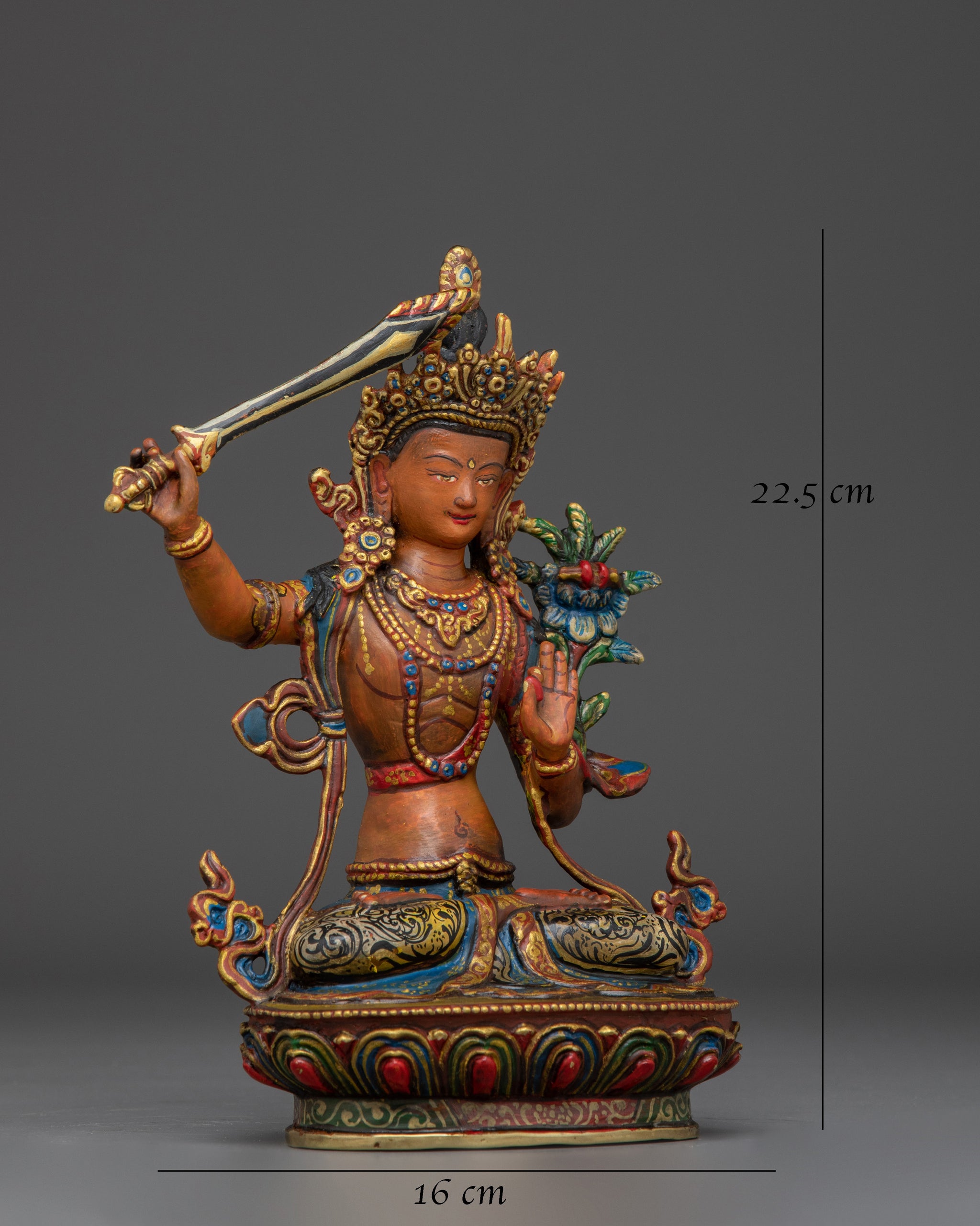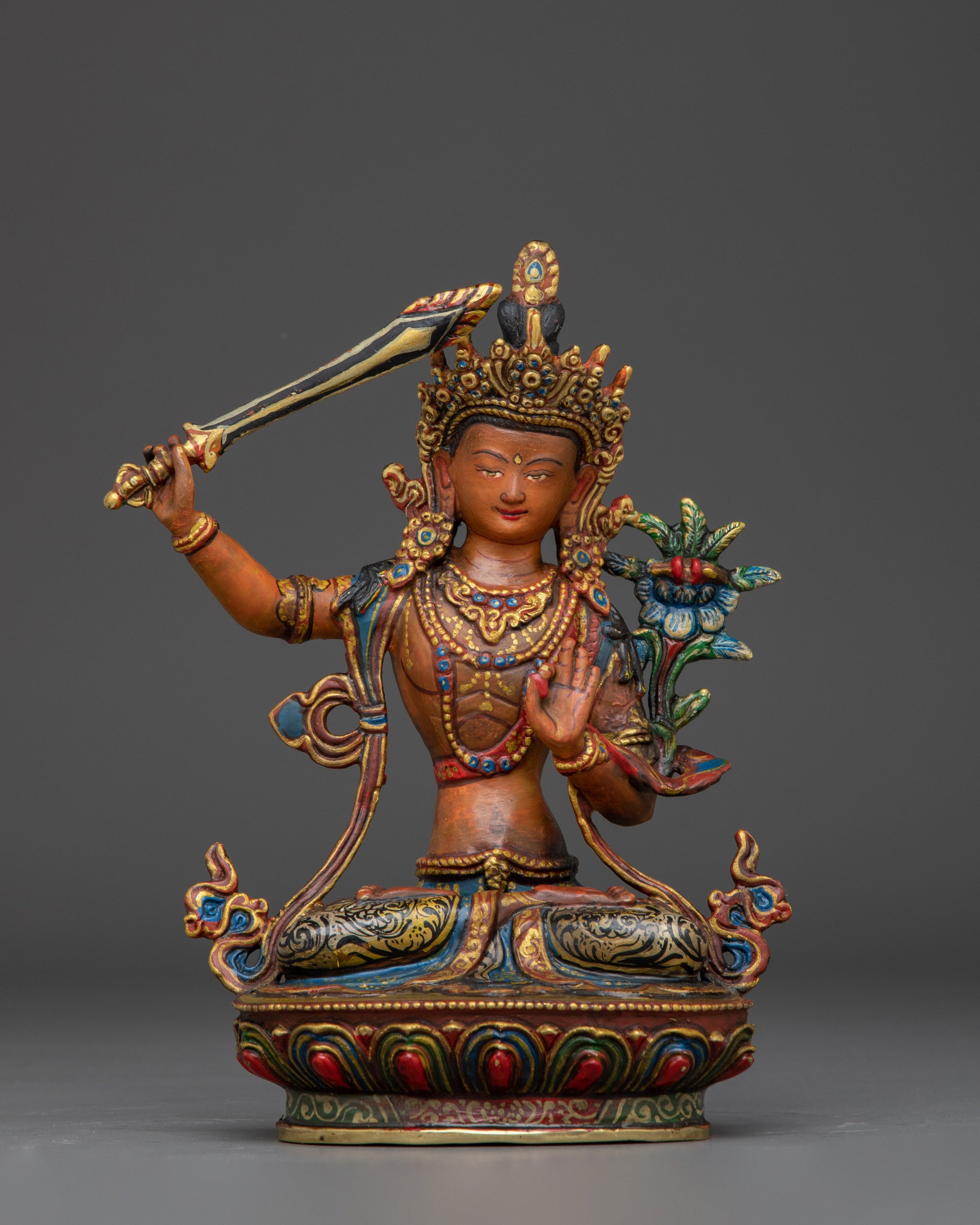 Manjushri Handcrafted Colourful Statue | Embodiment of Wisdom