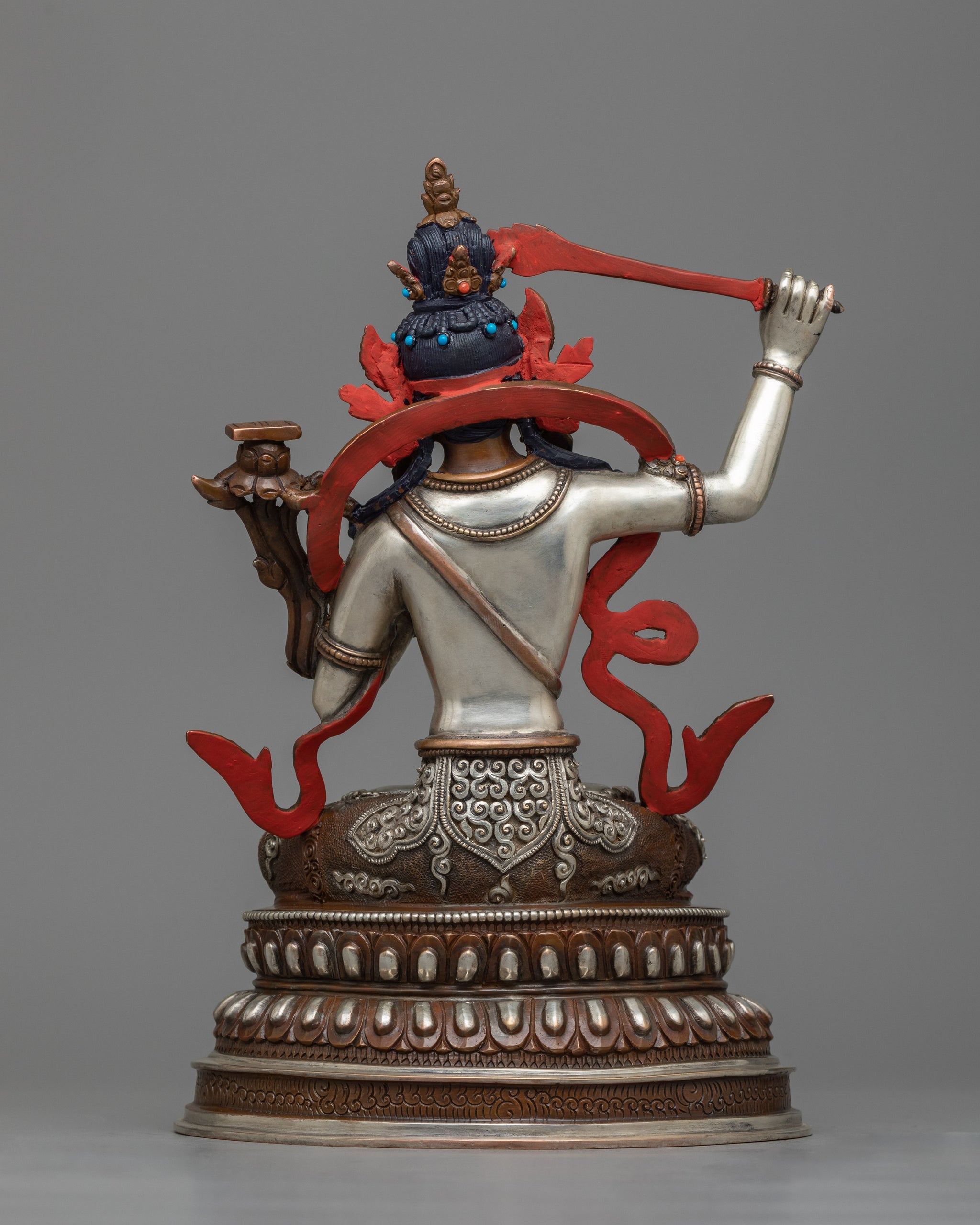 Handcrafted Manjushri Statue | Silver and Gold Splendor