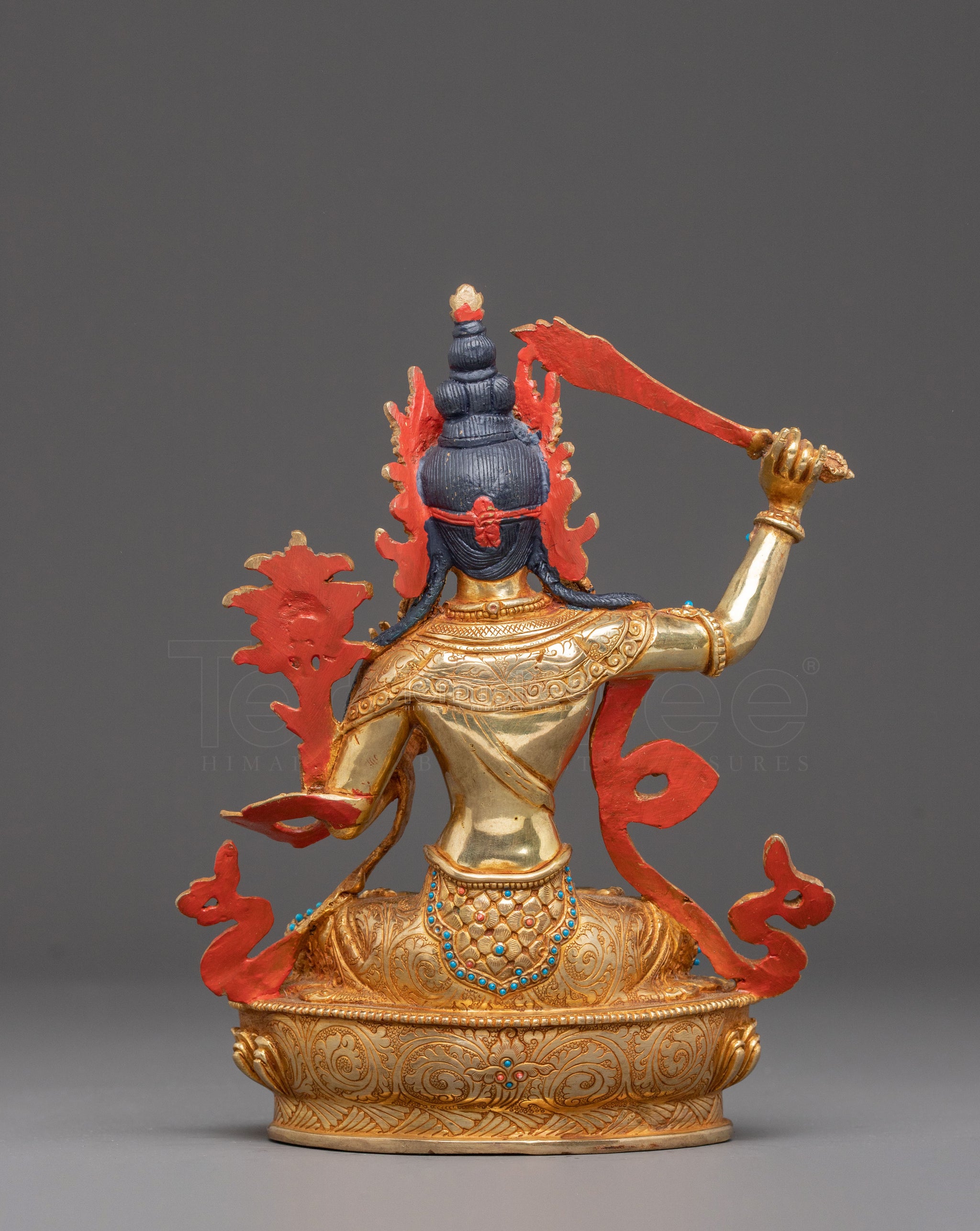 Manjushri Handmade Golden Statue | Traditional Himalayan Art